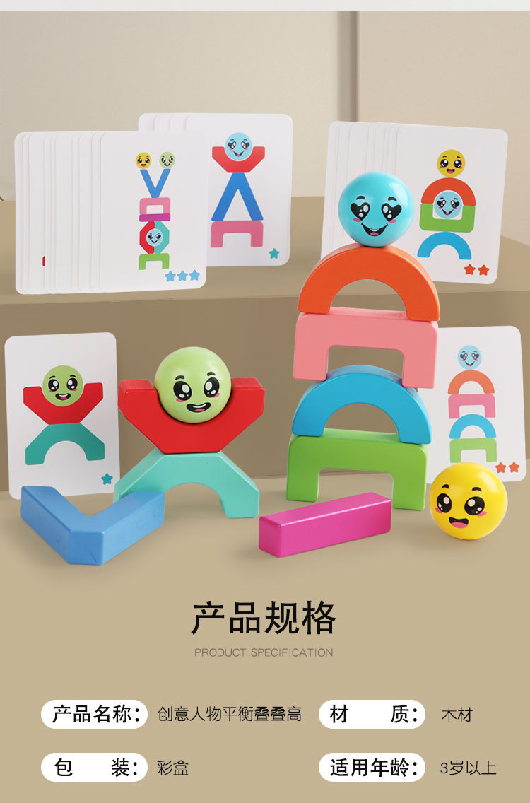 木制玩具创意人物平衡积木儿童专注力训练色彩启蒙认知玩具 English | 投诉