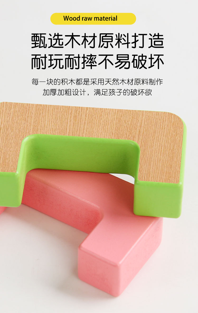 3C配置类别: 14岁以下的木制玩具 材质: 木制 品牌: Goodcow/顶牛 产地: 云和 是否多功能: 否 包装方式: 彩盒 漆面材质: 水性环保漆 木质分类: 密度板 木制积木类型: 积木 积木净重: 0.6KG 重量: 0.65 kg/个