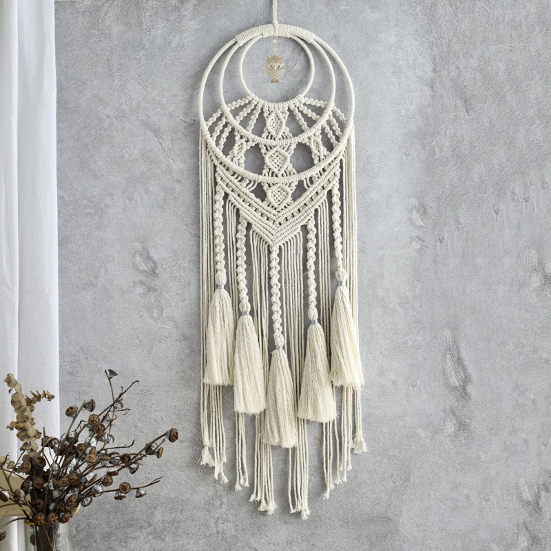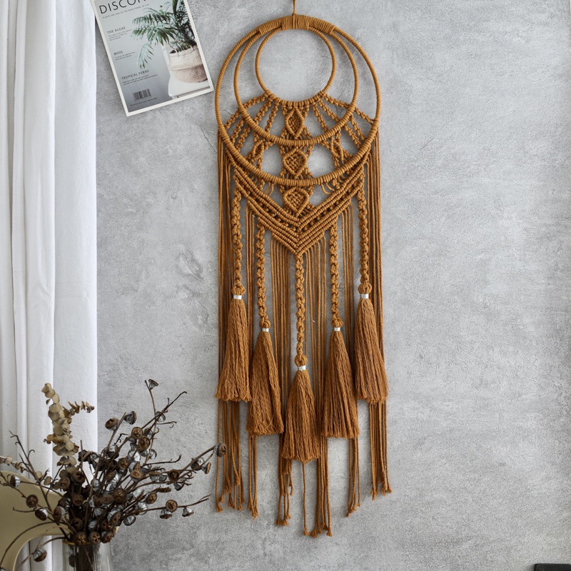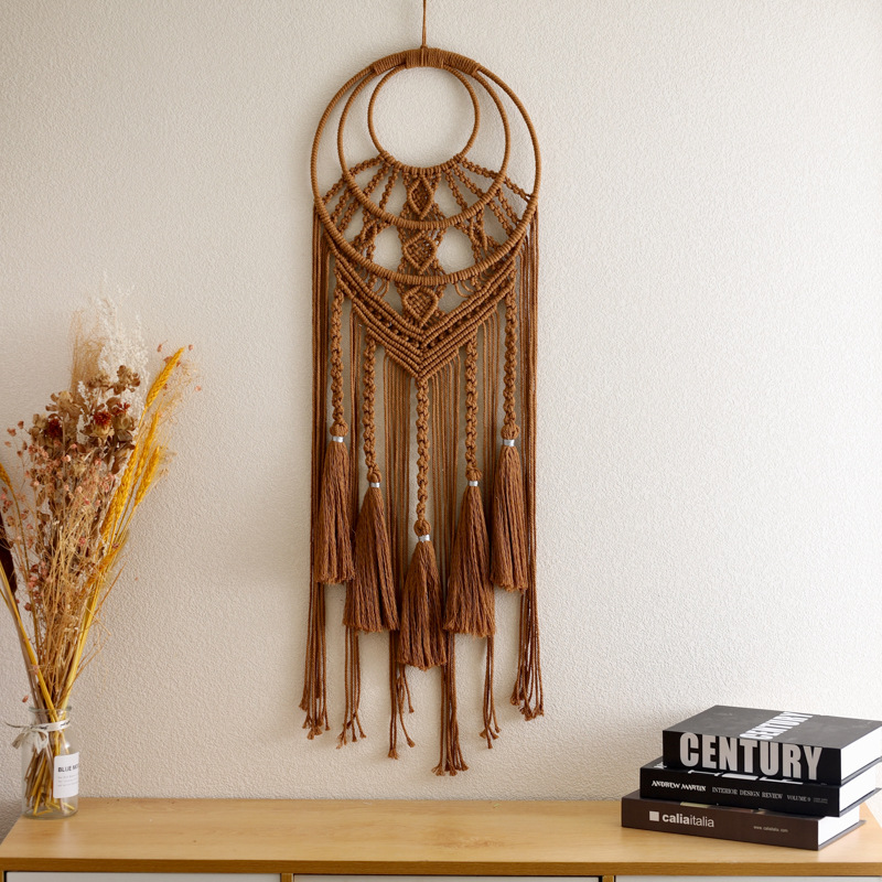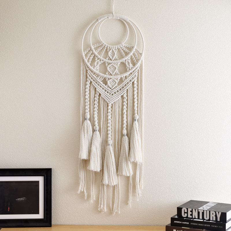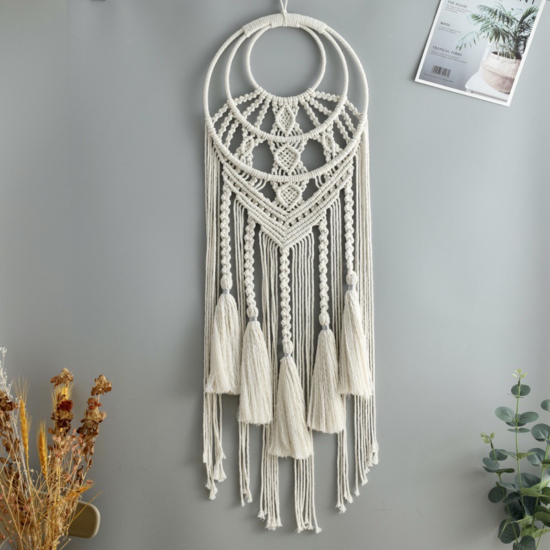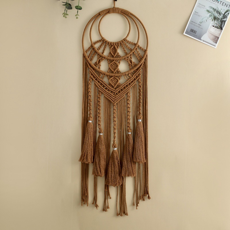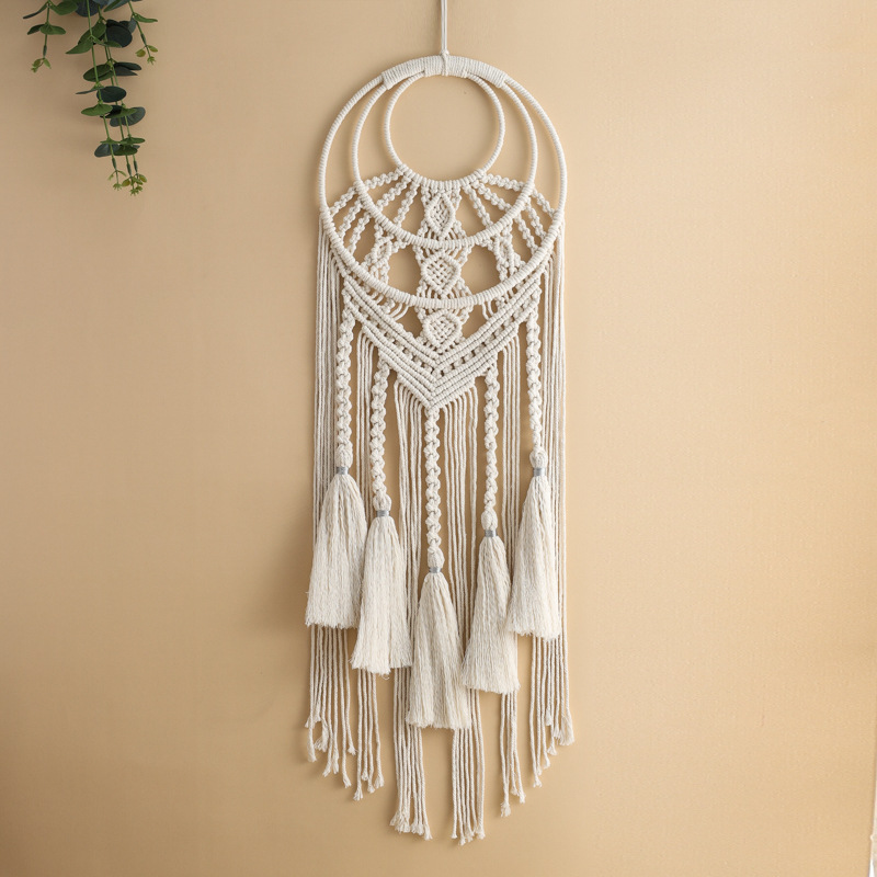 田园风纯色流苏编织捕梦网 多彩花朵编织壁挂捕梦网 墙壁装饰挂件