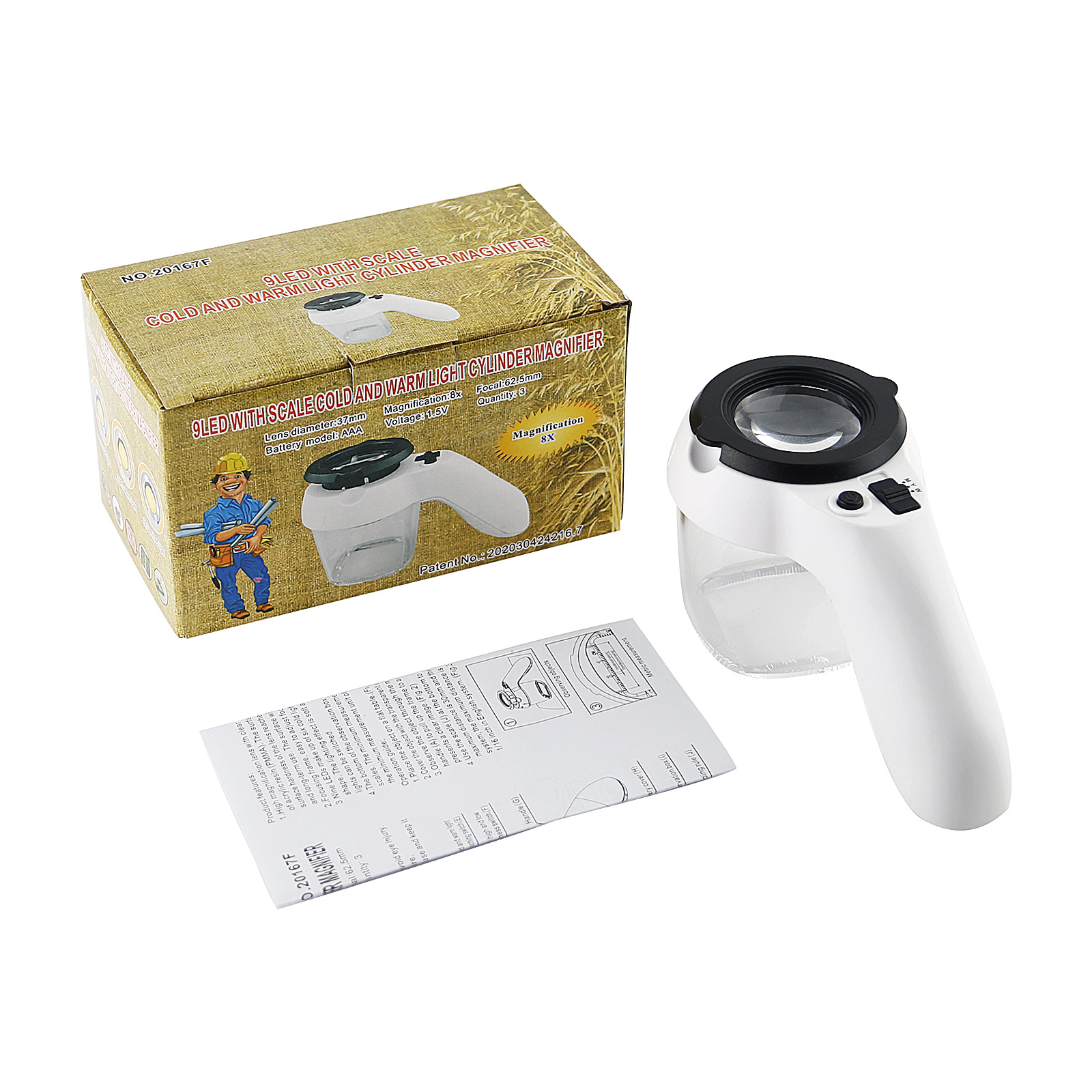 产品名称:9LED带刻度,冷暖光筒式放大镜