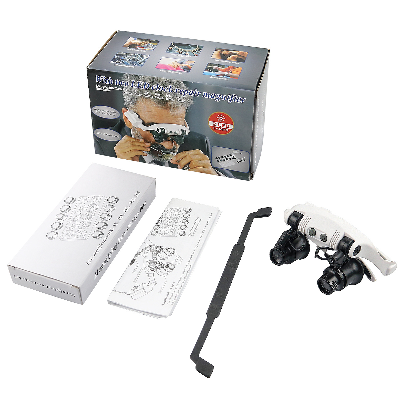 头戴眼镜式带LED灯珠宝仪器钟表维修多种倍率高倍放大镜厂家批发