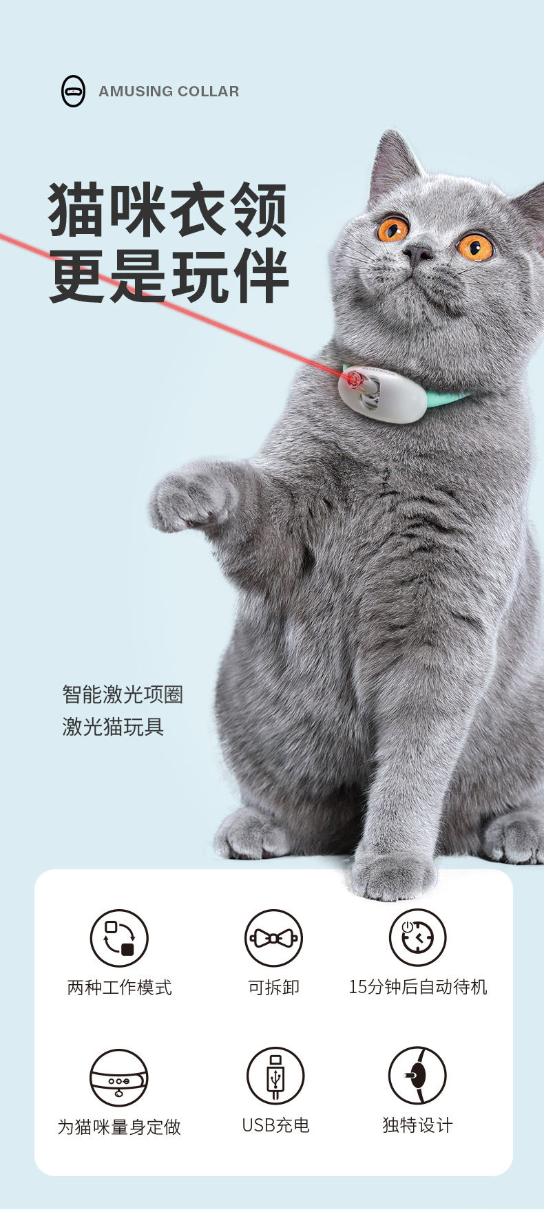 智能激光逗猫项圈可调节USB充电红外线逗猫棒猫咪互动自嗨猫玩具 投诉