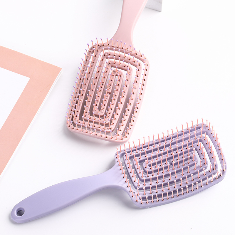 回形镂空梳干湿两用梳子方形按摩梳便携造型梳女宽齿梳排骨梳批发