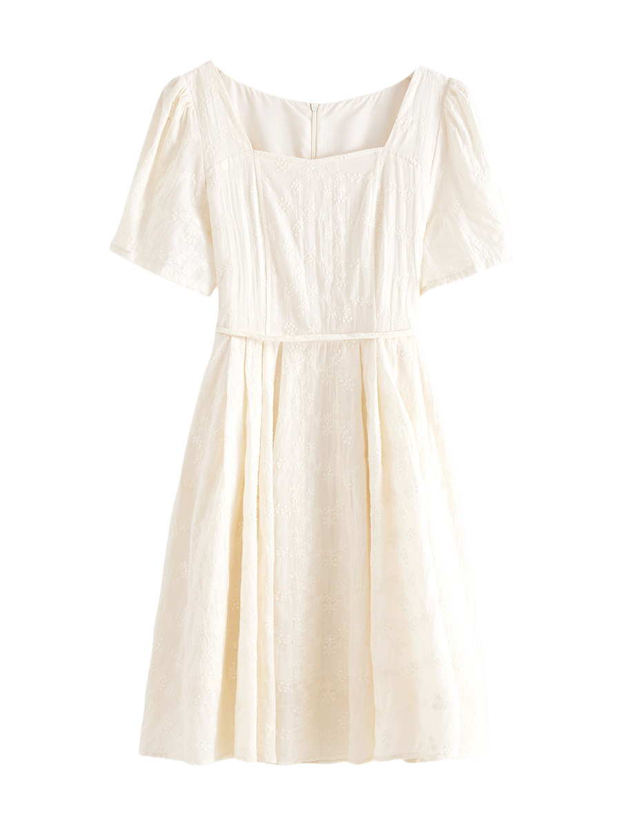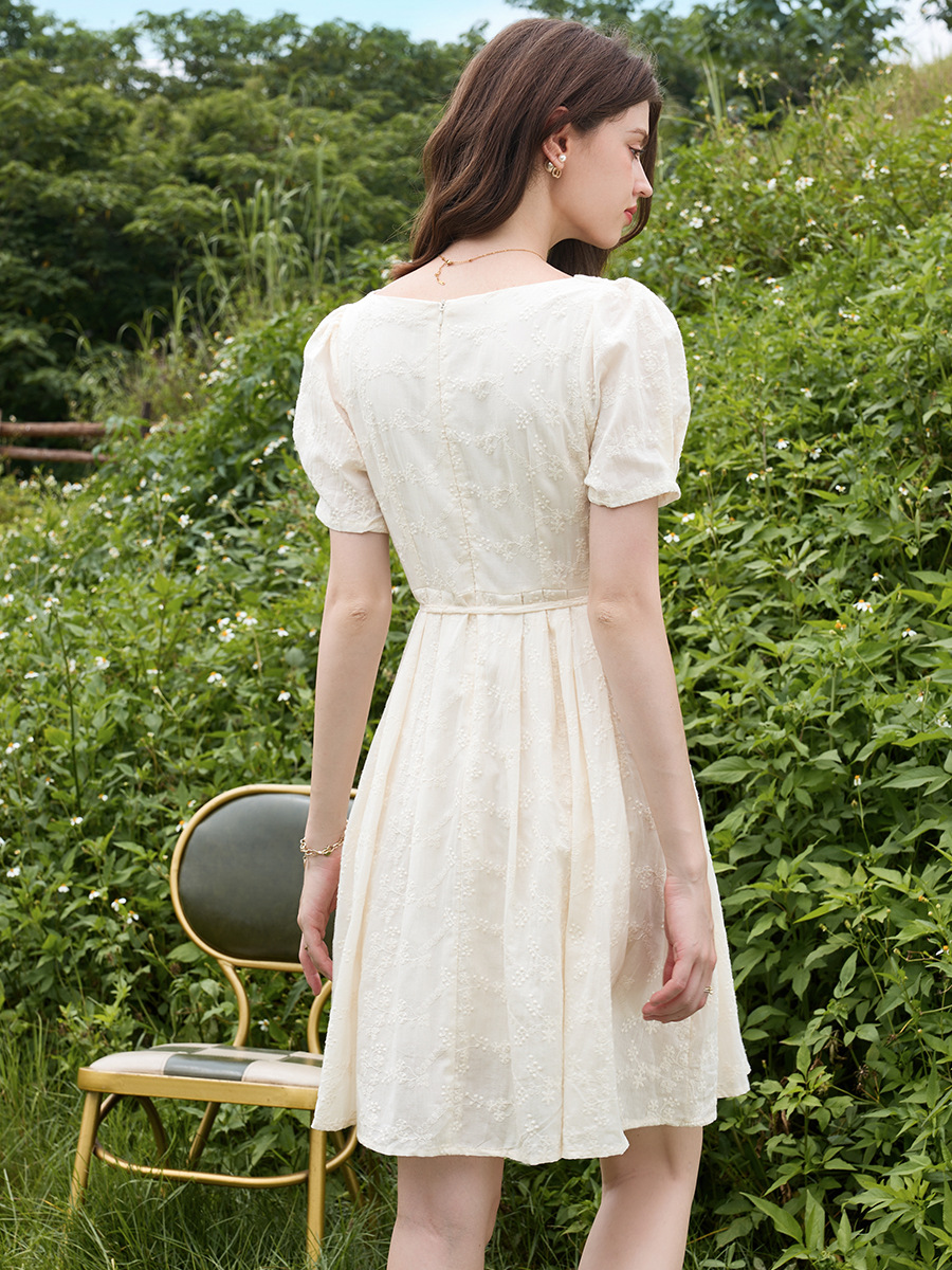 刊菲  法式系带绣花裙子2025夏季新款方领套头棉布连衣裙  63612