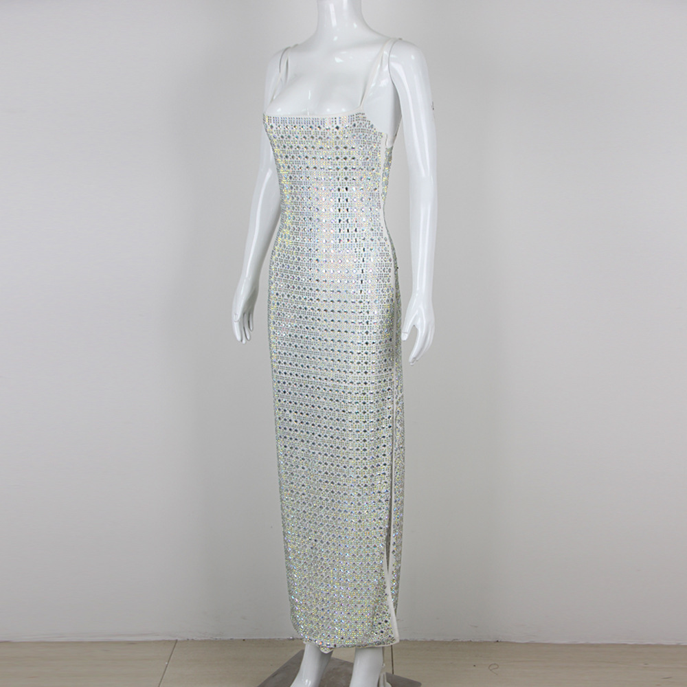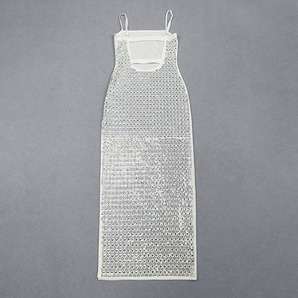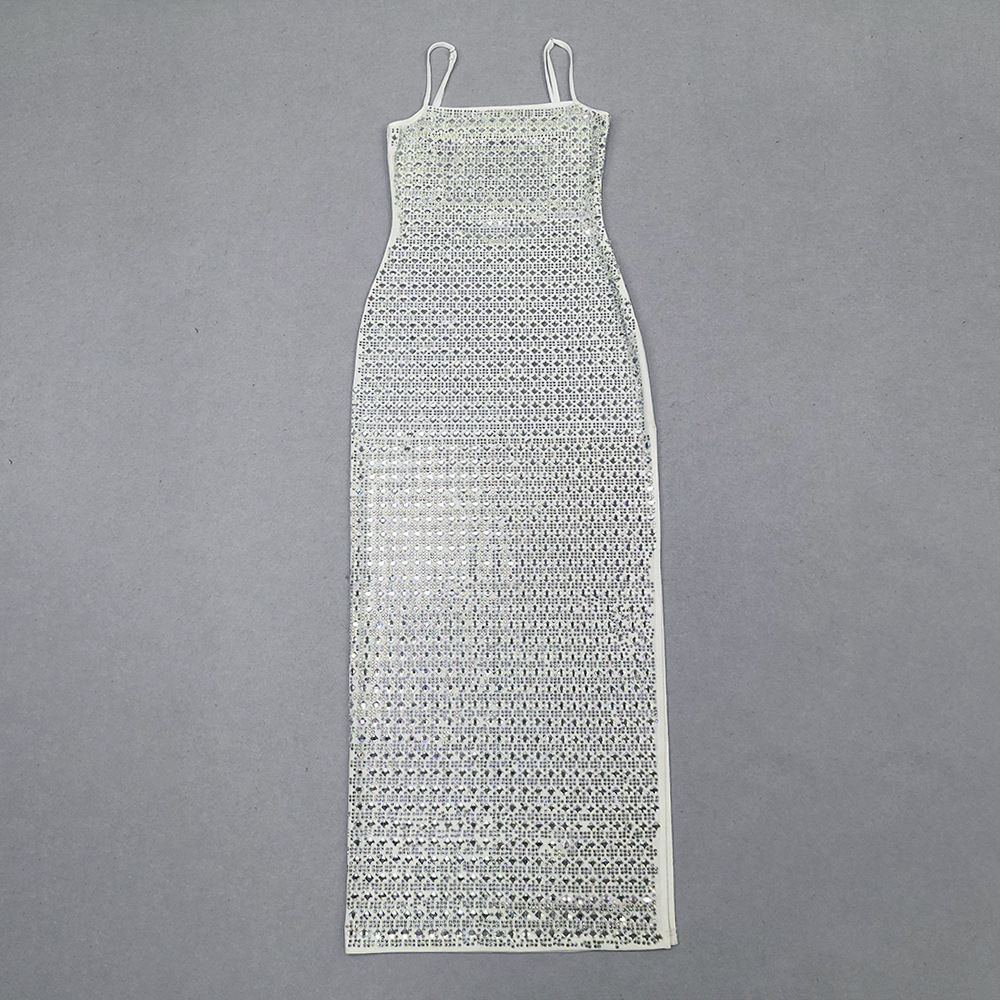 2025夏季欧美新款时尚性感气质烫钻吊带长款绷带裙高端绷带长裙款