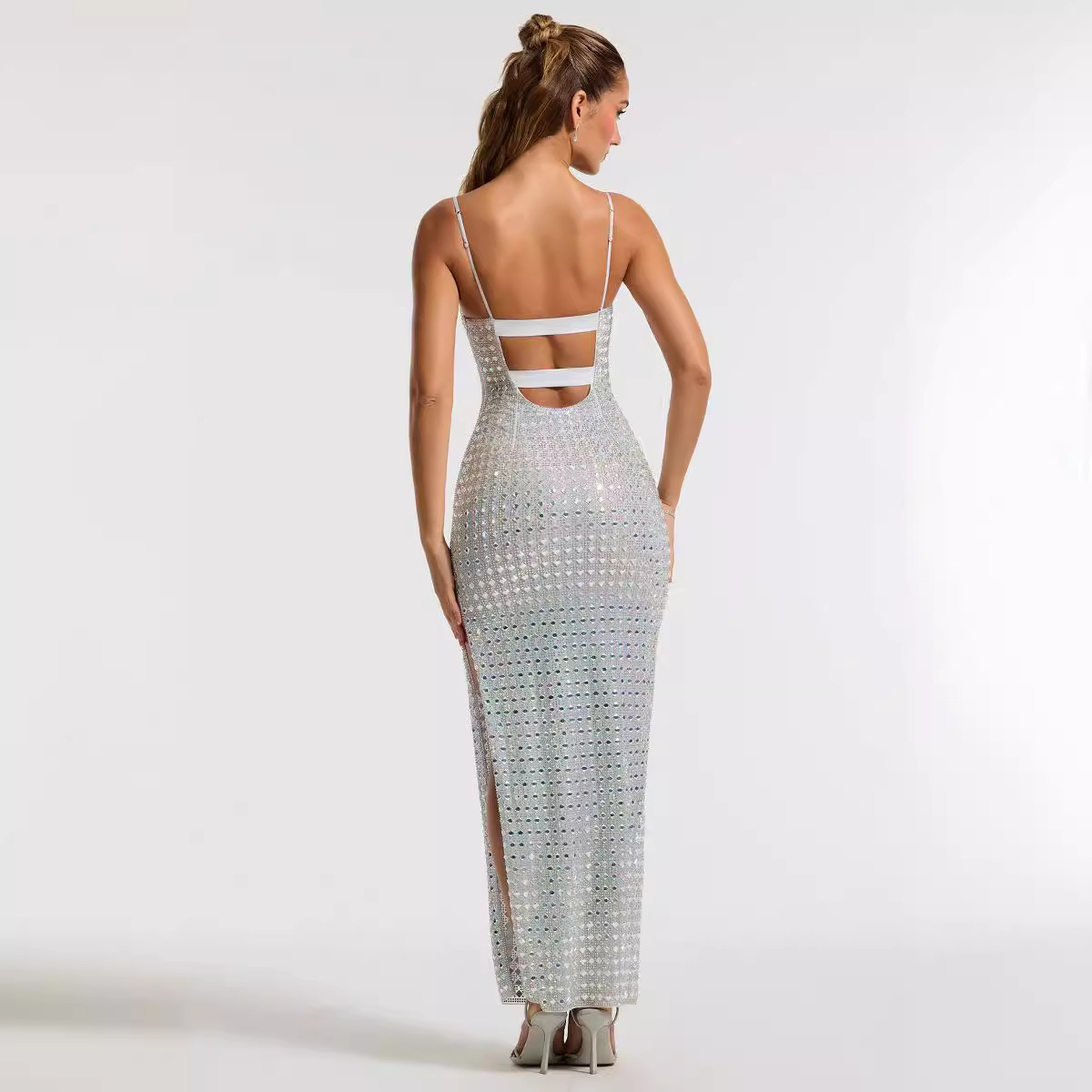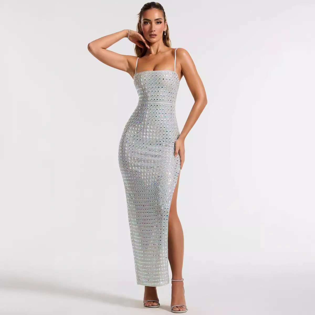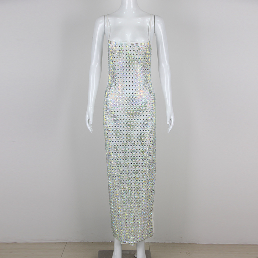 2025夏季欧美新款时尚性感气质烫钻吊带长款绷带裙高端绷带长裙款