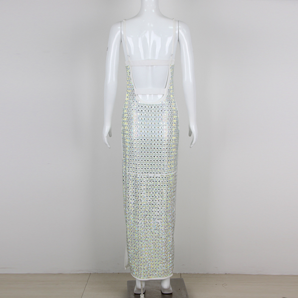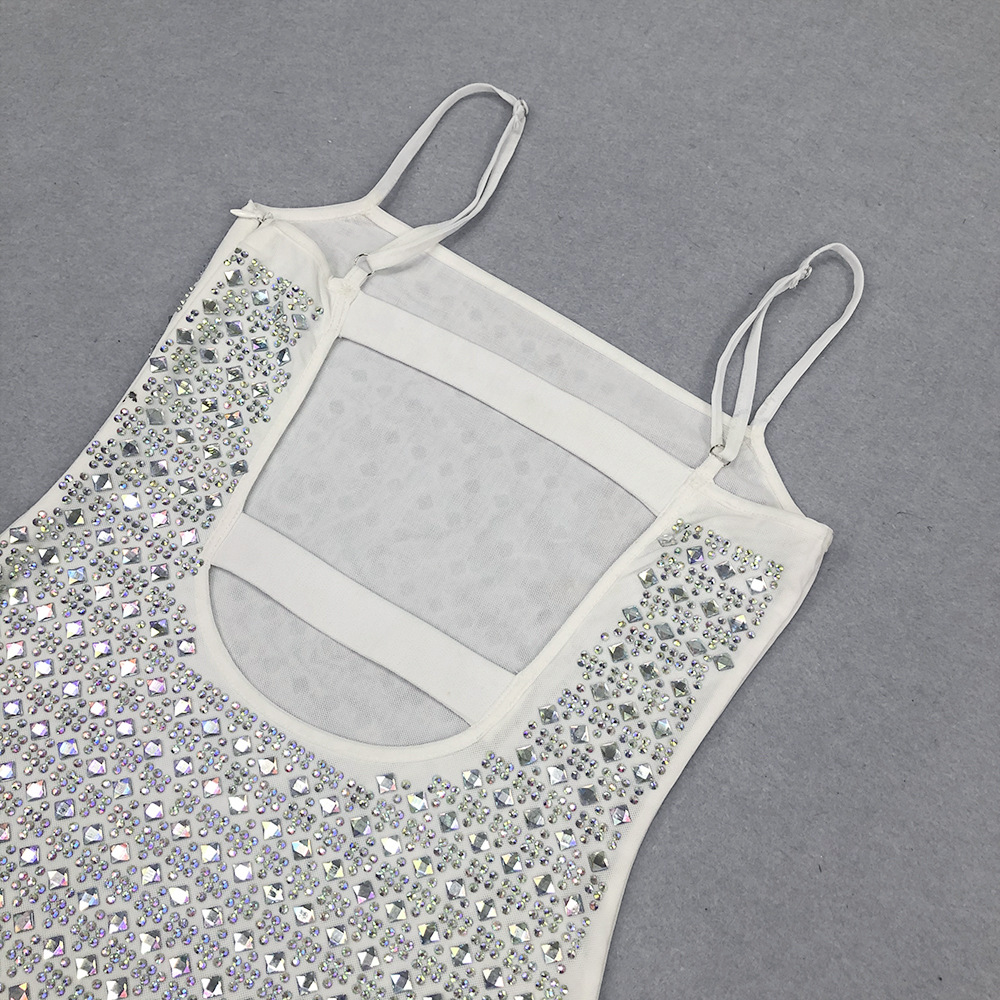 2025夏季欧美新款时尚性感气质烫钻吊带长款绷带裙高端绷带长裙款 投诉