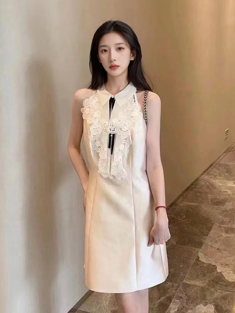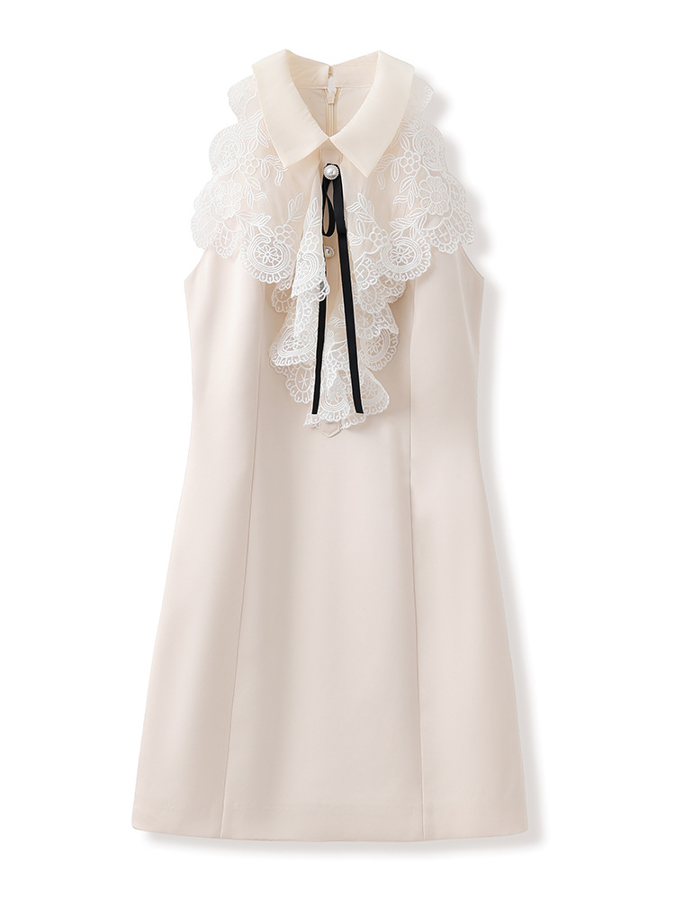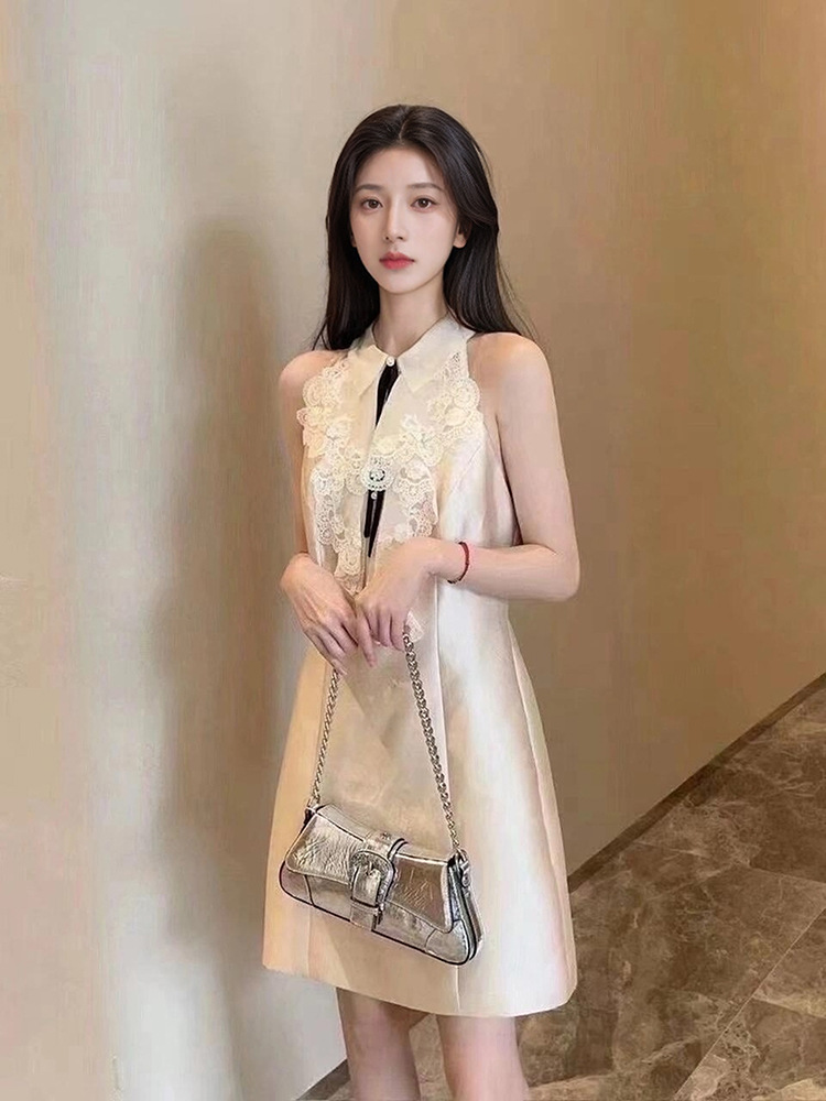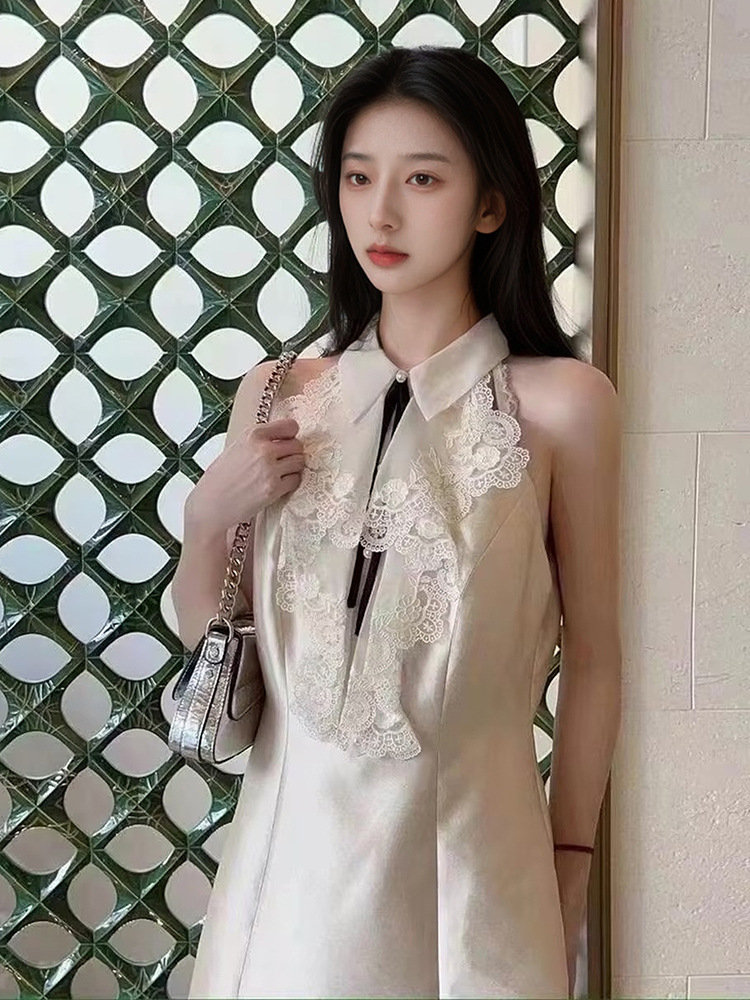 2025夏季新款法式花边设计感挂脖连衣裙轻奢高级感气质短裙 M5047 投诉