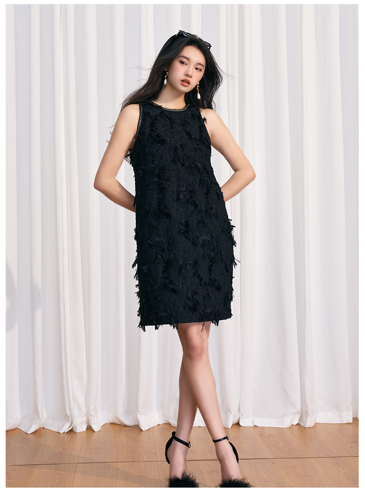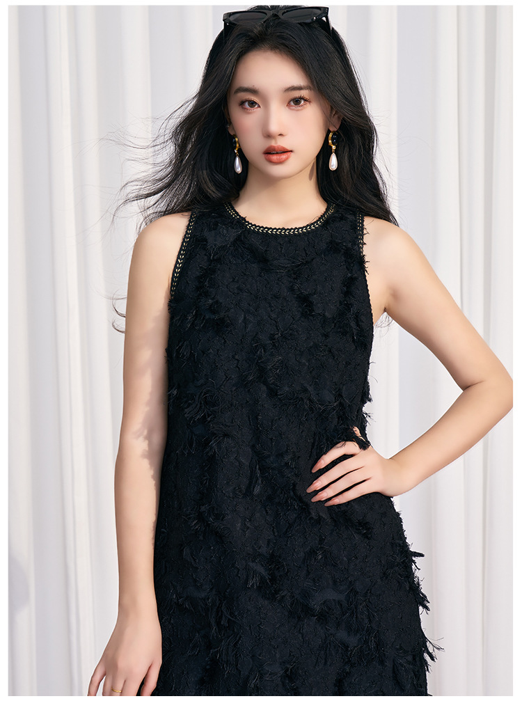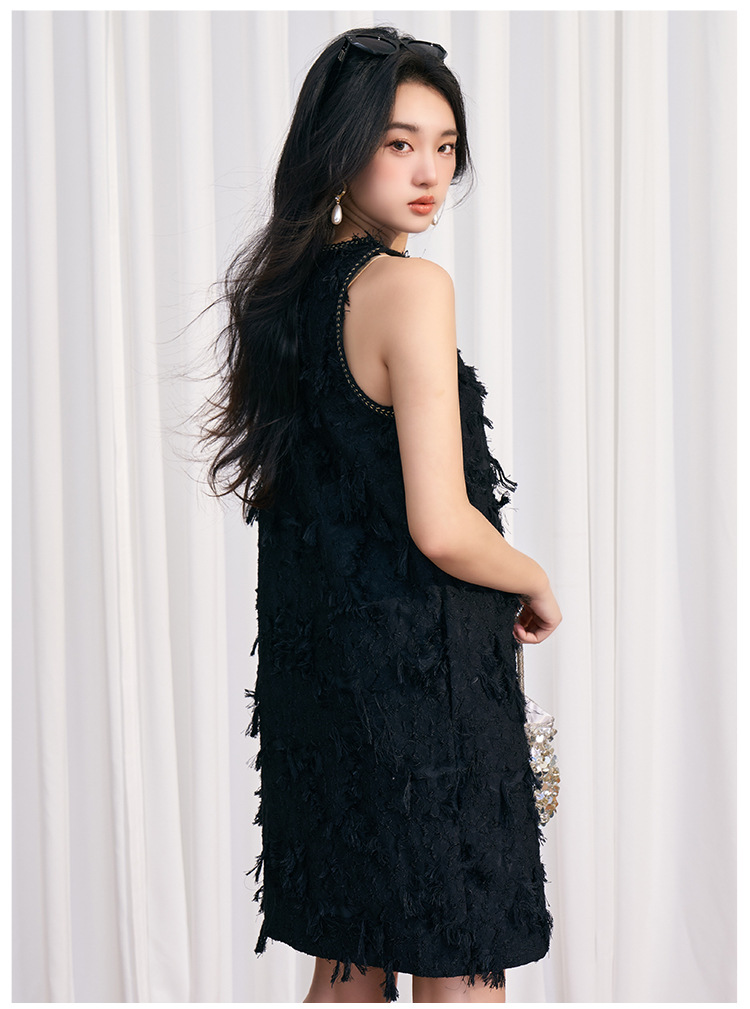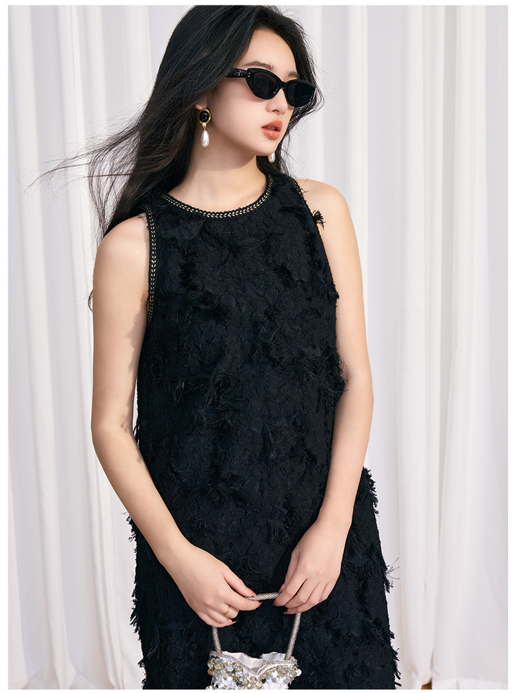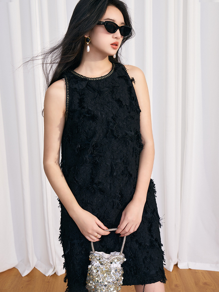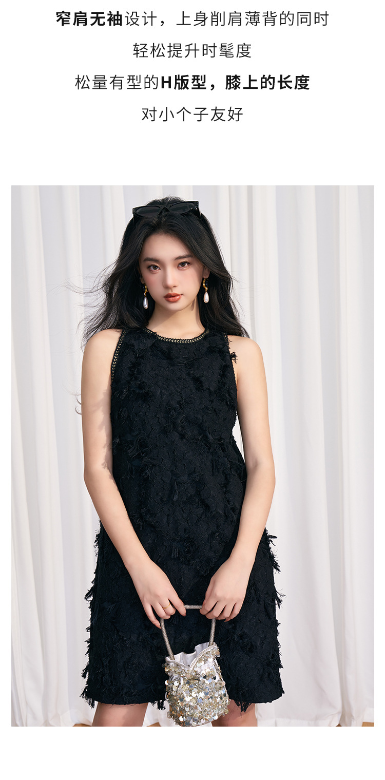 202524夏新法式复古名媛风高级感剪花无袖黑色小香A字连衣裙 投诉