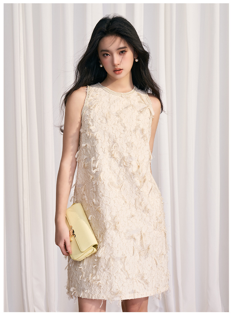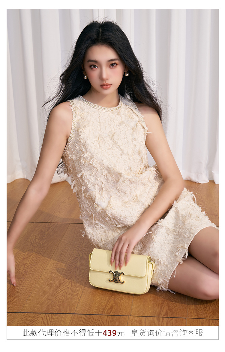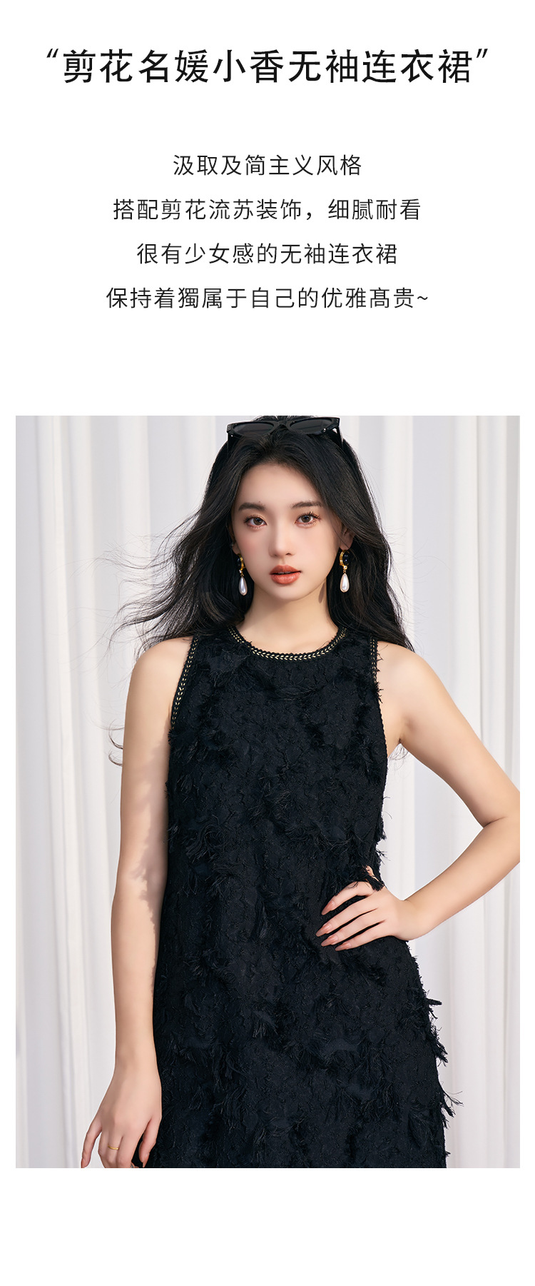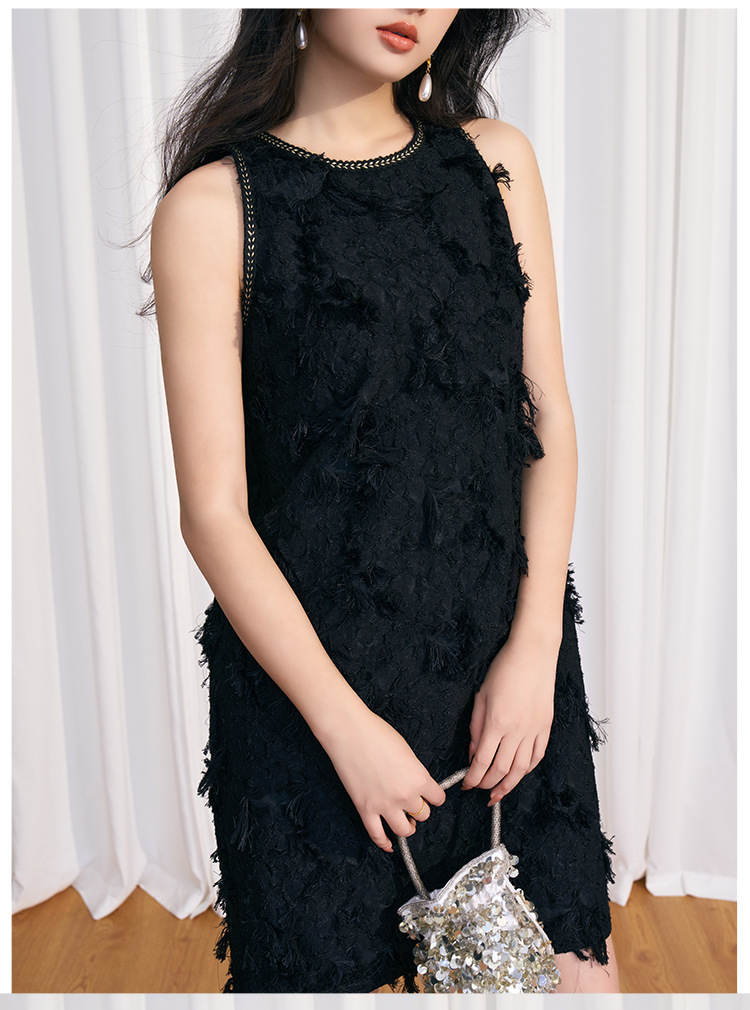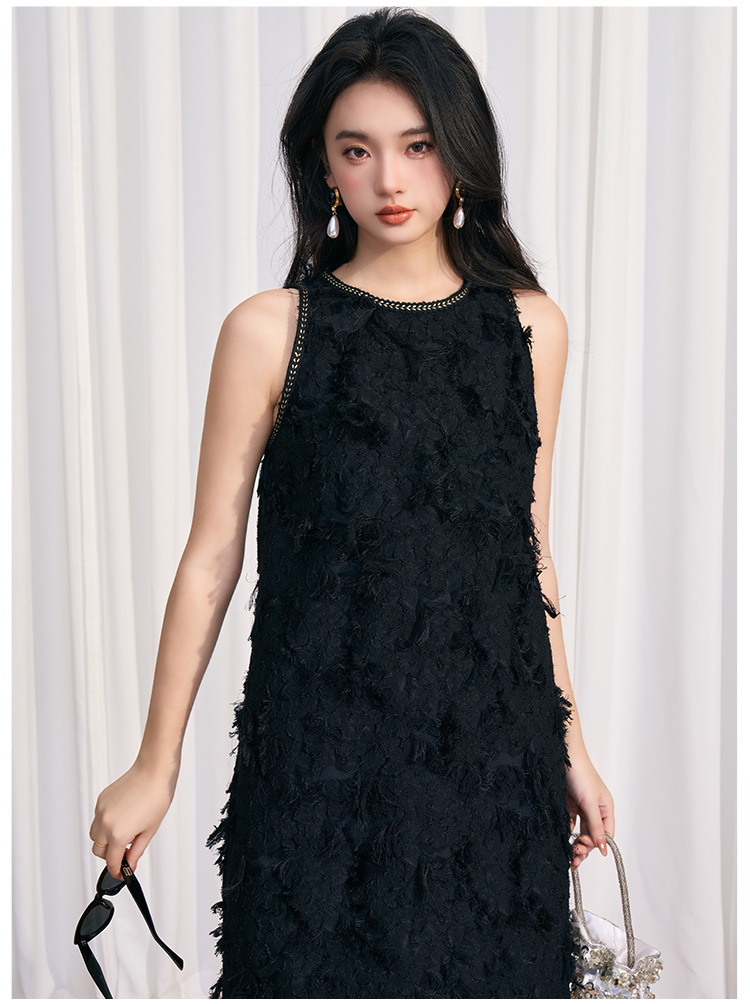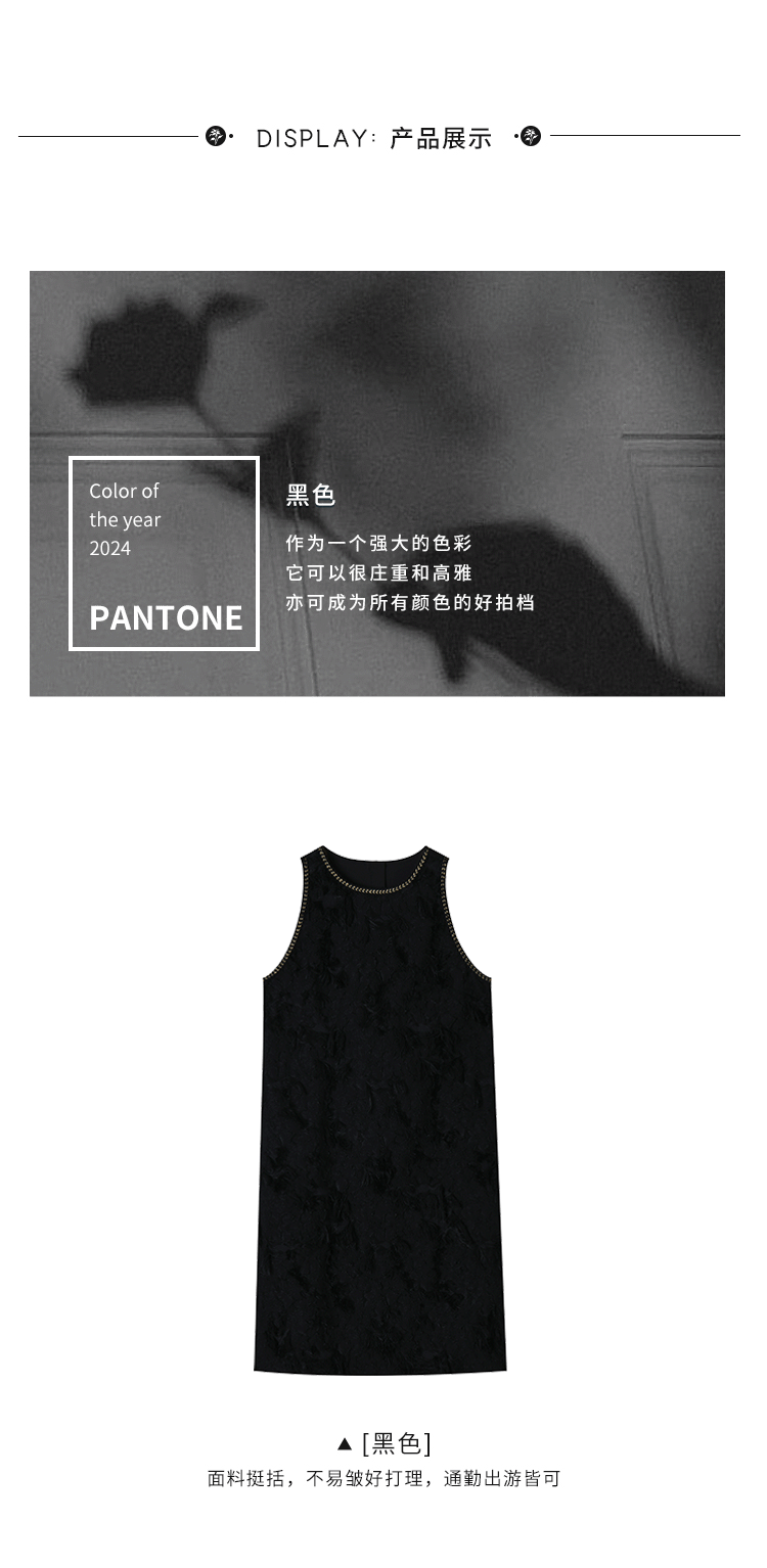 202524夏新法式复古名媛风高级感剪花无袖黑色小香A字连衣裙 投诉