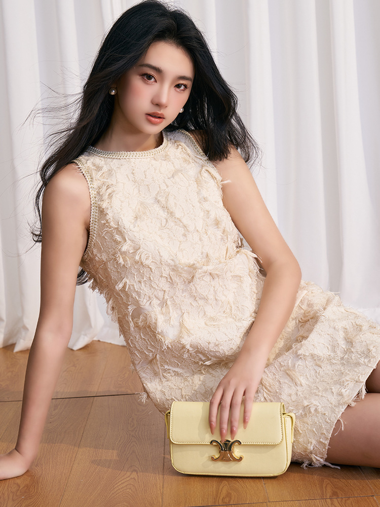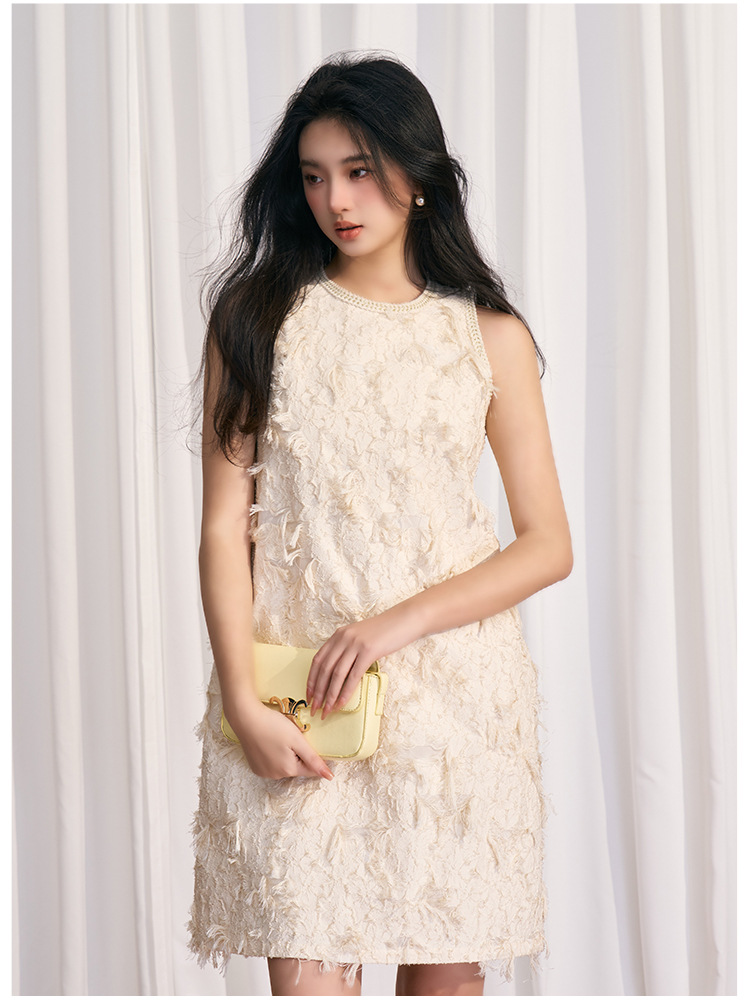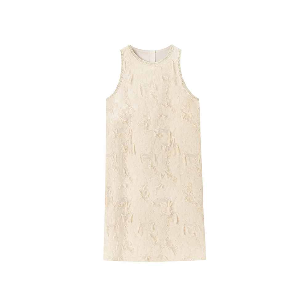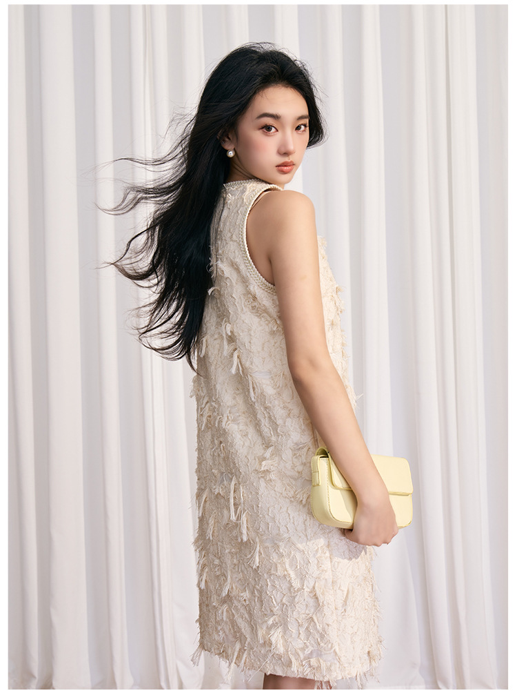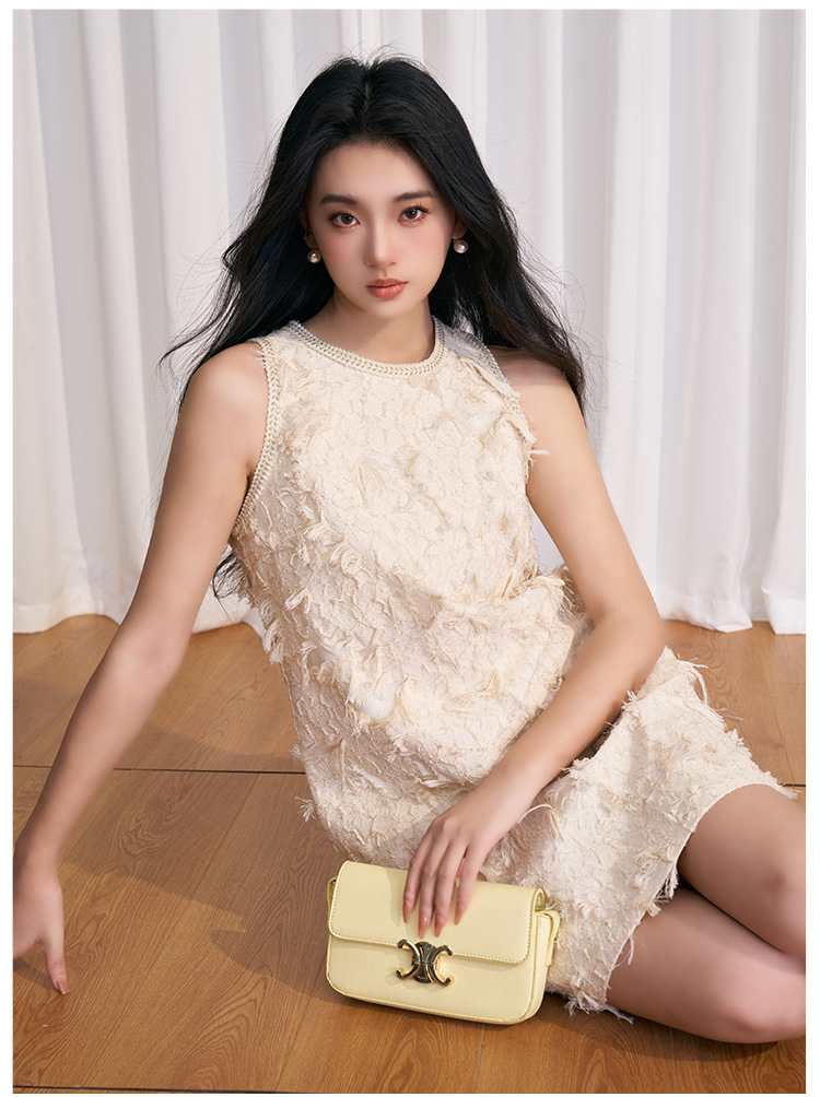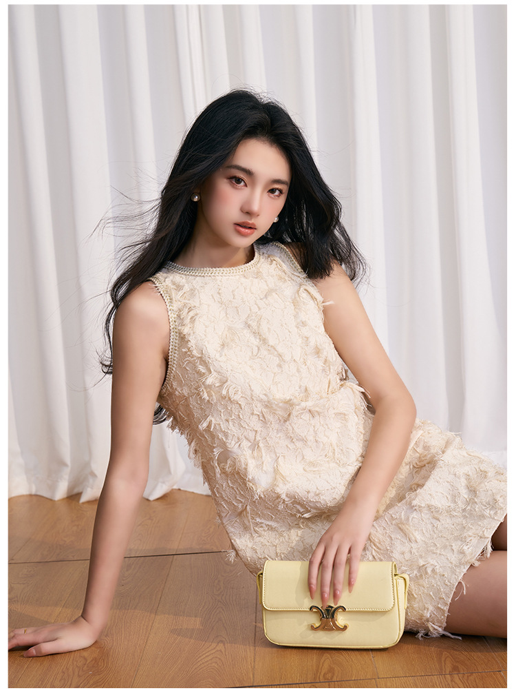 202524夏新法式复古名媛风高级感剪花无袖黑色小香A字连衣裙 投诉