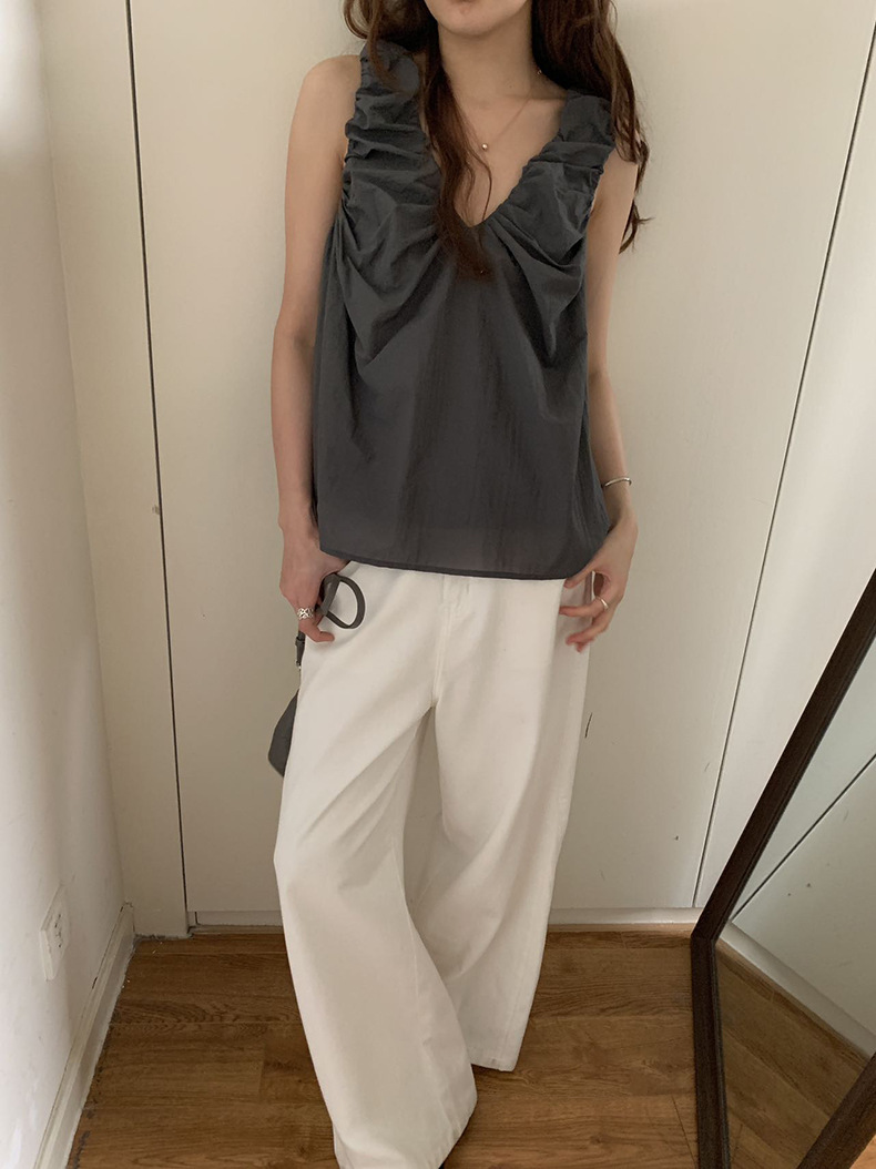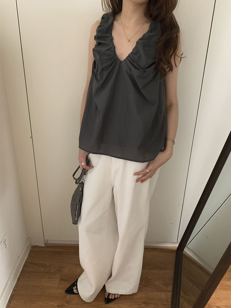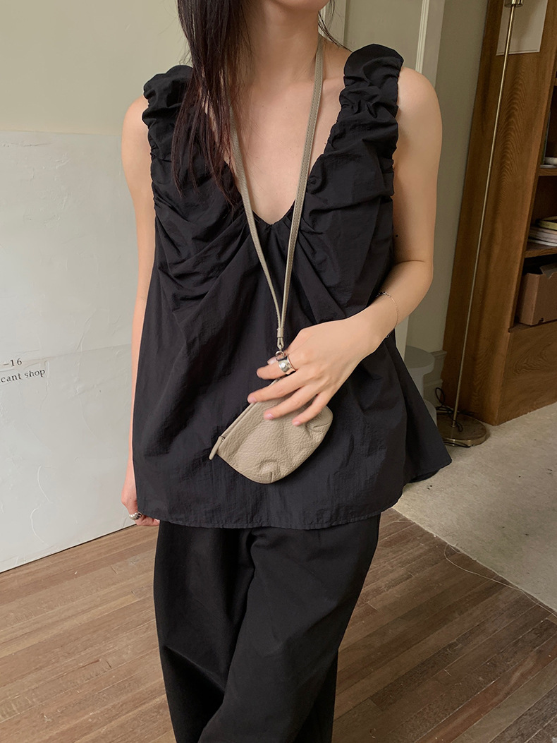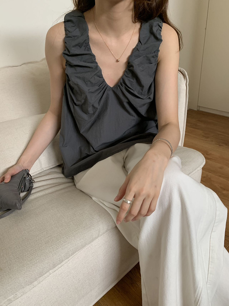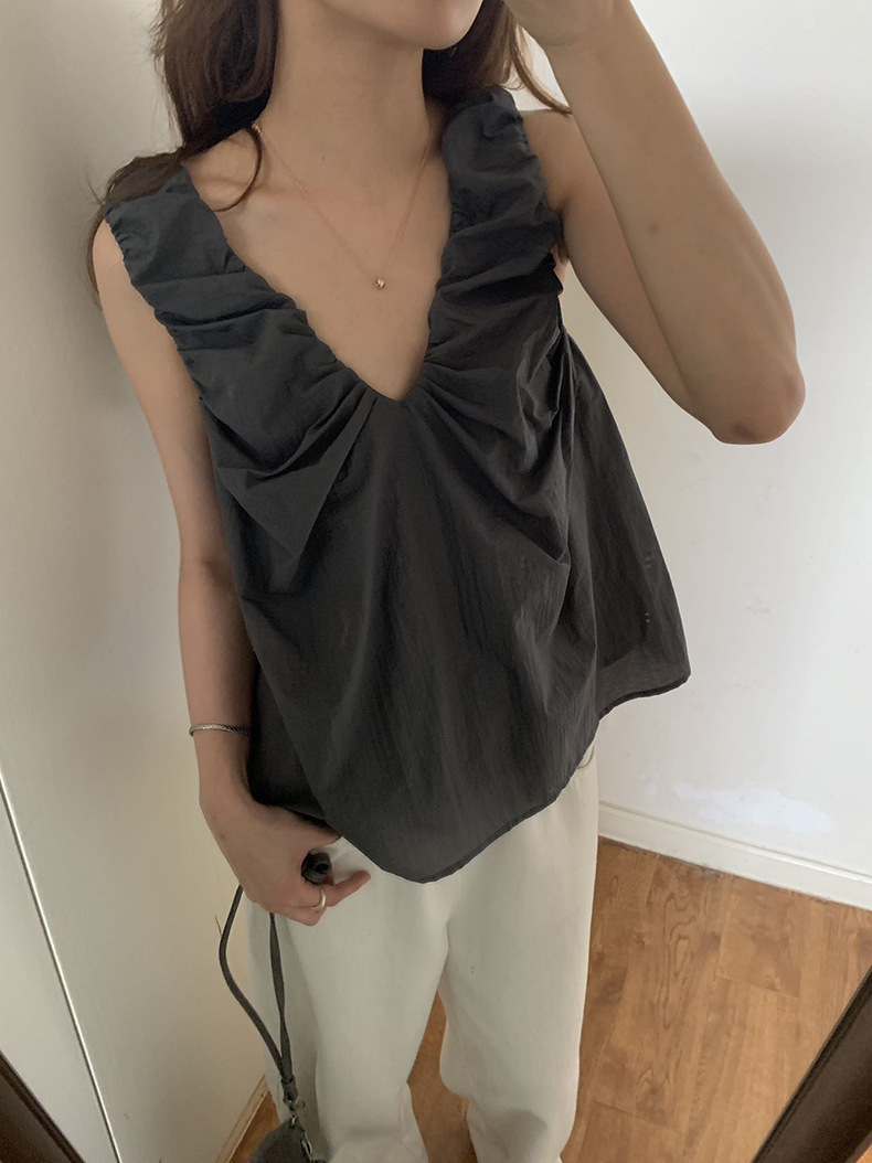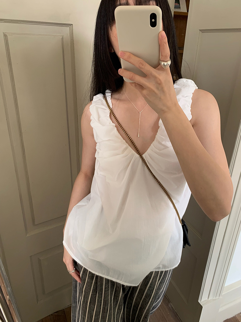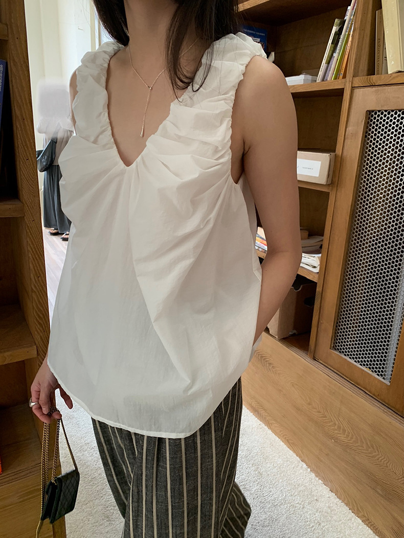 2025夏季新款褶皱背心小衫V领高级感无袖上衣女A4182
