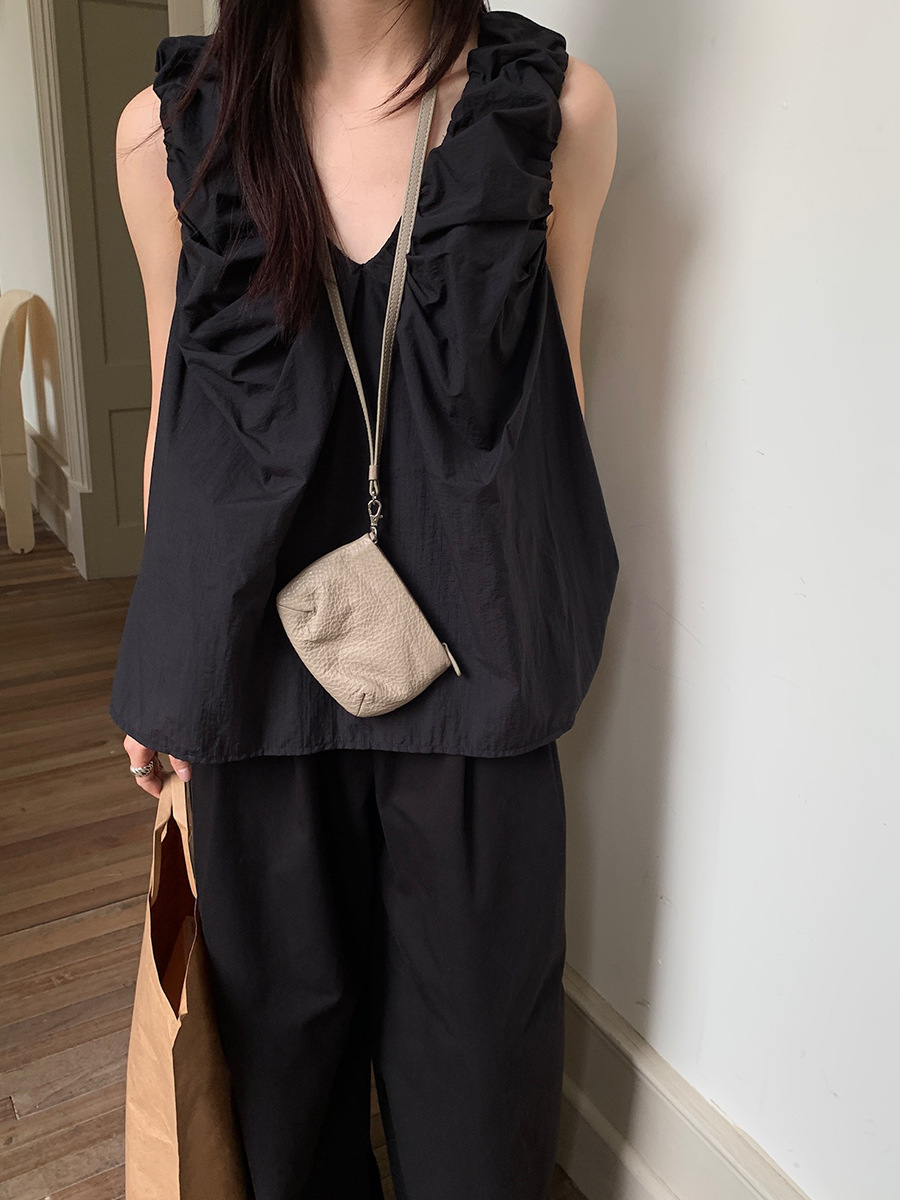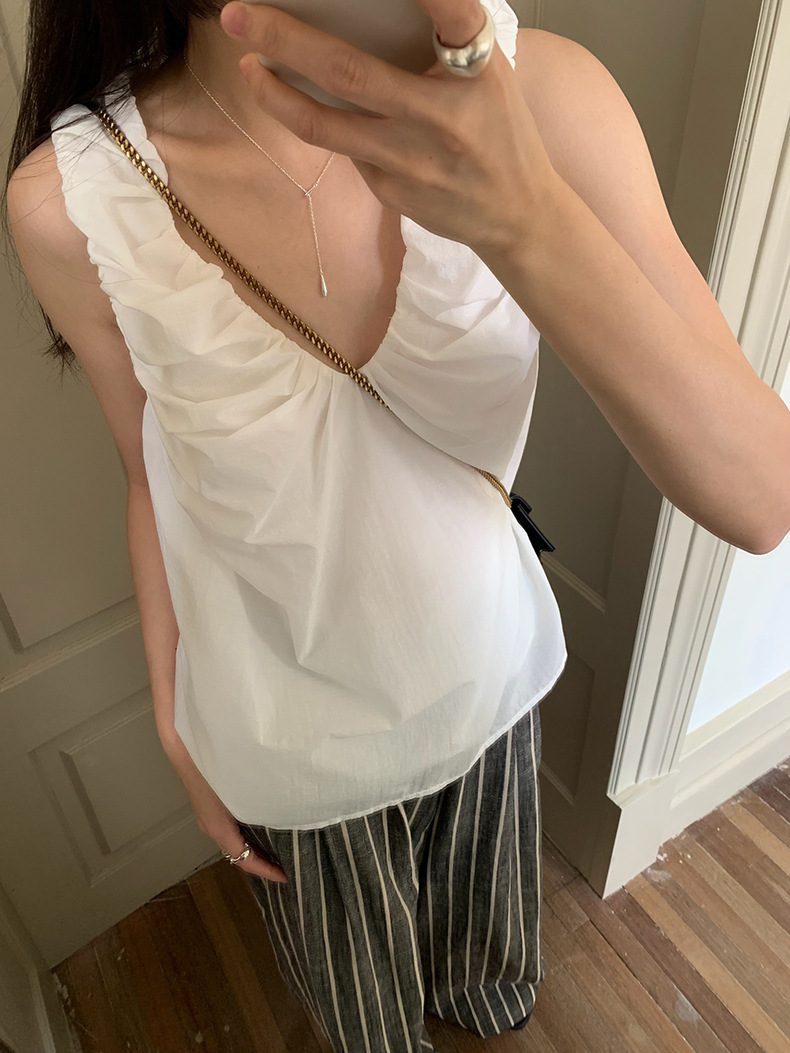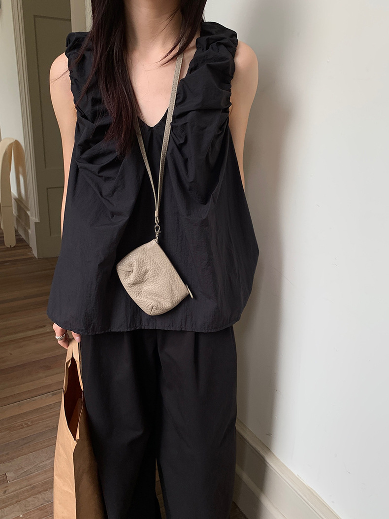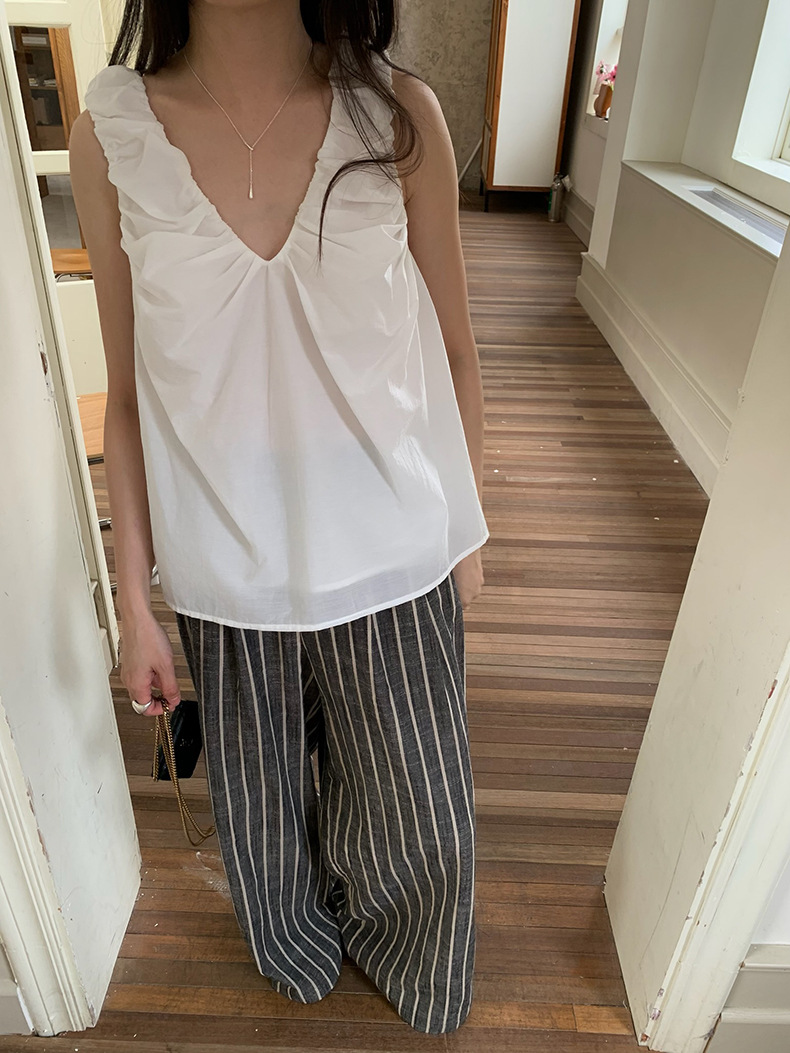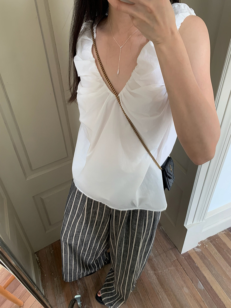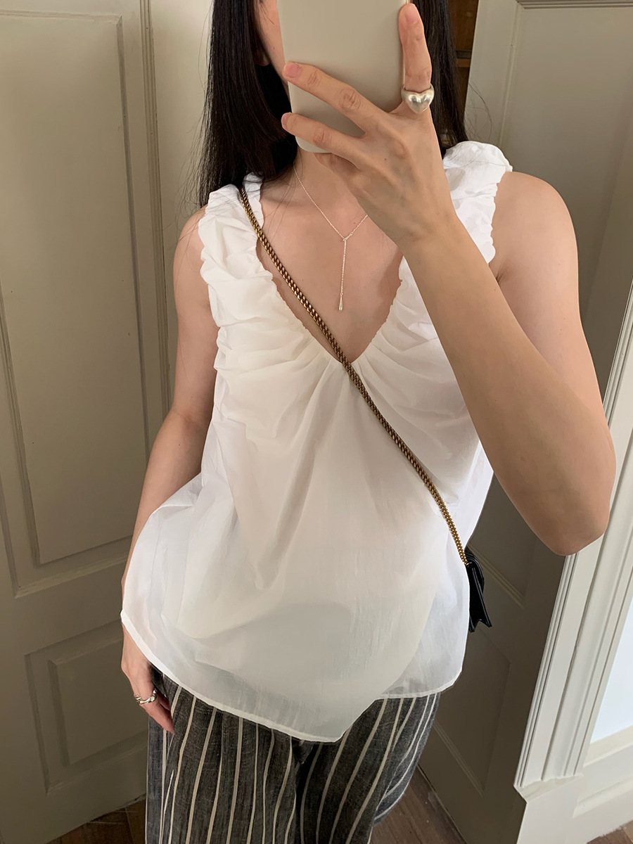2025夏季新款褶皱背心小衫V领高级感无袖上衣女A4182
