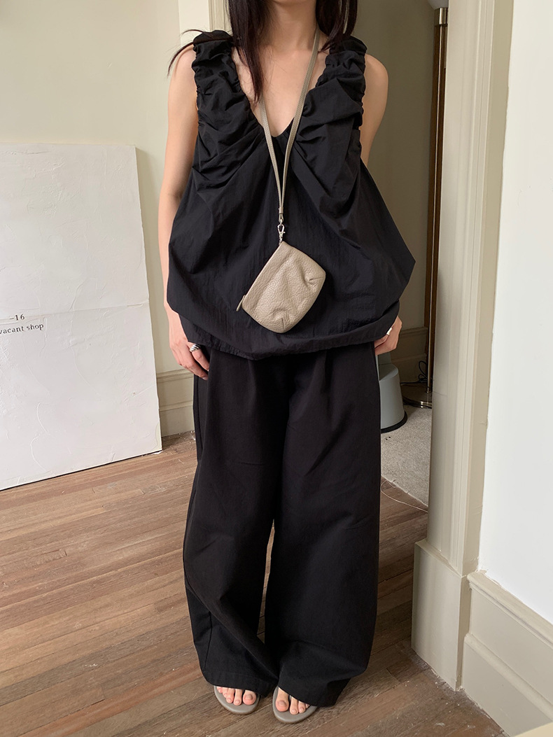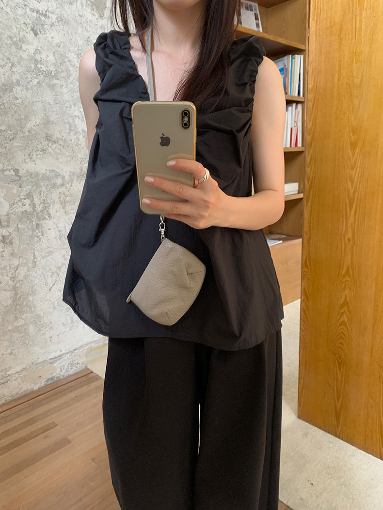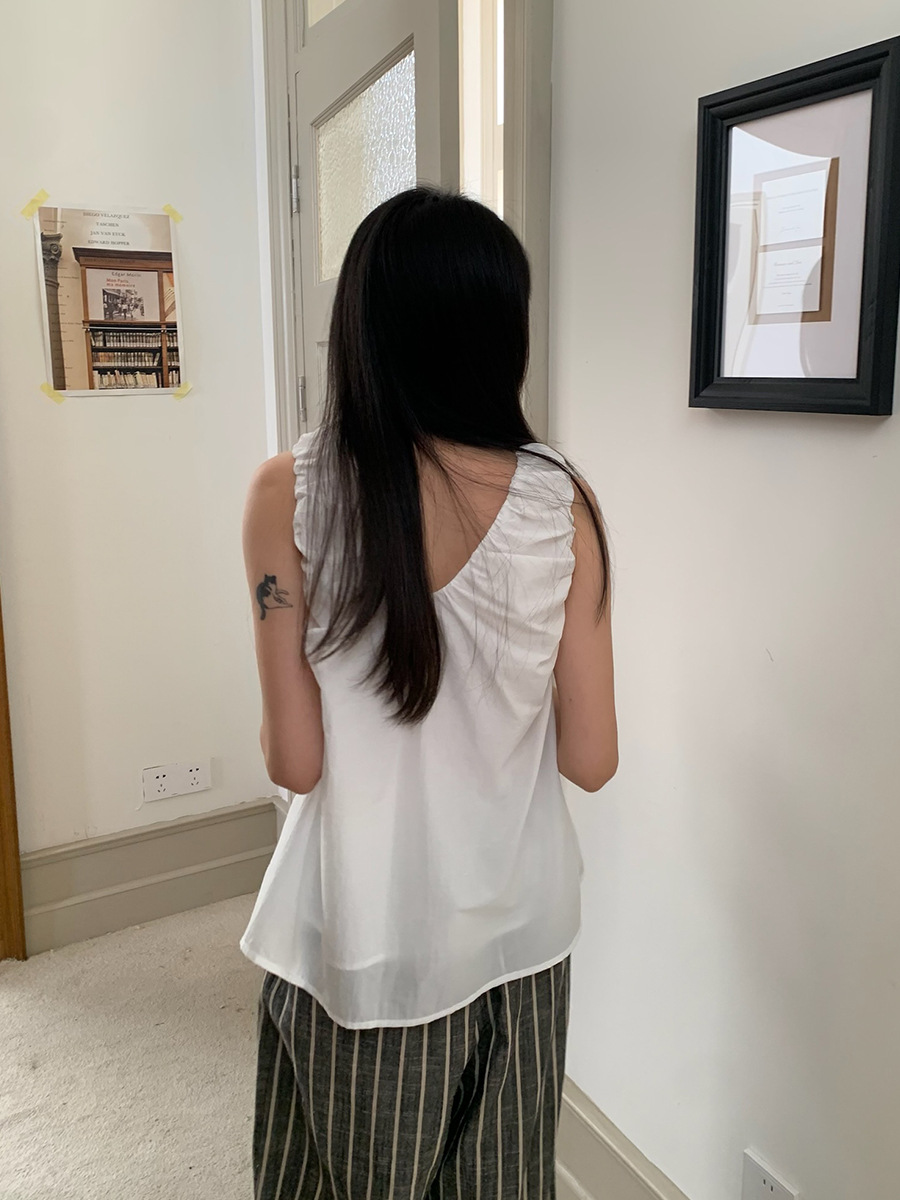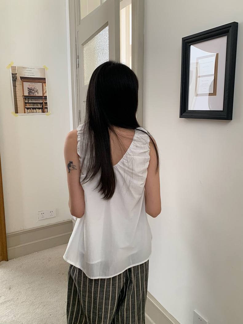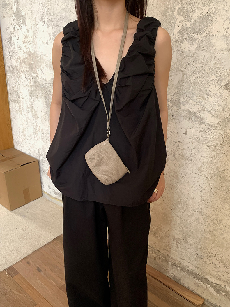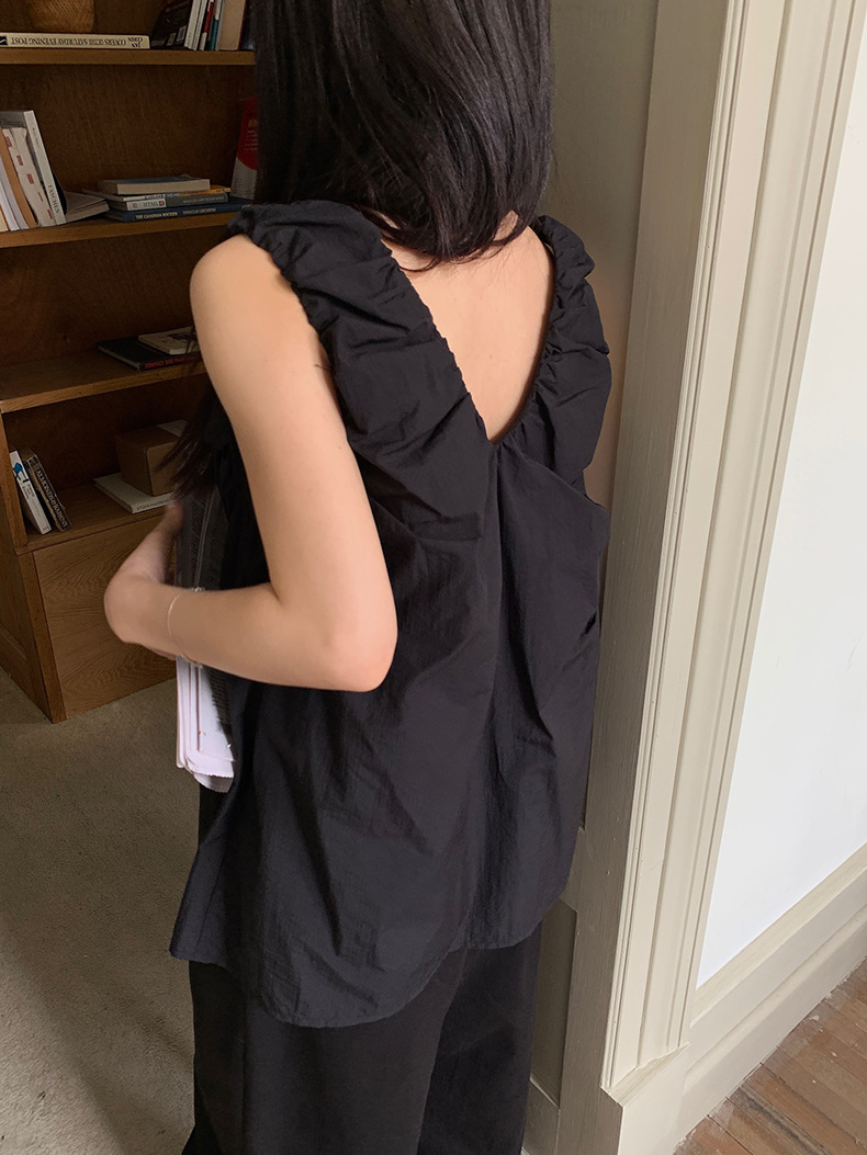 2025夏季新款褶皱背心小衫V领高级感无袖上衣女A4182