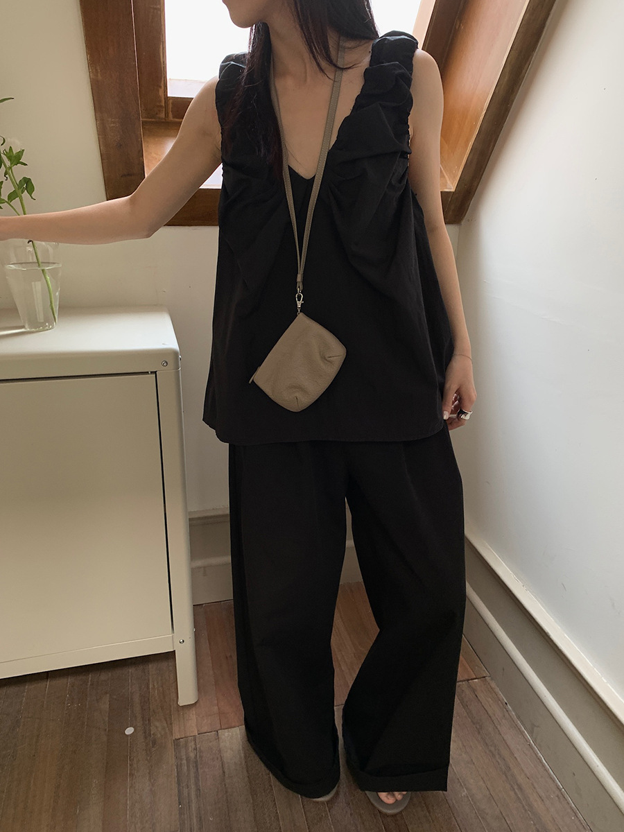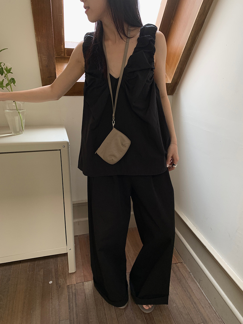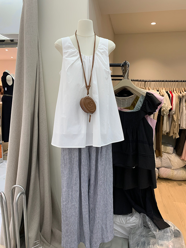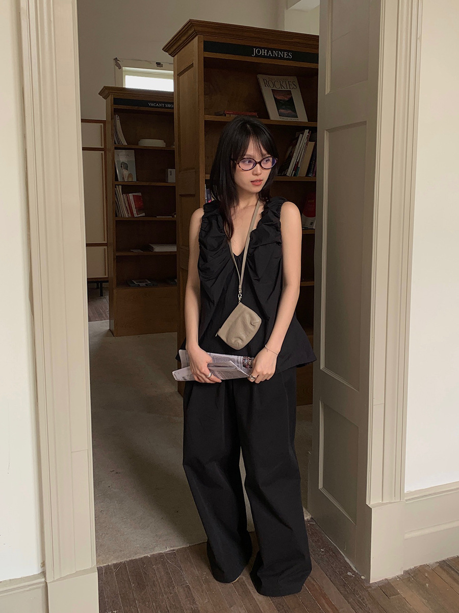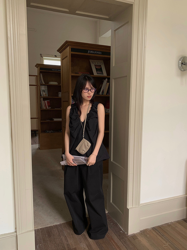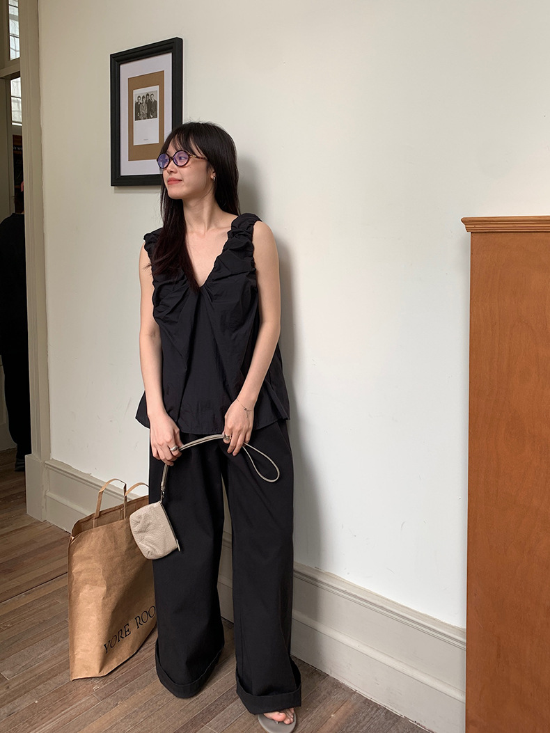 2025夏季新款褶皱背心小衫V领高级感无袖上衣女A4182