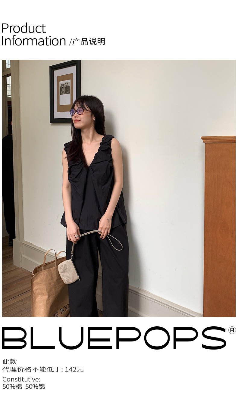 2025夏季新款褶皱背心小衫V领高级感无袖上衣女A4182 投诉