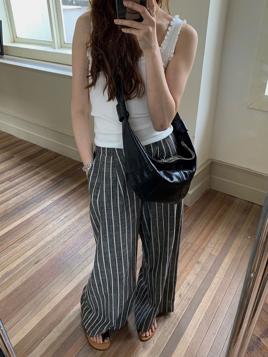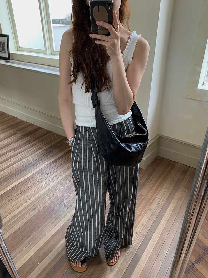 2025夏季新款棉麻条纹休闲裤显瘦阔腿直筒长裤A4210