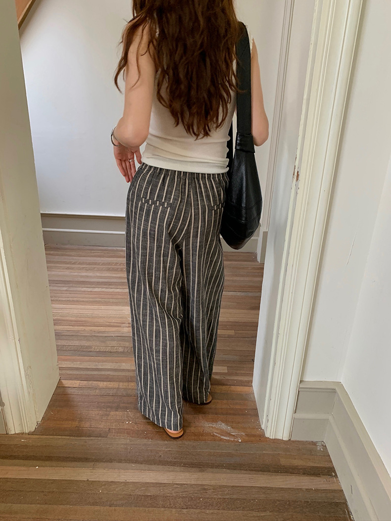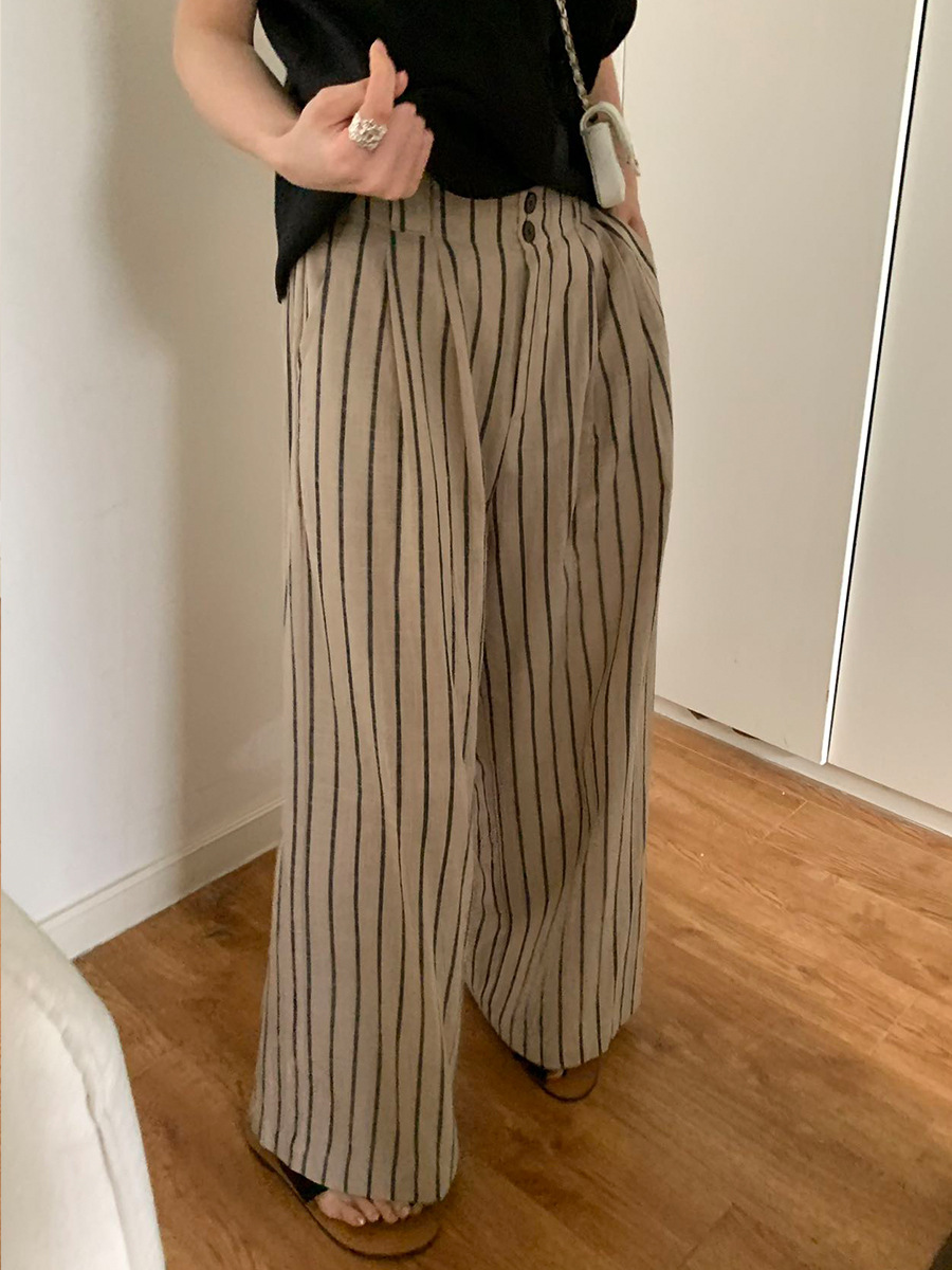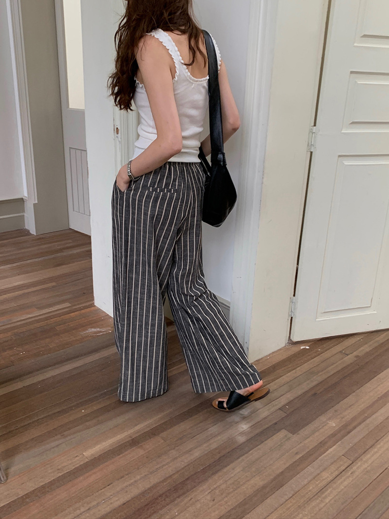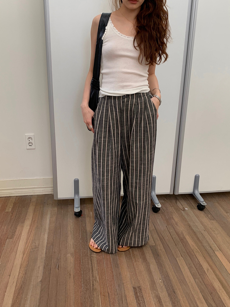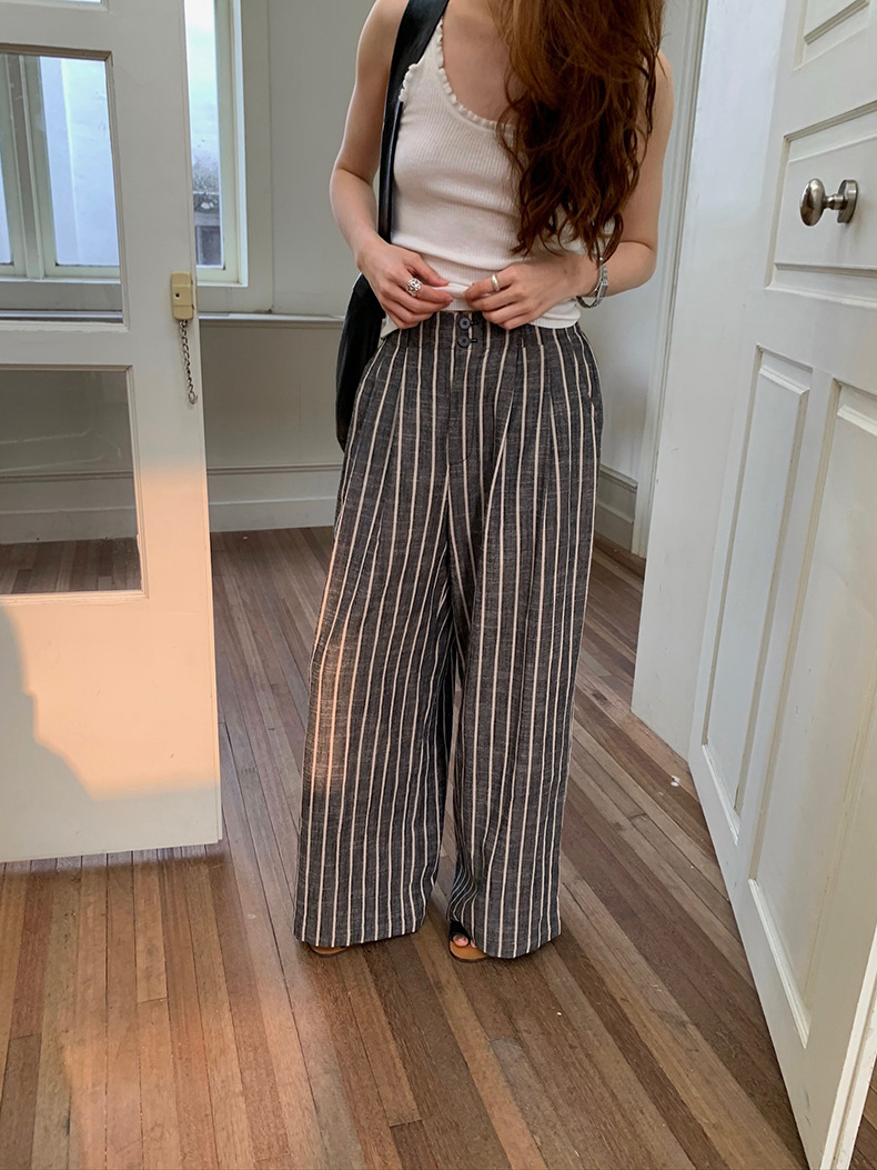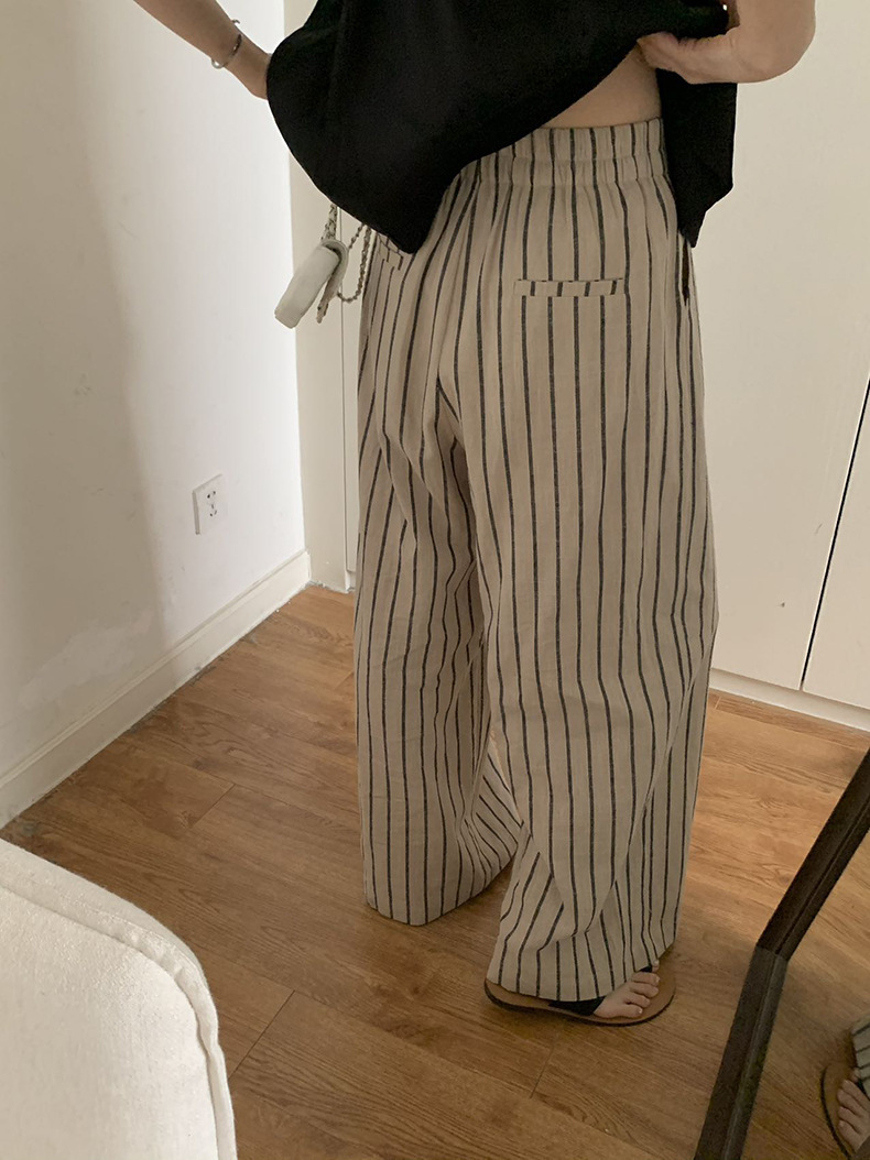 2025夏季新款棉麻条纹休闲裤显瘦阔腿直筒长裤A4210 投诉