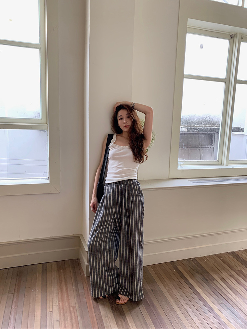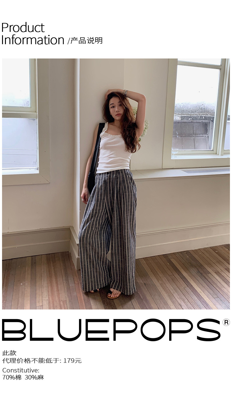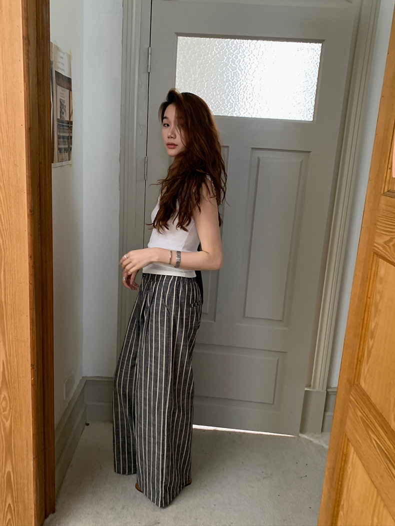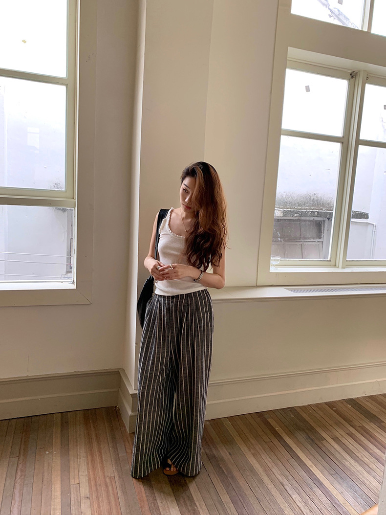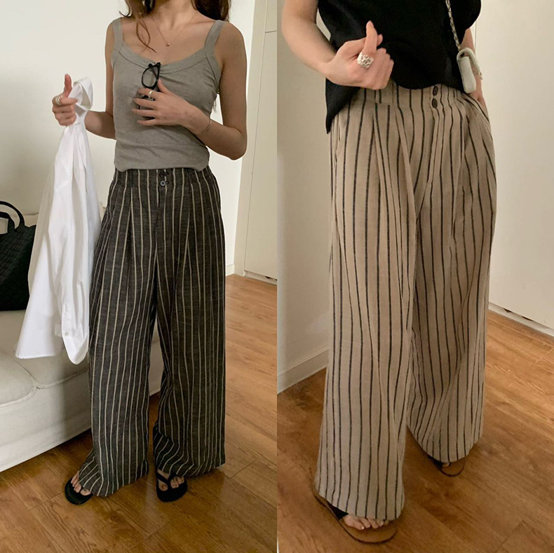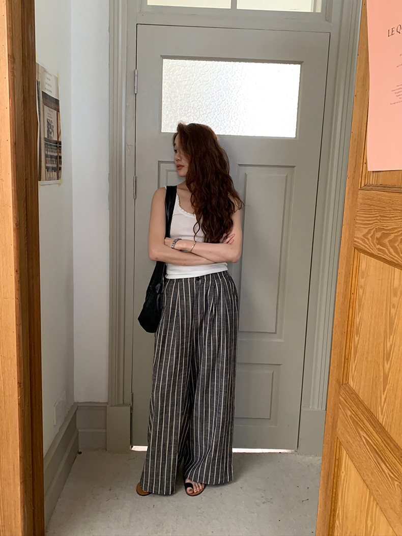 2025夏季新款棉麻条纹休闲裤显瘦阔腿直筒长裤A4210 投诉