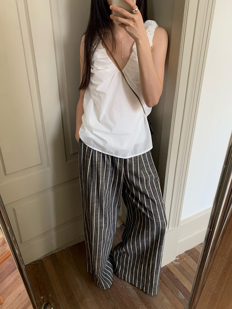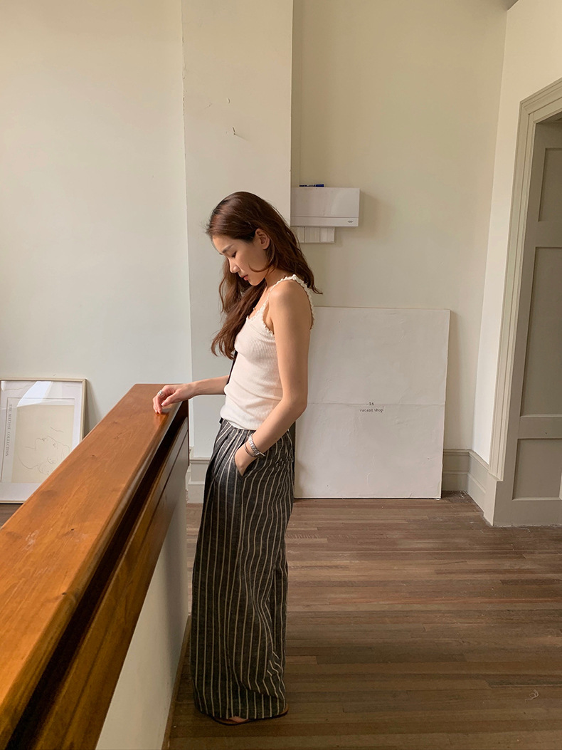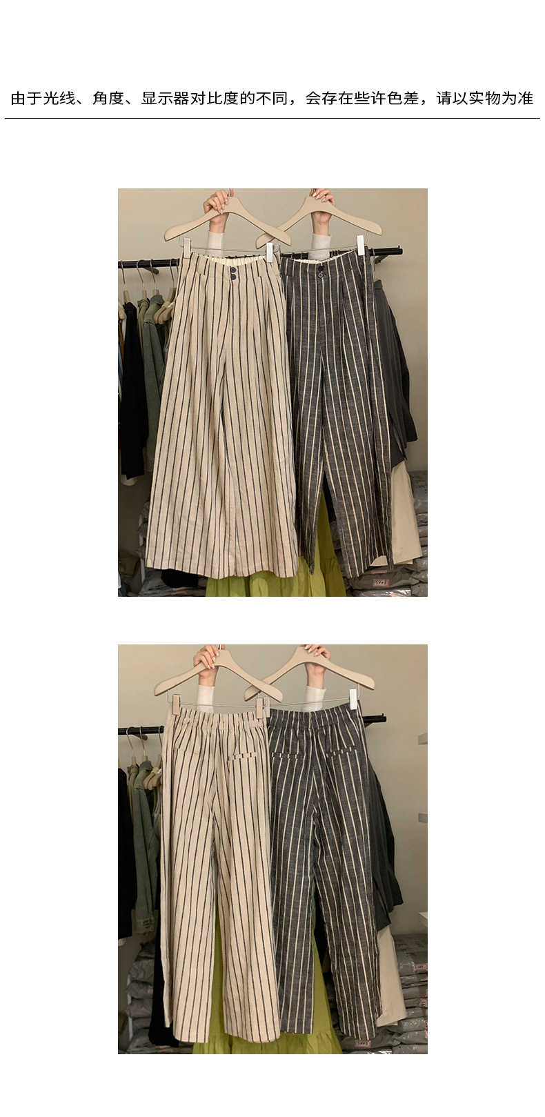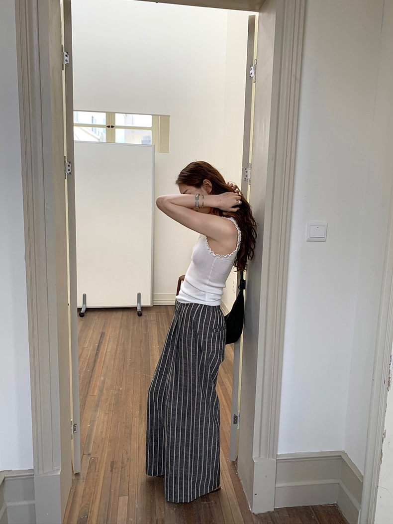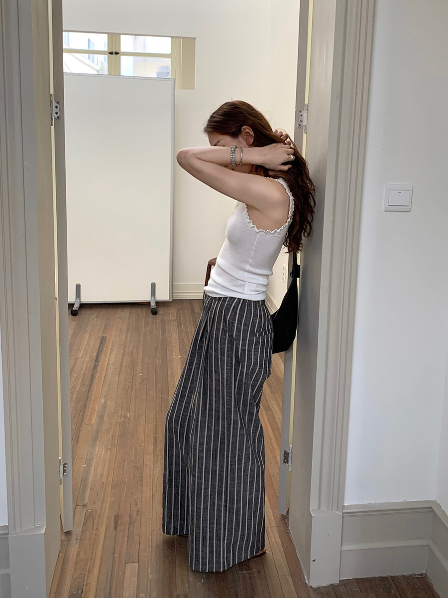 2025夏季新款棉麻条纹休闲裤显瘦阔腿直筒长裤A4210 投诉