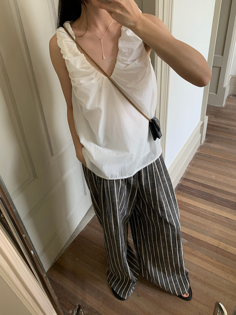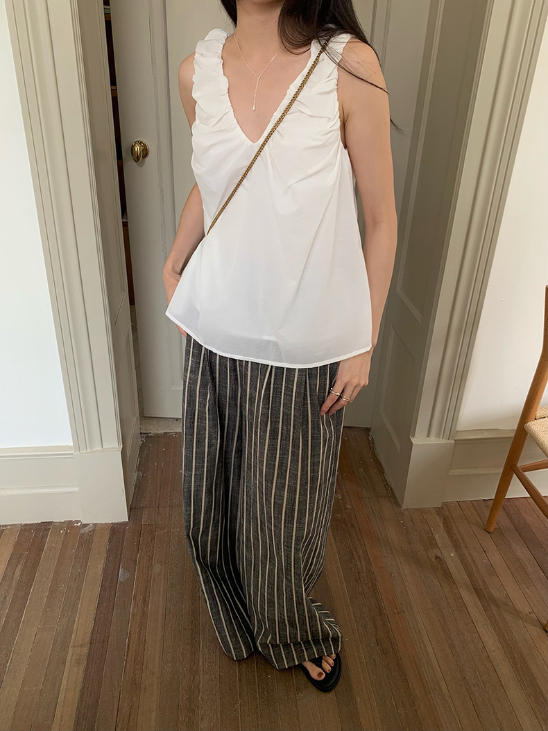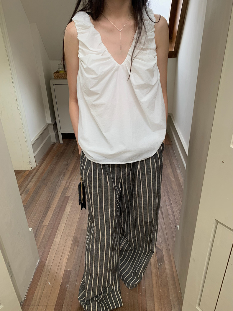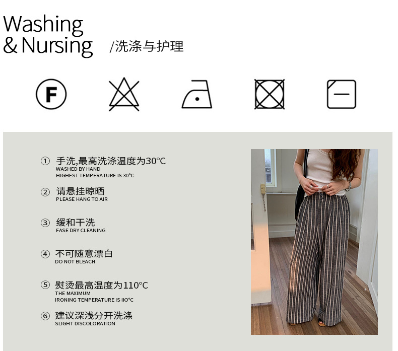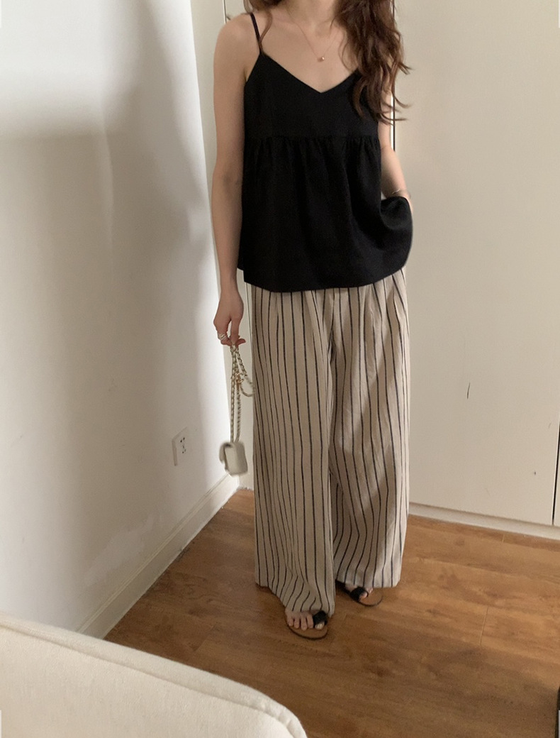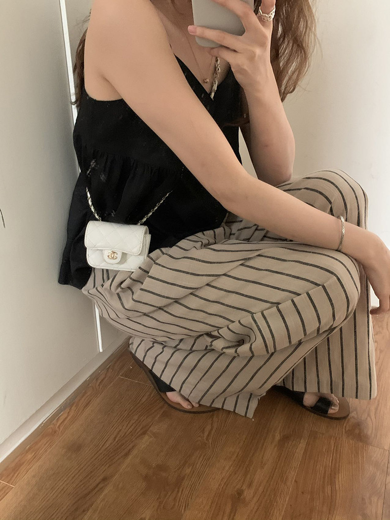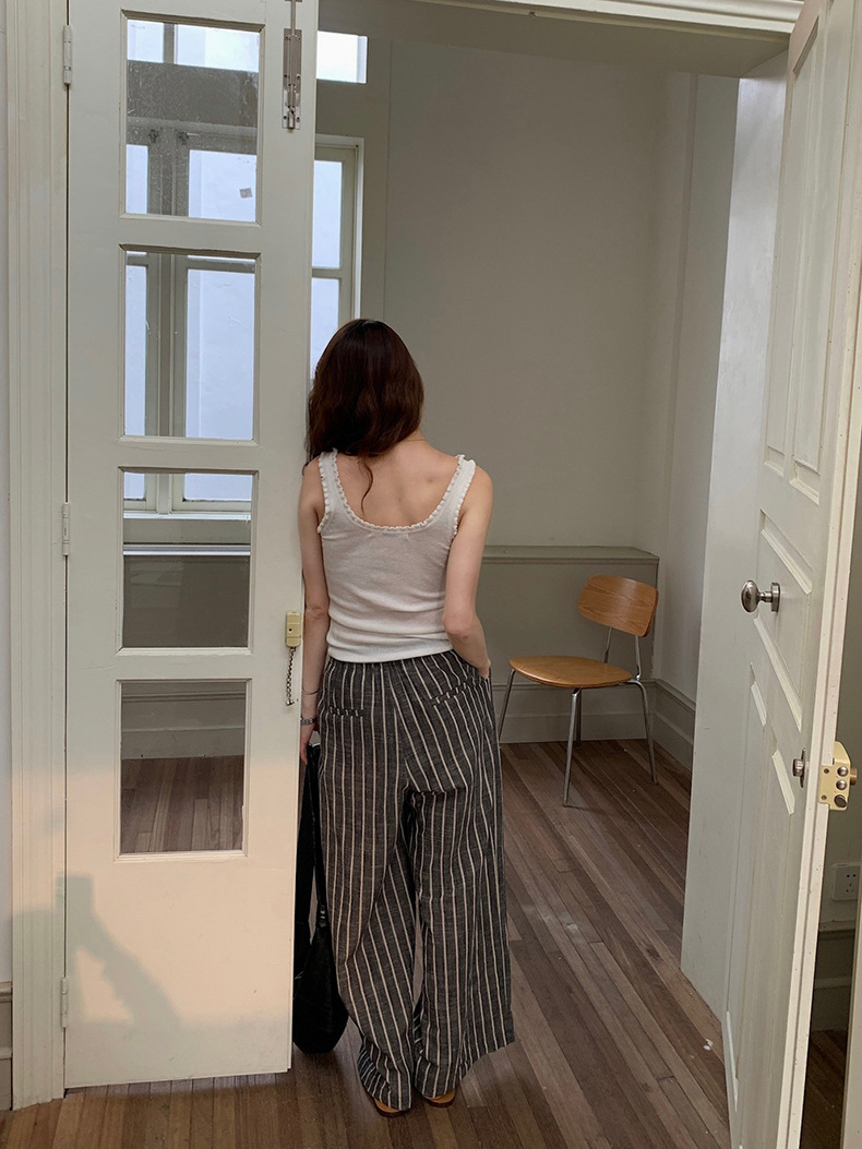 2025夏季新款棉麻条纹休闲裤显瘦阔腿直筒长裤A4210 投诉