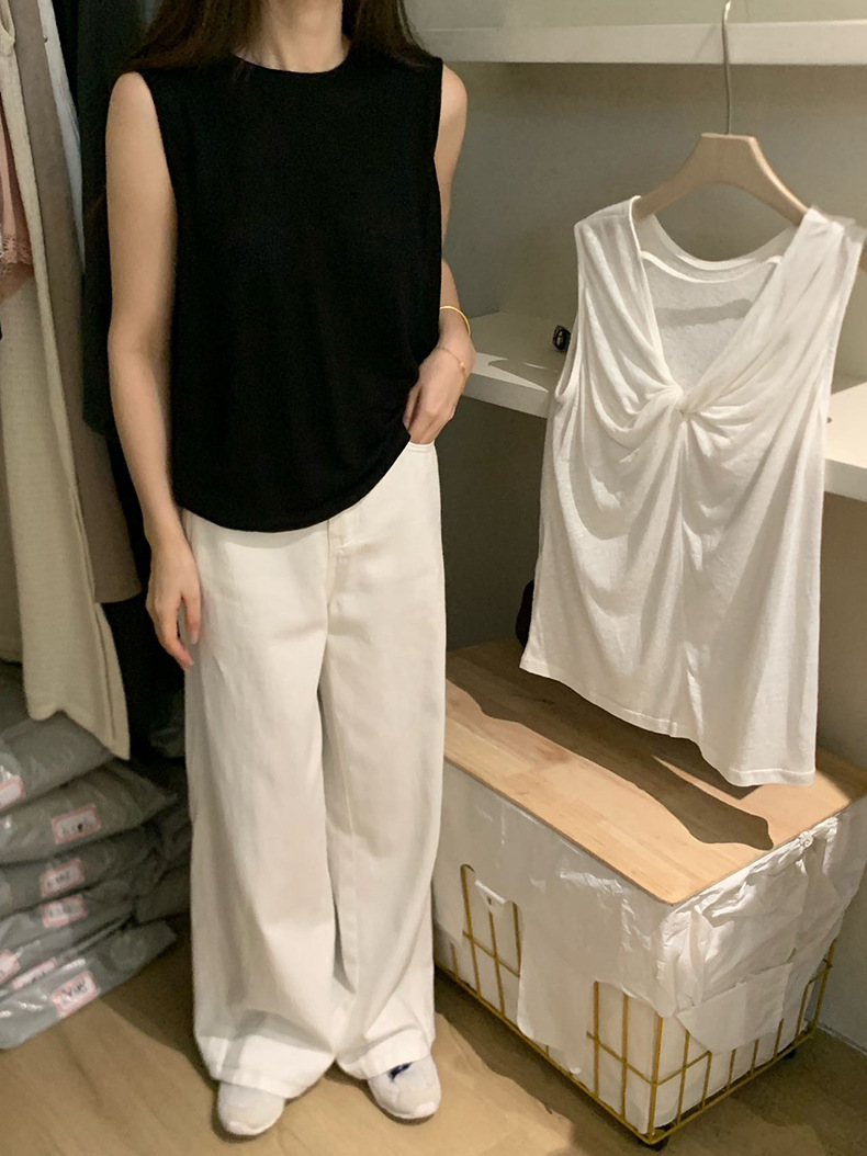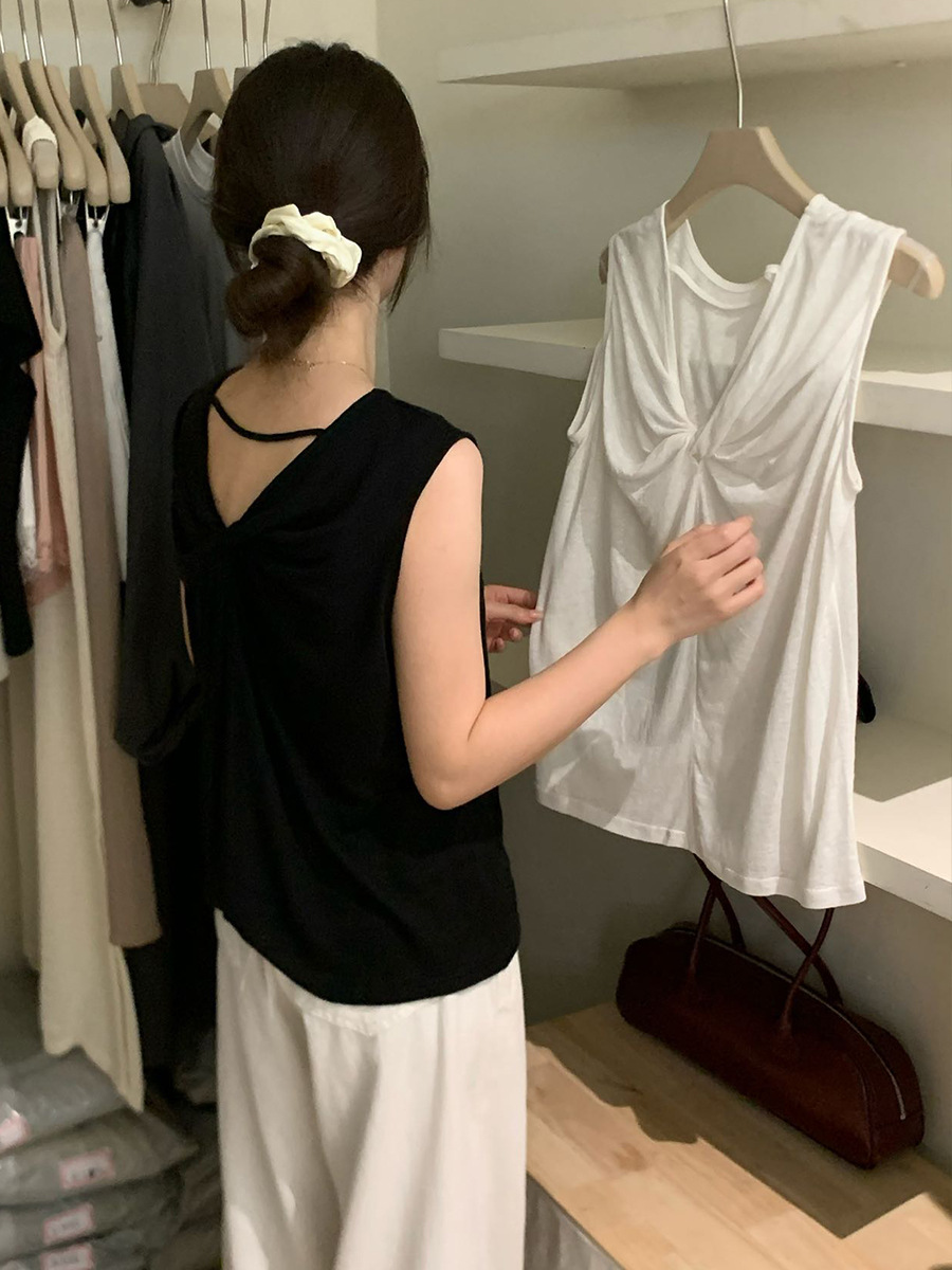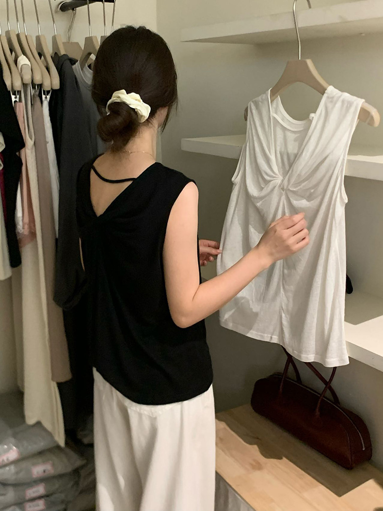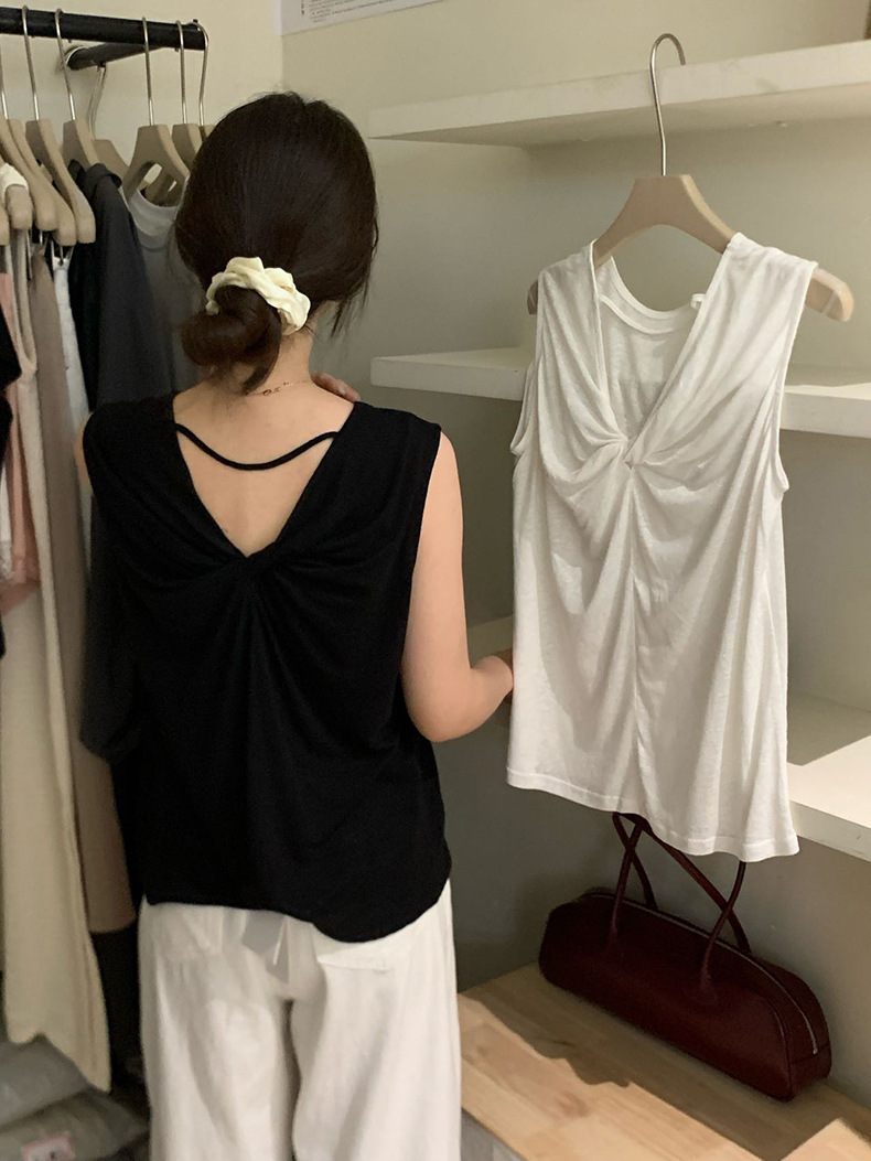 2025夏季新款扭结露背设计感背心休闲无袖上衣A0215
