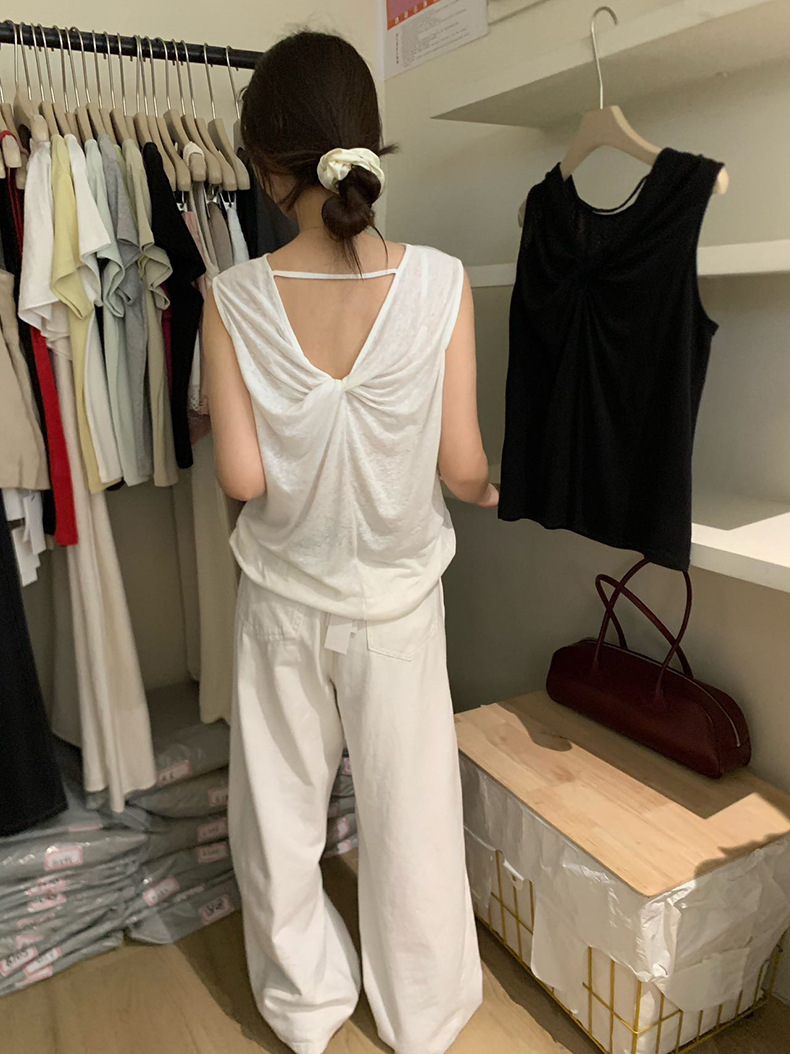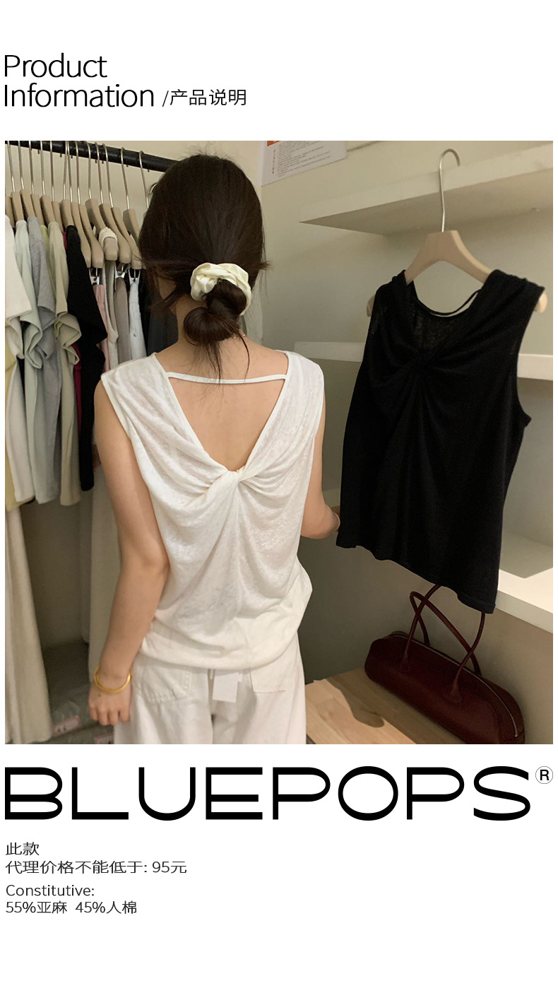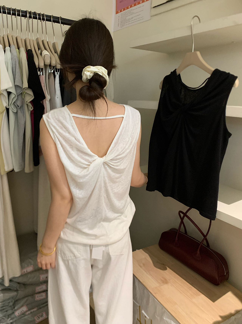 2025夏季新款扭结露背设计感背心休闲无袖上衣A0215 投诉