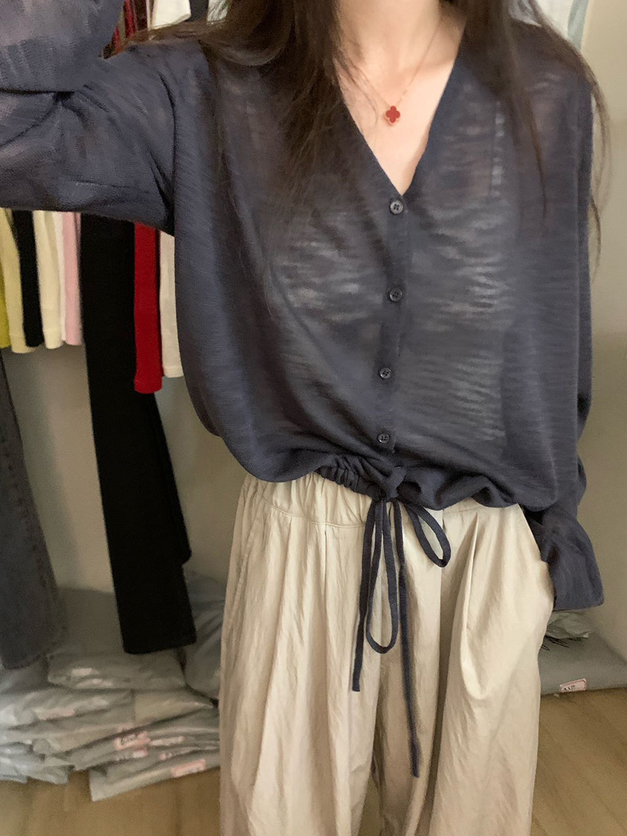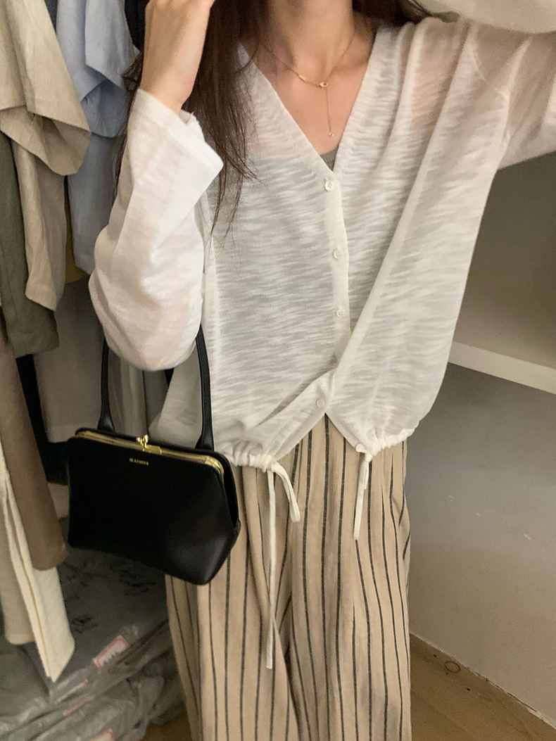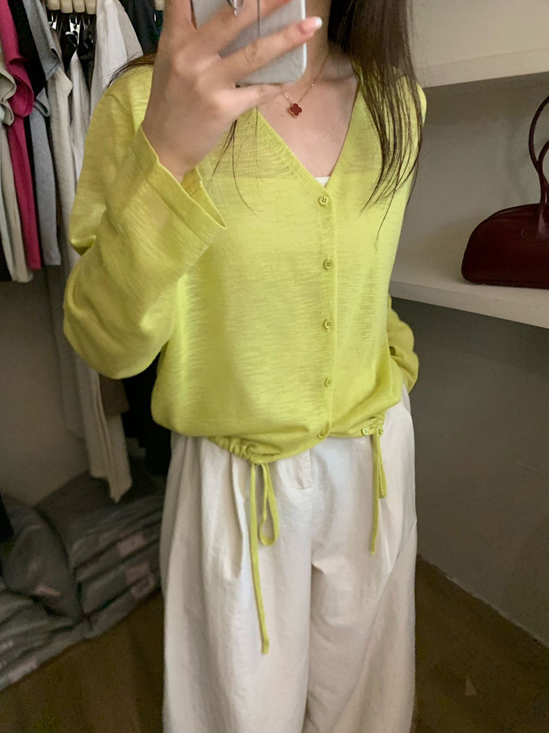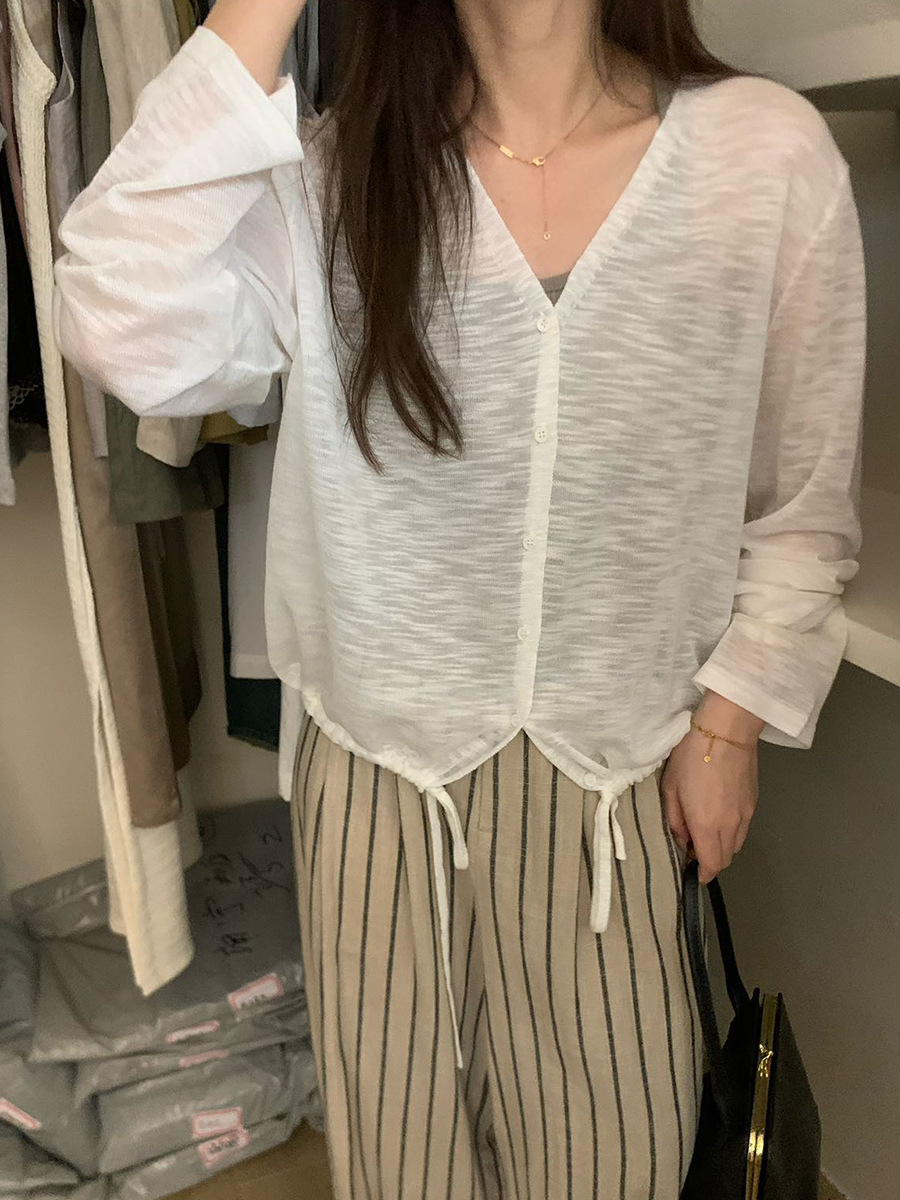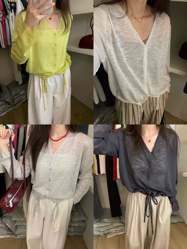 2025夏季新款休闲抽绳V领防晒衫薄款开衫上衣女A4265