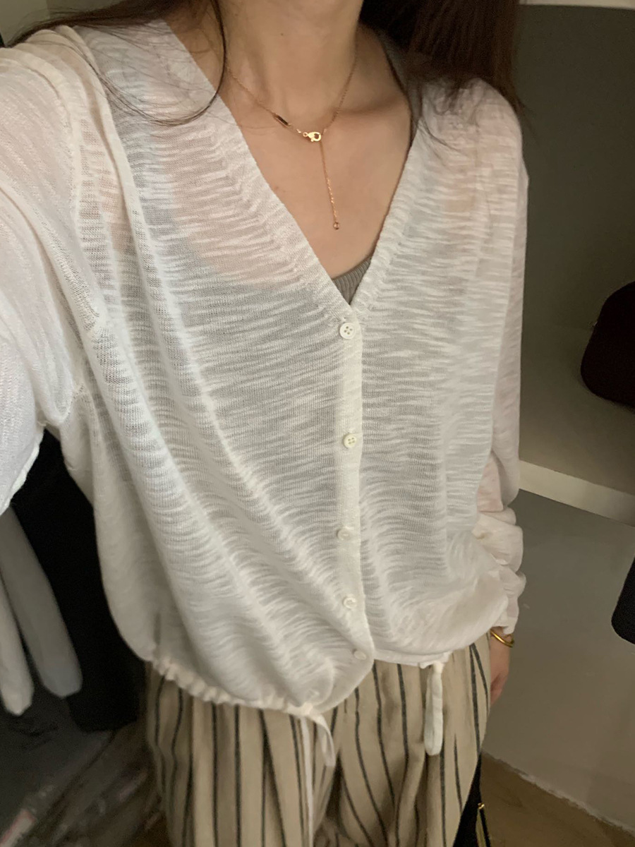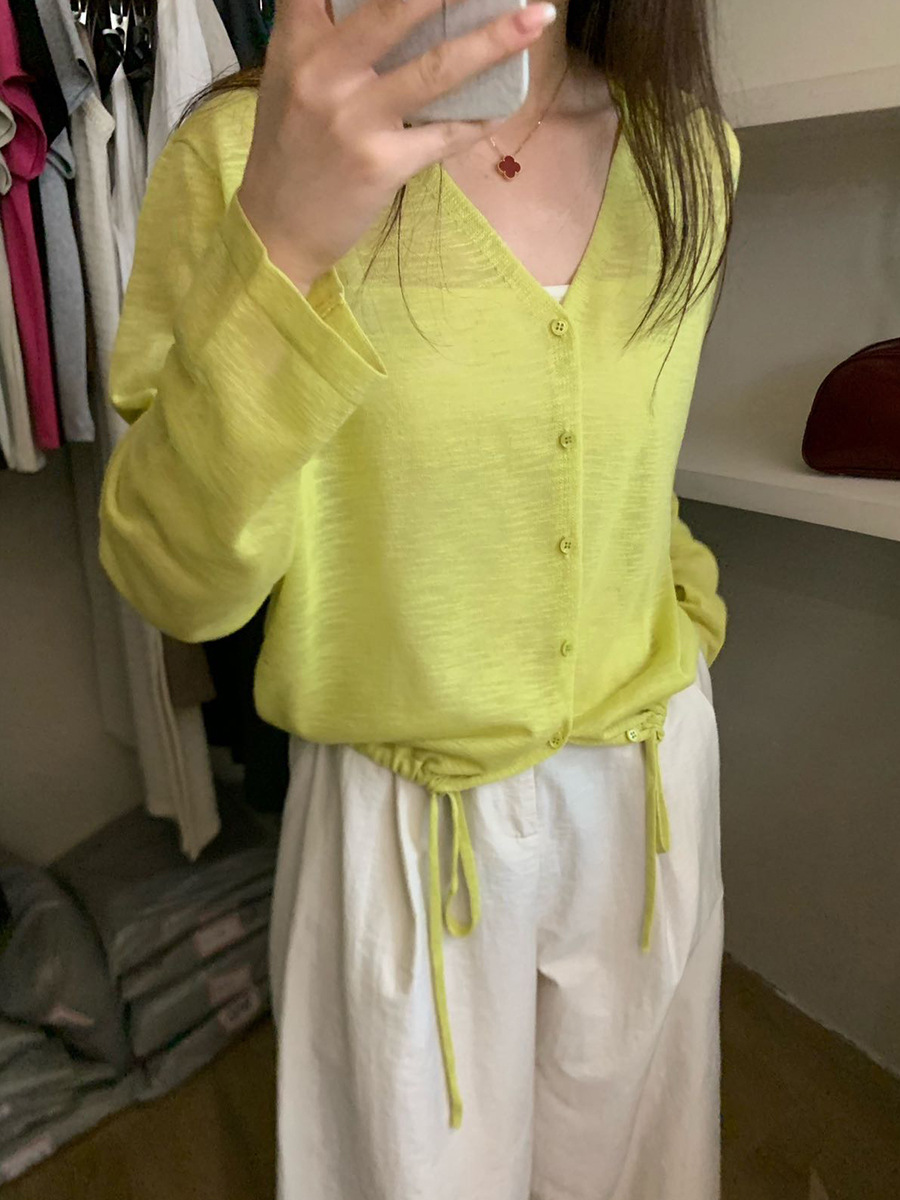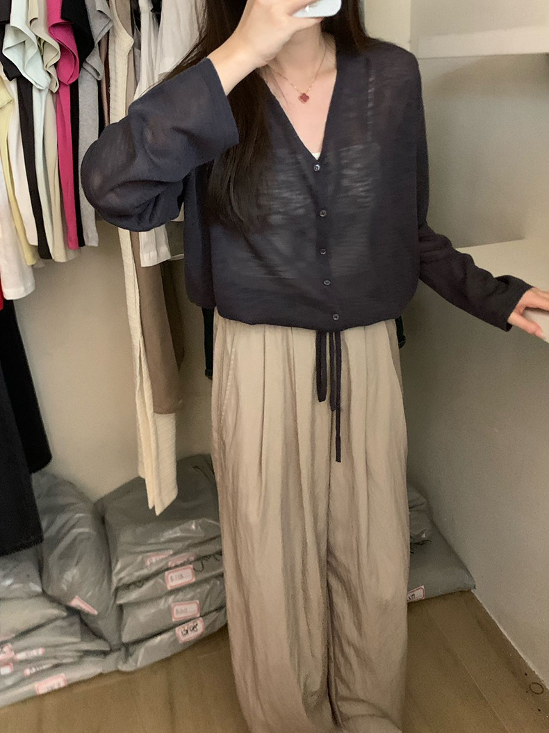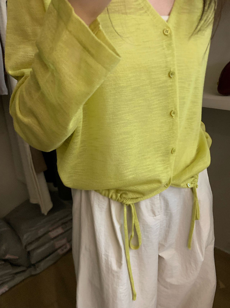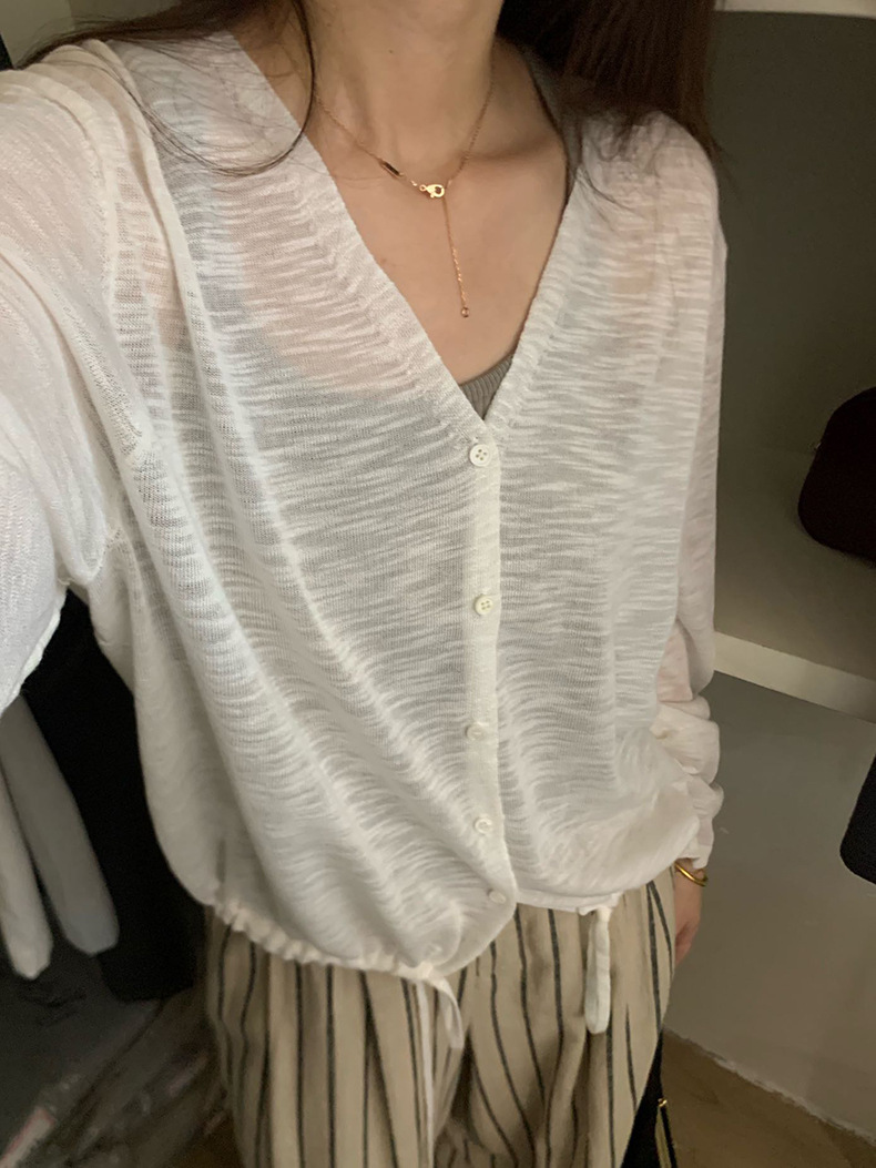 2025夏季新款休闲抽绳V领防晒衫薄款开衫上衣女A4265