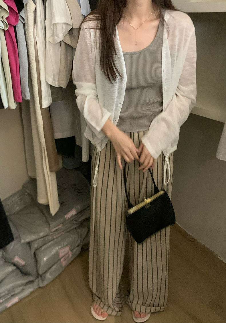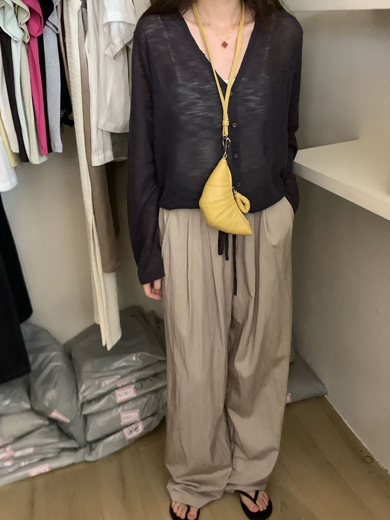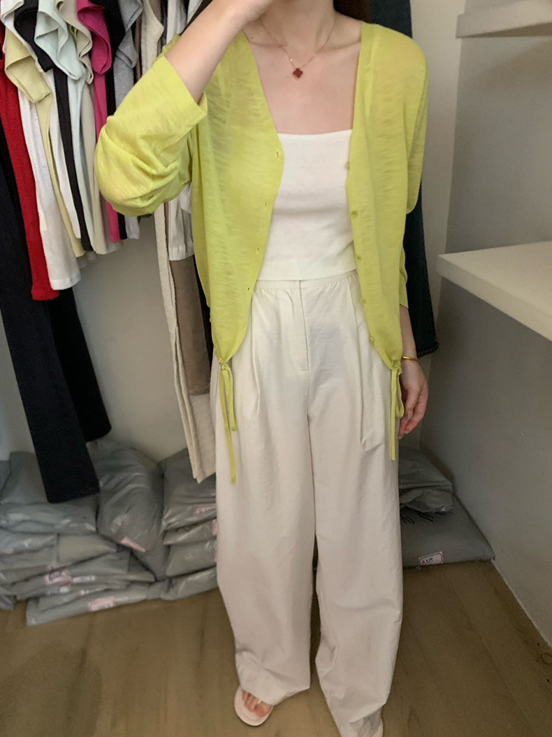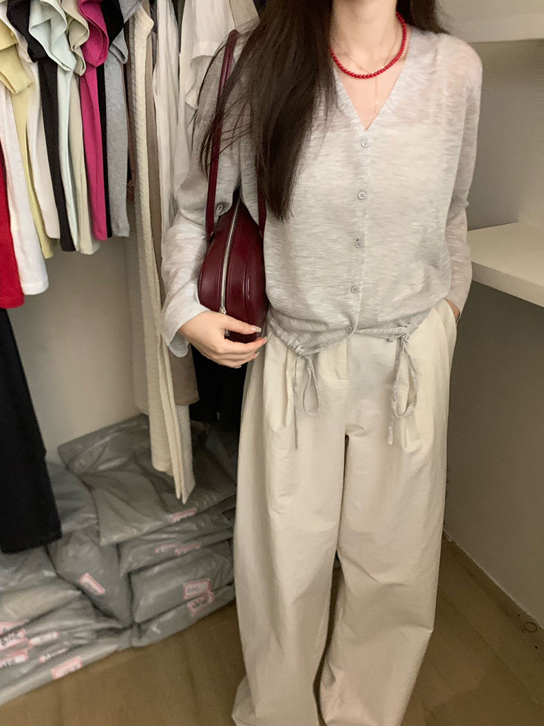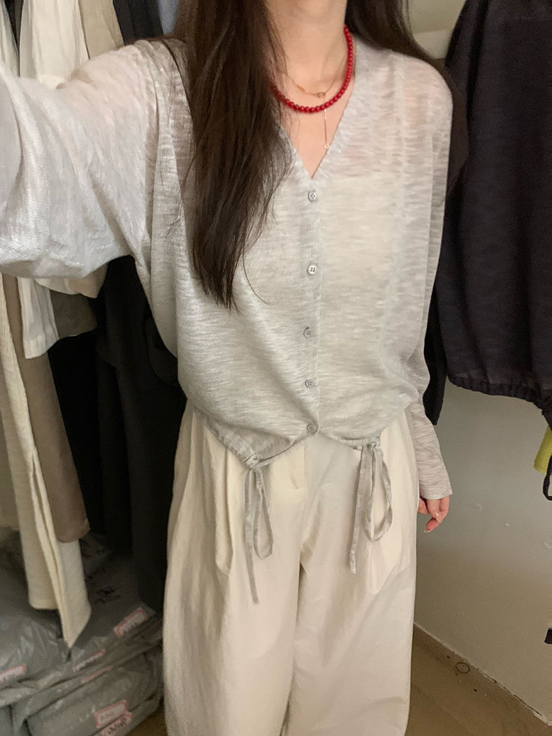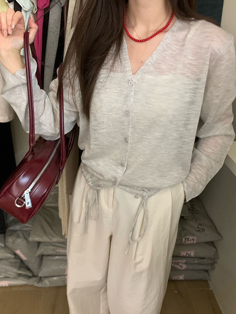 2025夏季新款休闲抽绳V领防晒衫薄款开衫上衣女A4265