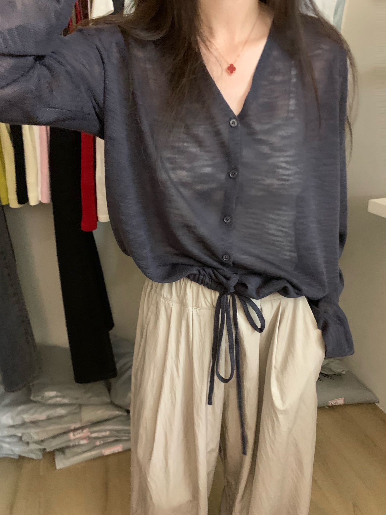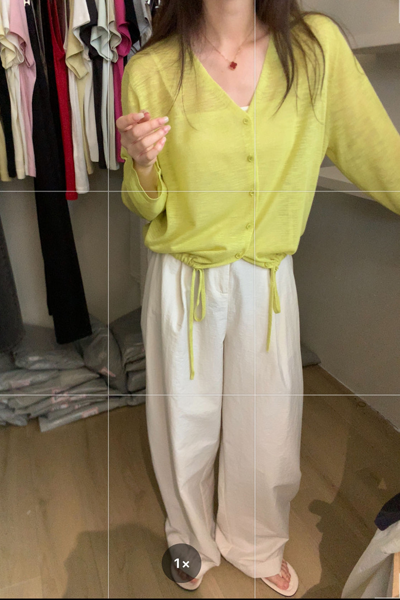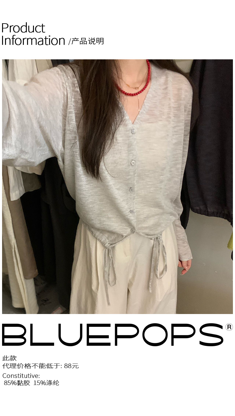 2025夏季新款休闲抽绳V领防晒衫薄款开衫上衣女A4265 投诉
