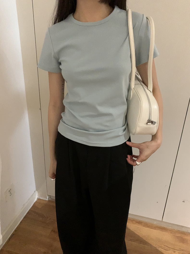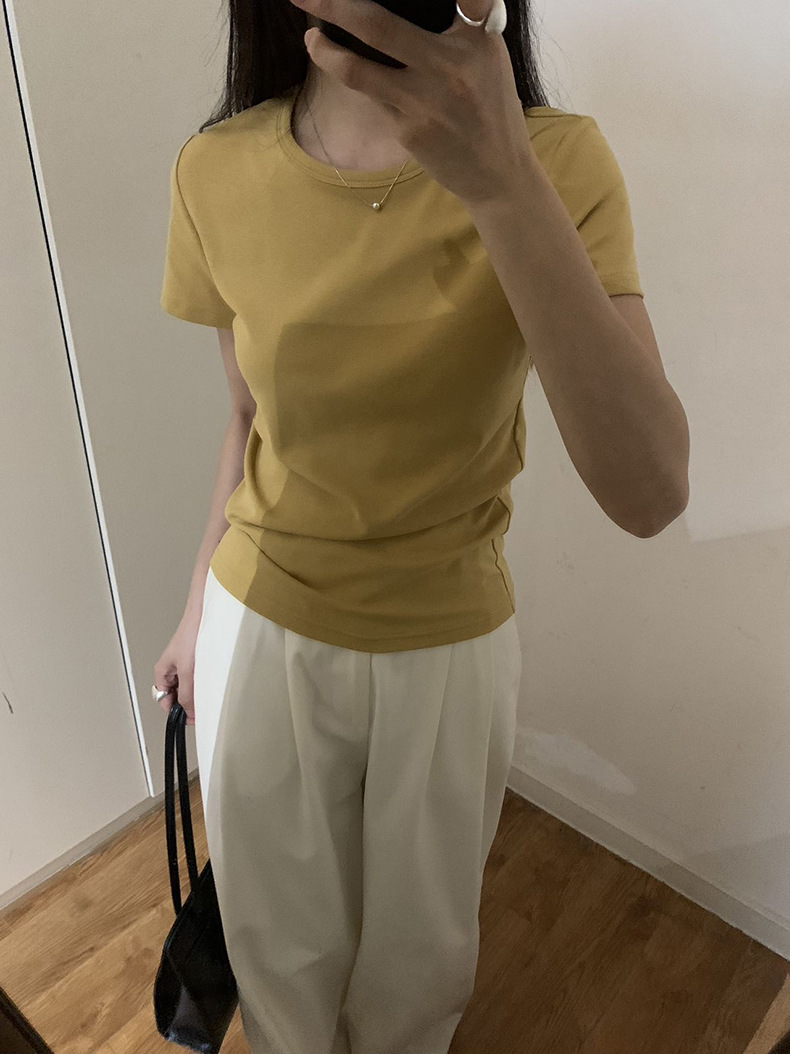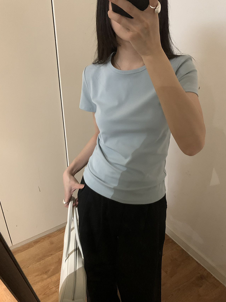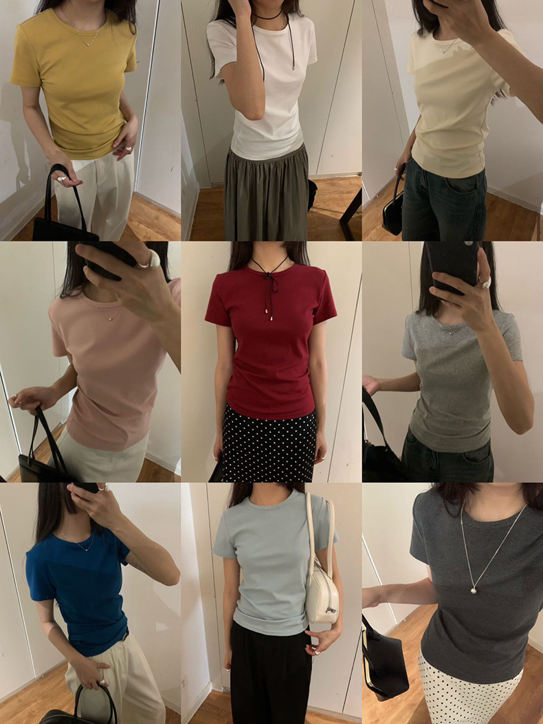 【13色可选】2025夏季新款简约百搭修身短袖T恤圆领基础上衣W0647 投诉