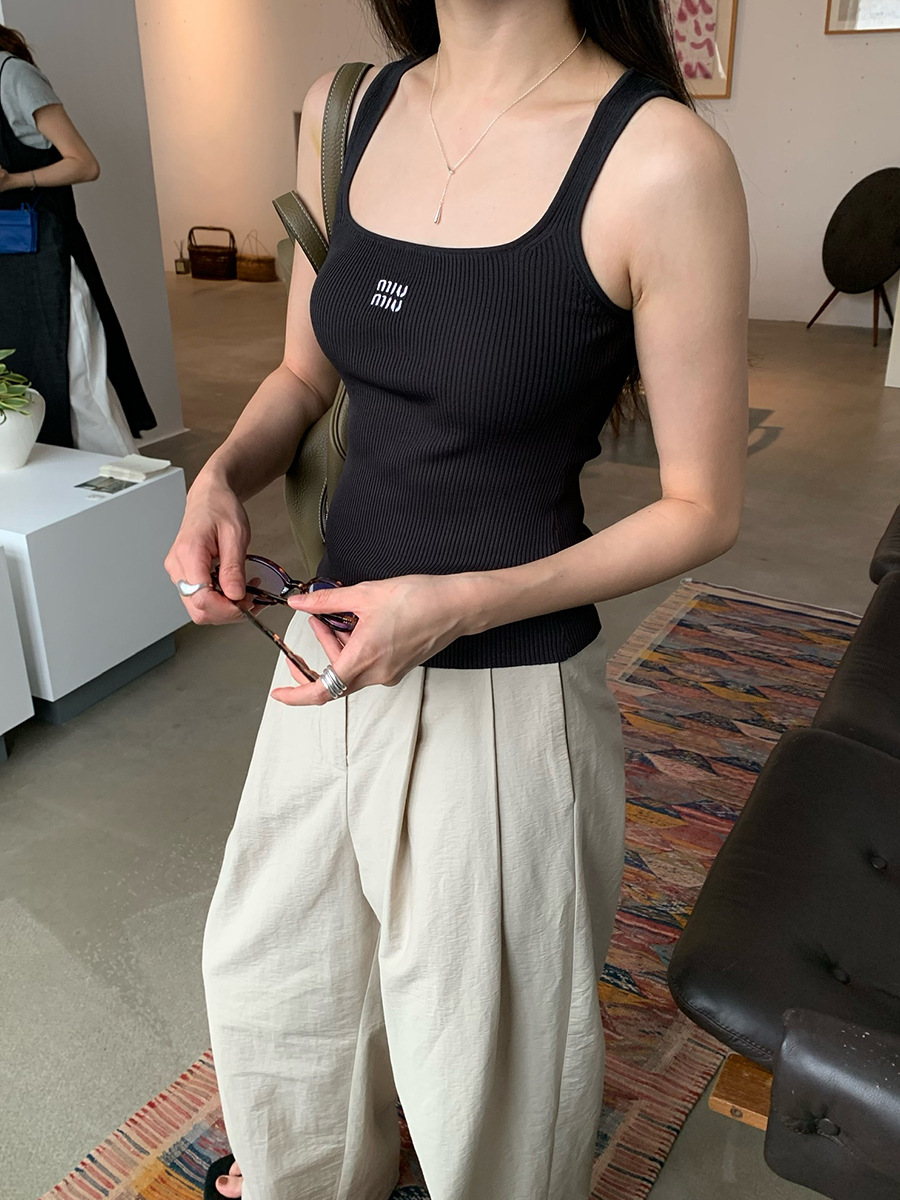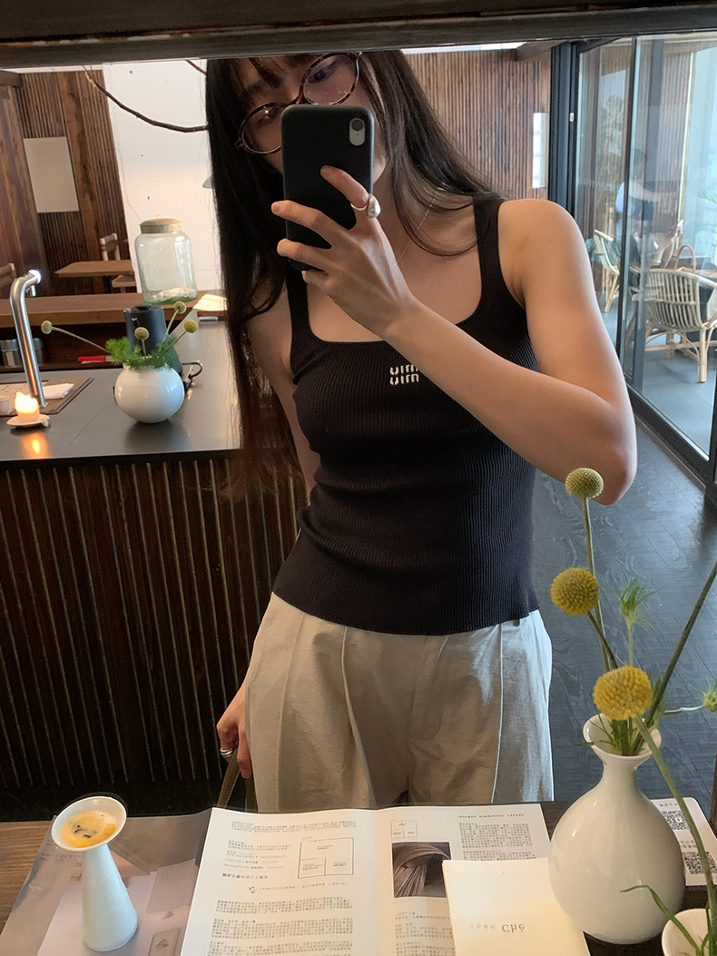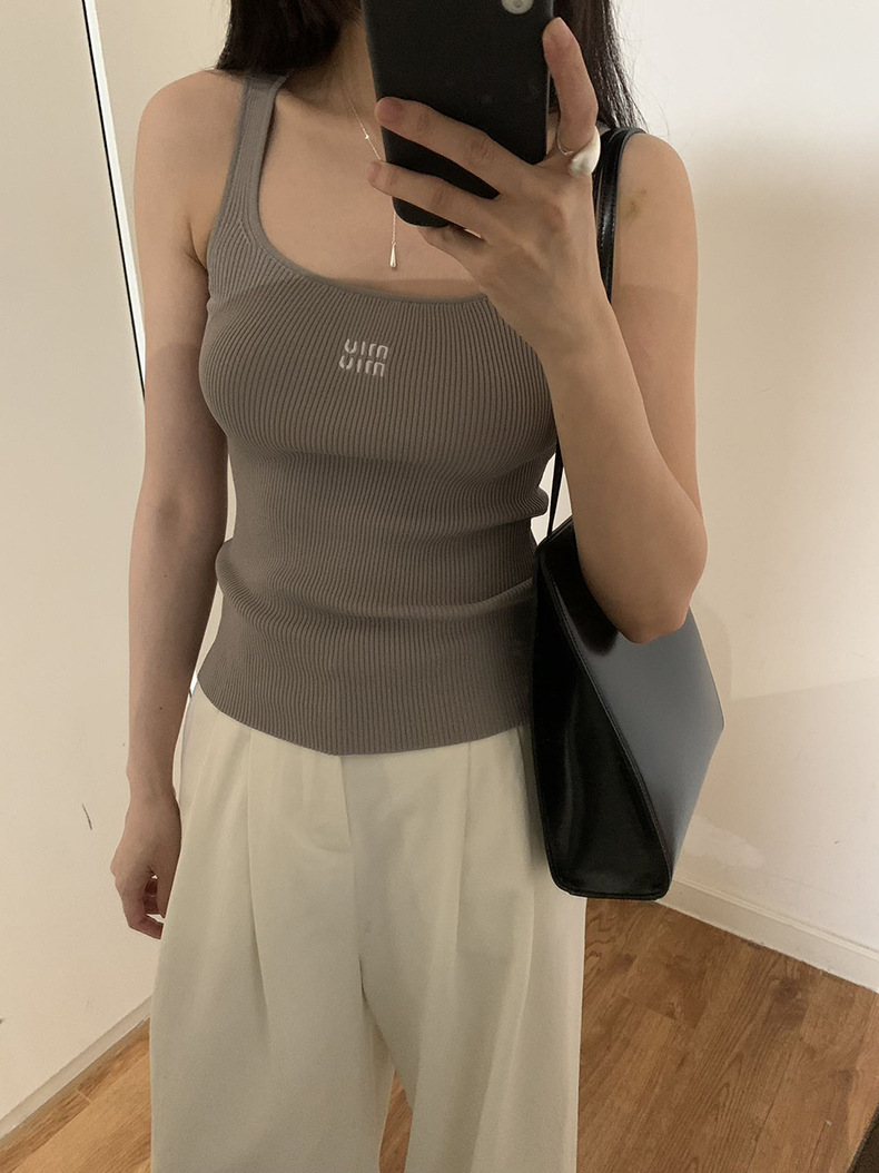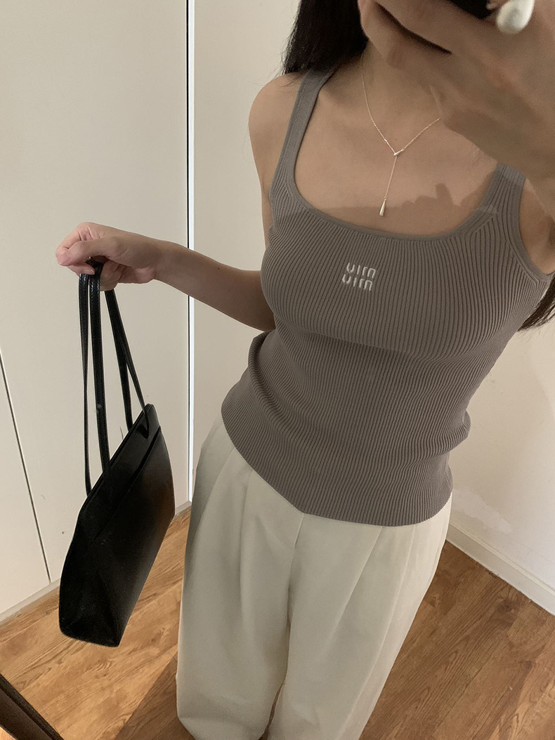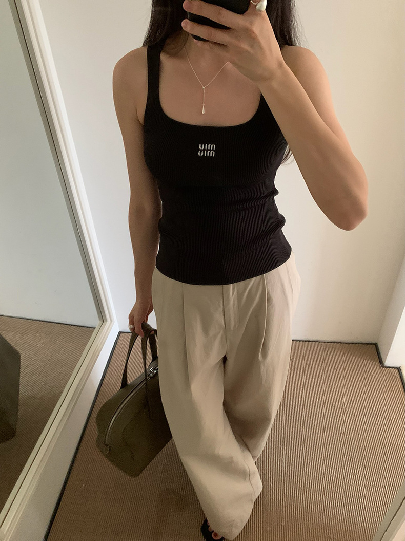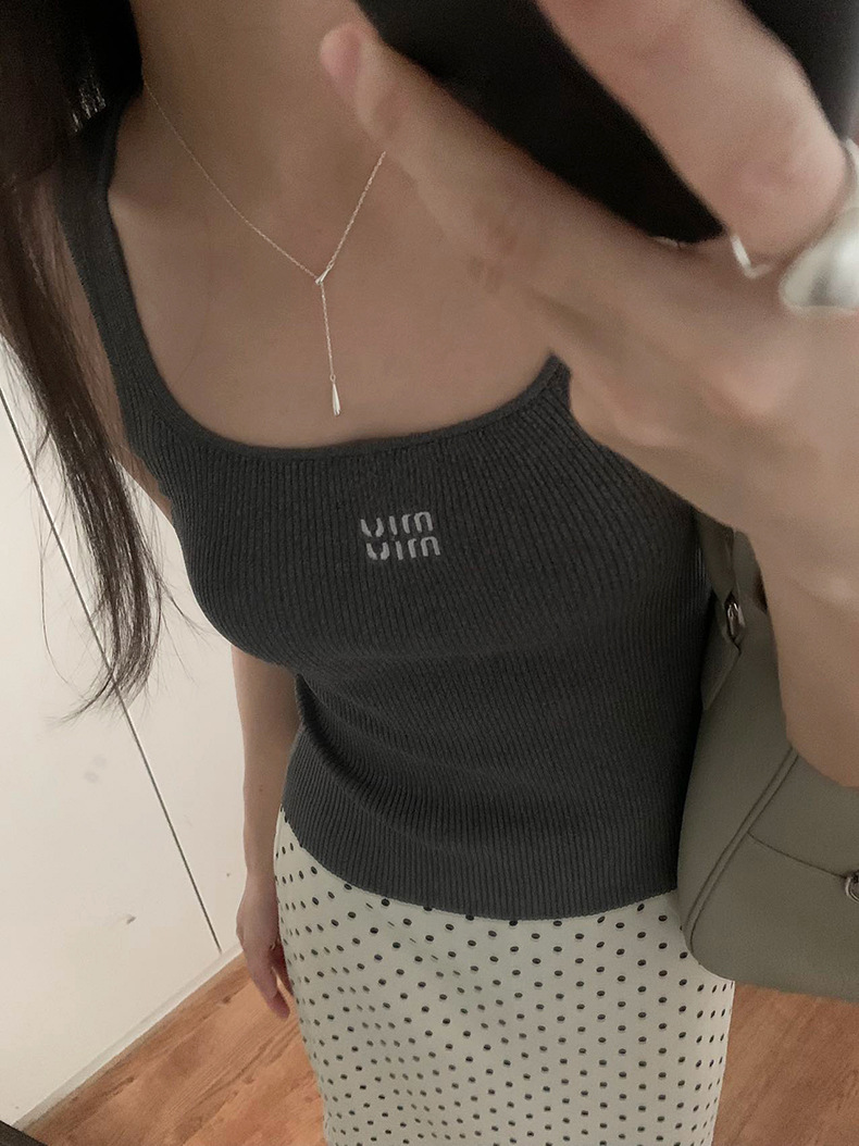 2025夏季新款刺绣字母吊带背心修身无袖上衣女A4243