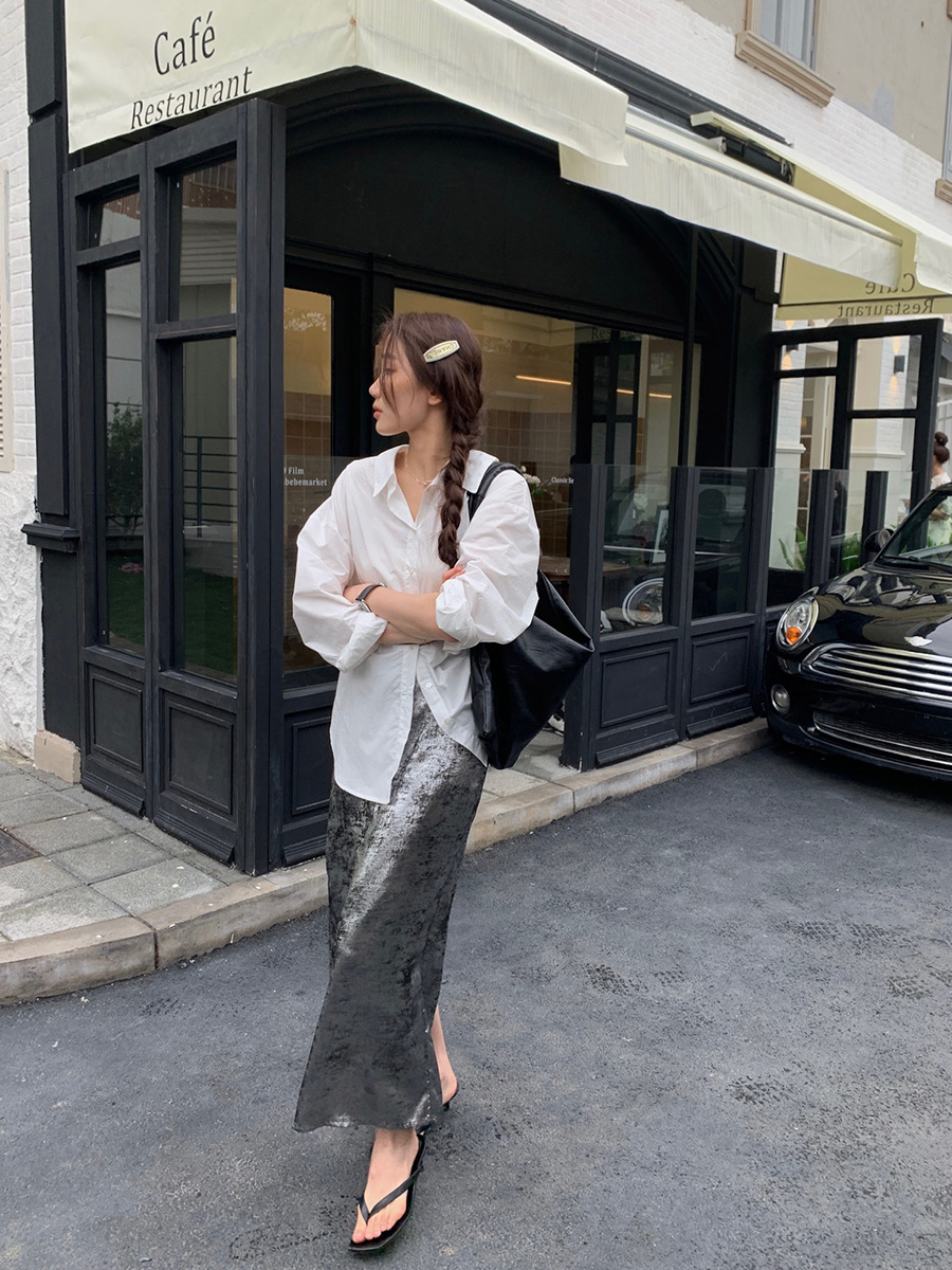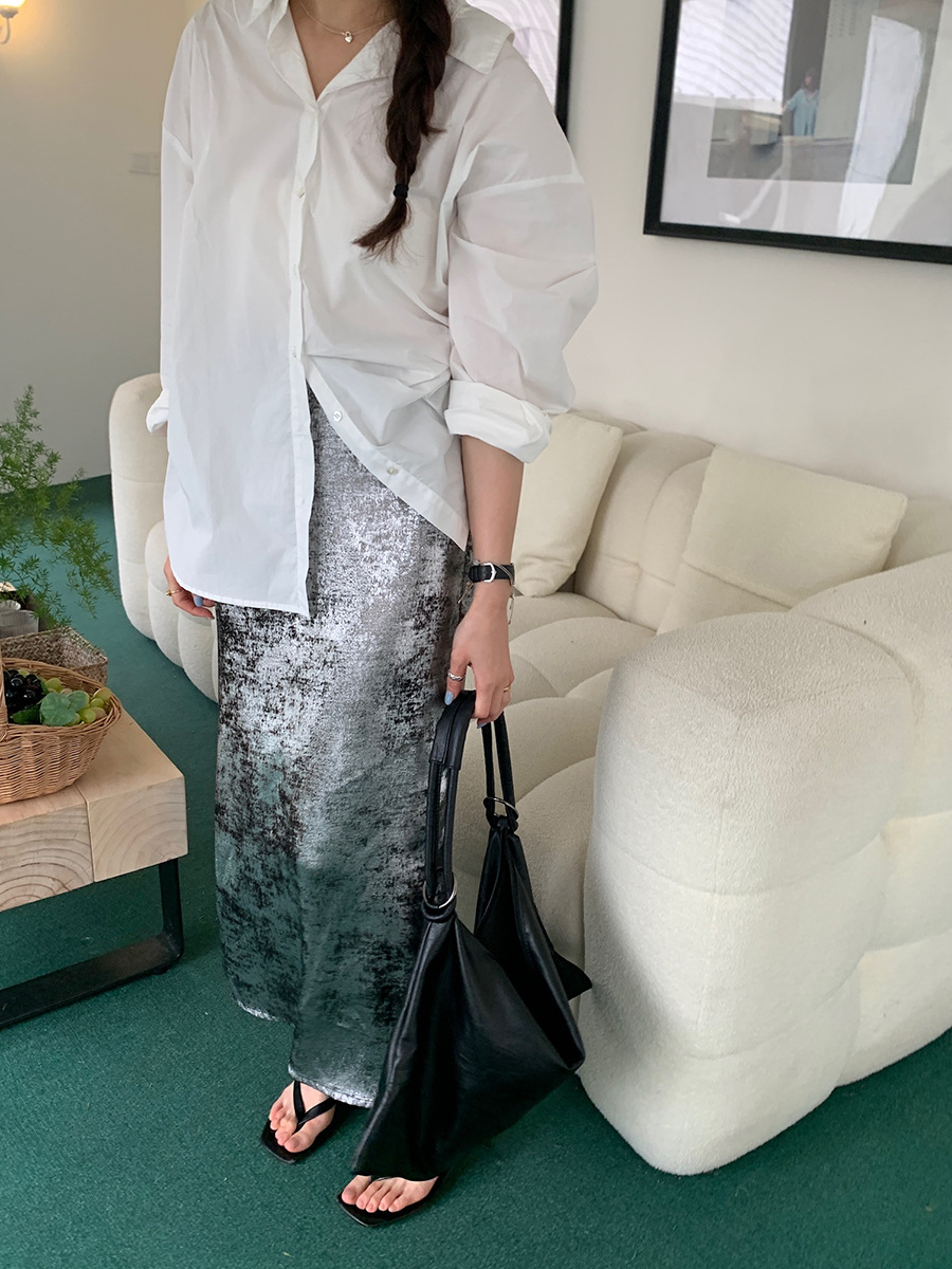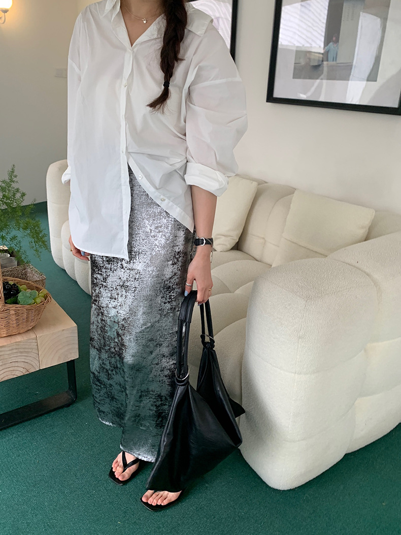 2025新款银色亮丝松紧腰半裙韩版缎面裙子A3323