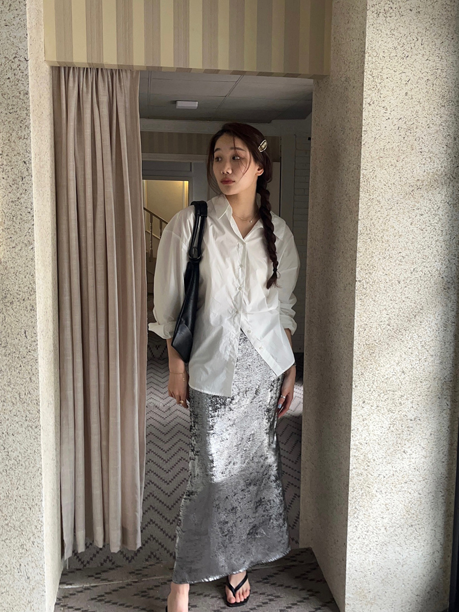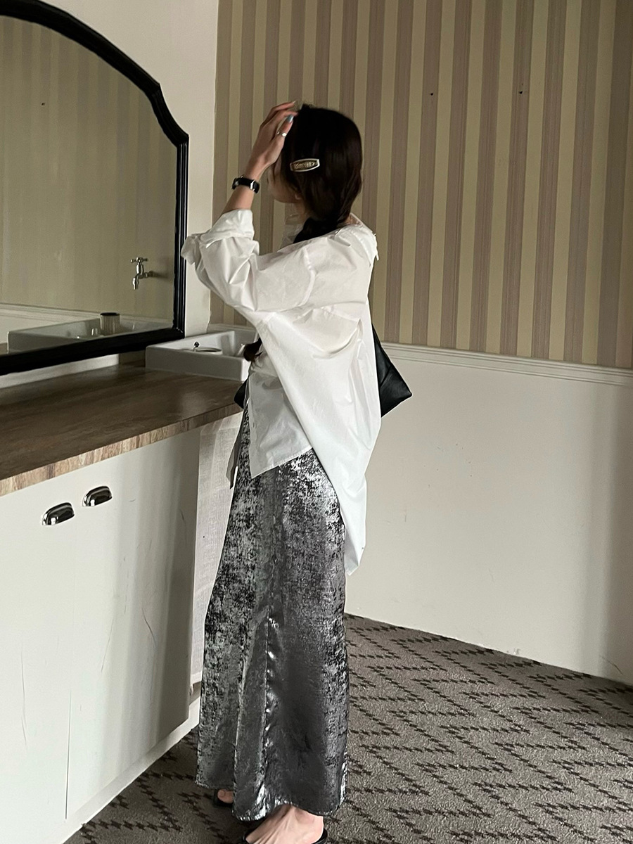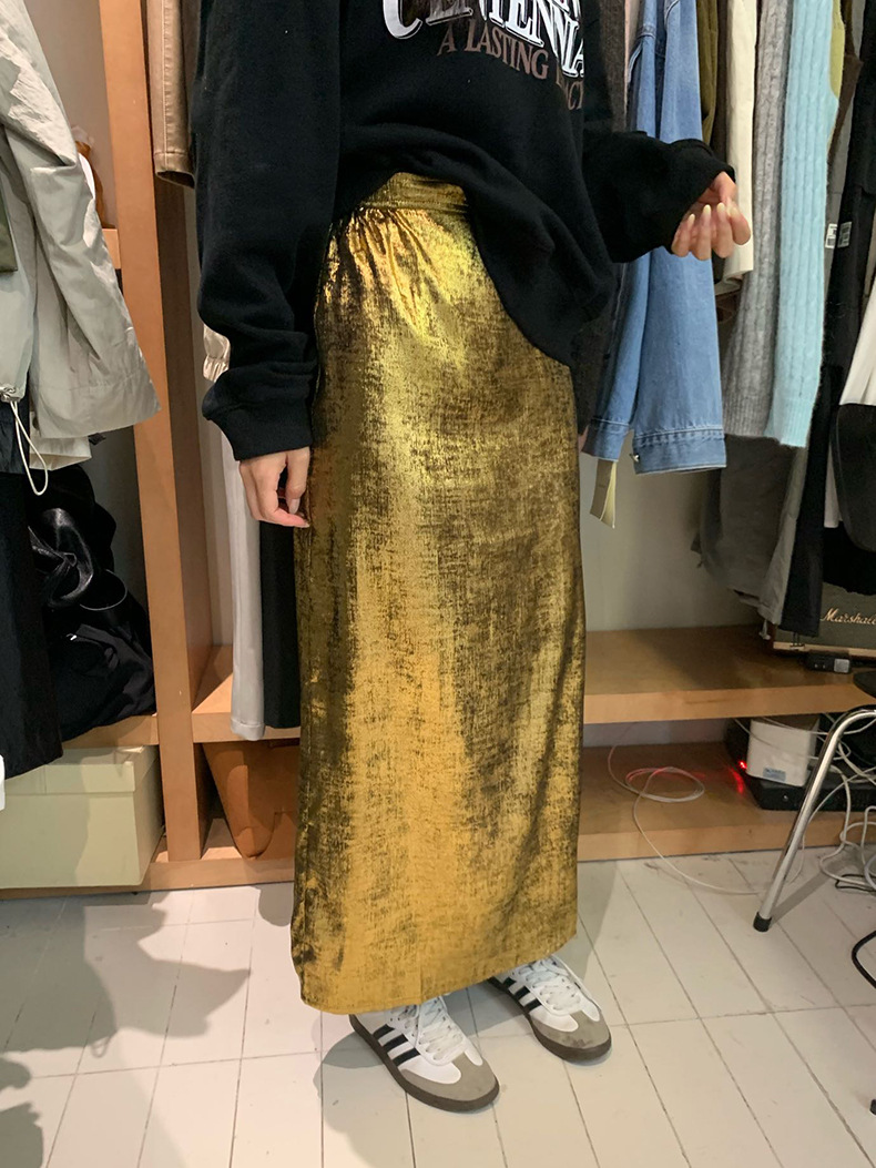 2025新款银色亮丝松紧腰半裙韩版缎面裙子A3323 投诉