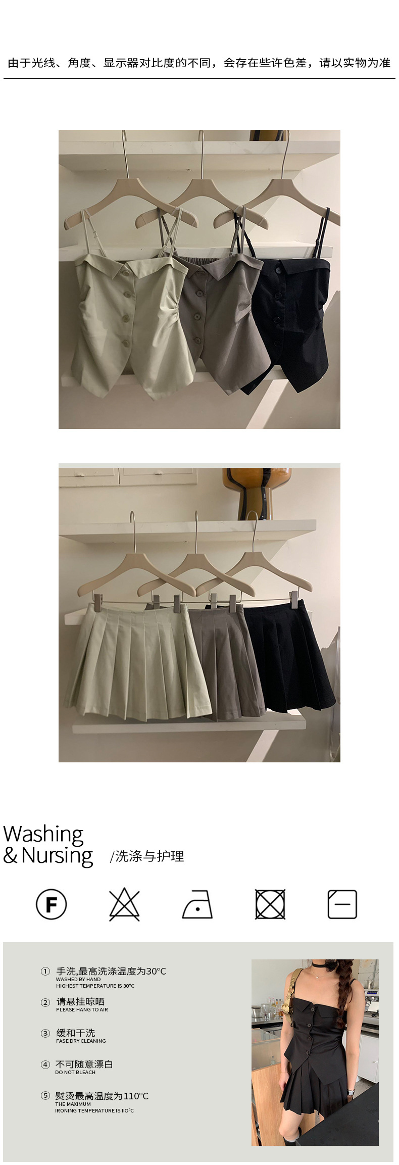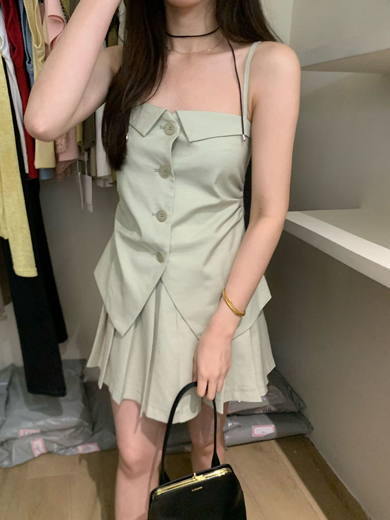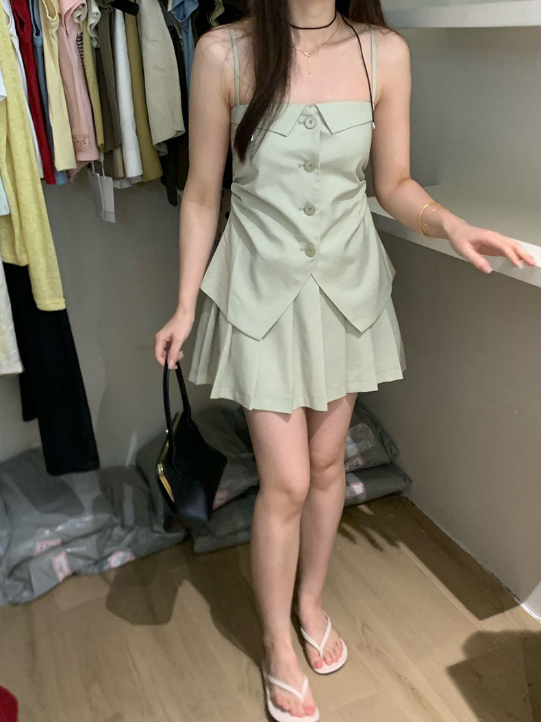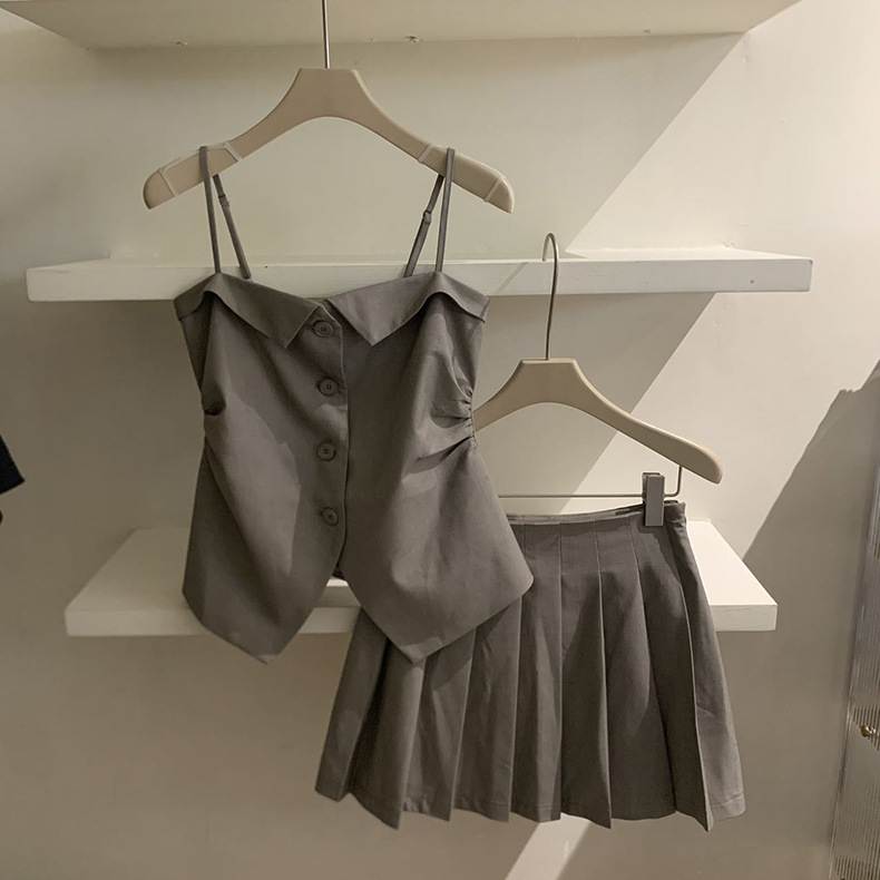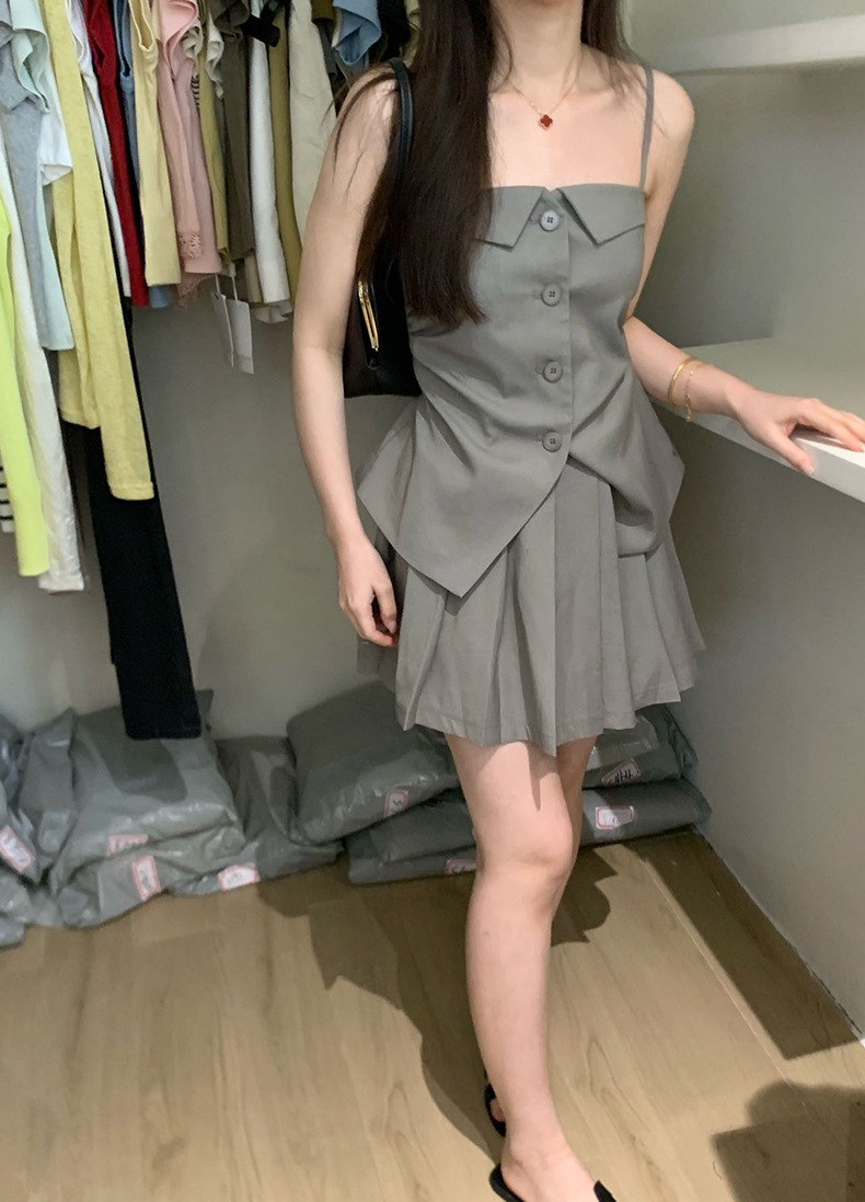 2025夏季设计感辣妹吊带+百褶短裙套装A3440+A3441 投诉