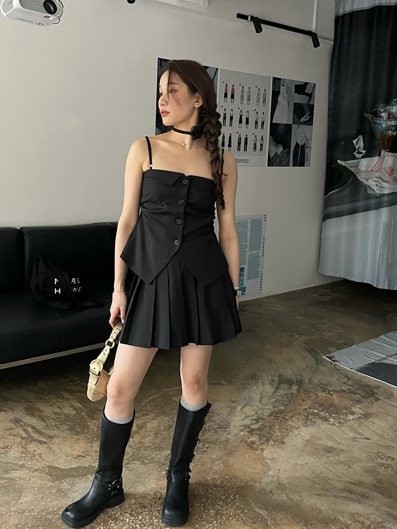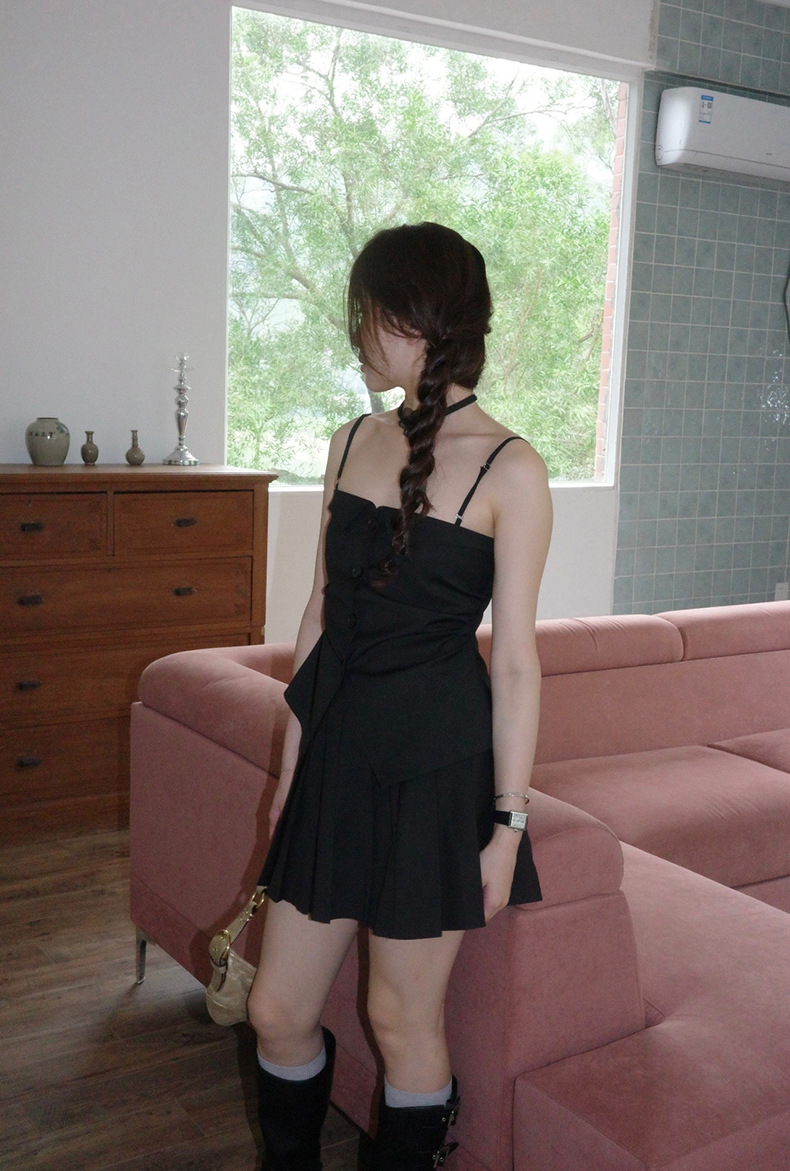 2025夏季设计感辣妹吊带+百褶短裙套装A3440+A3441