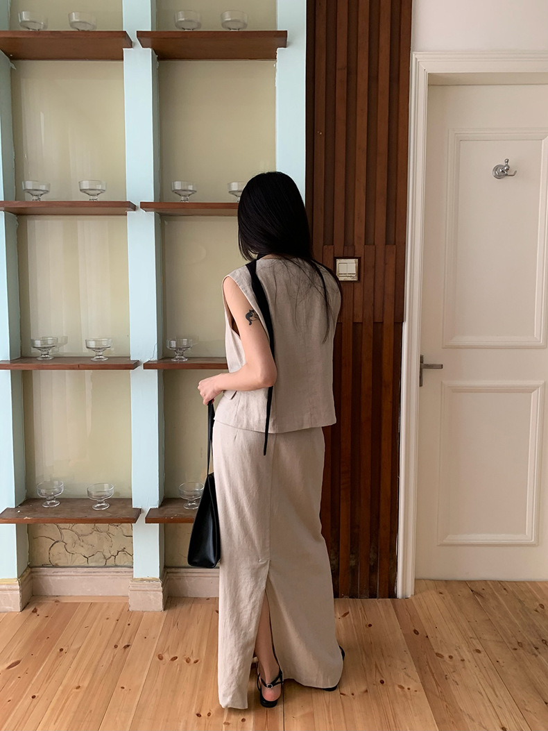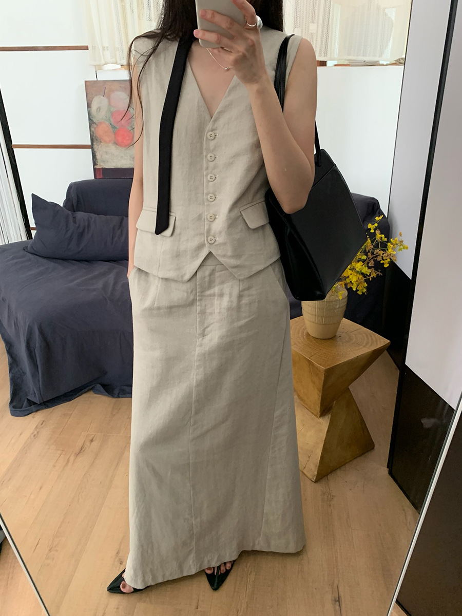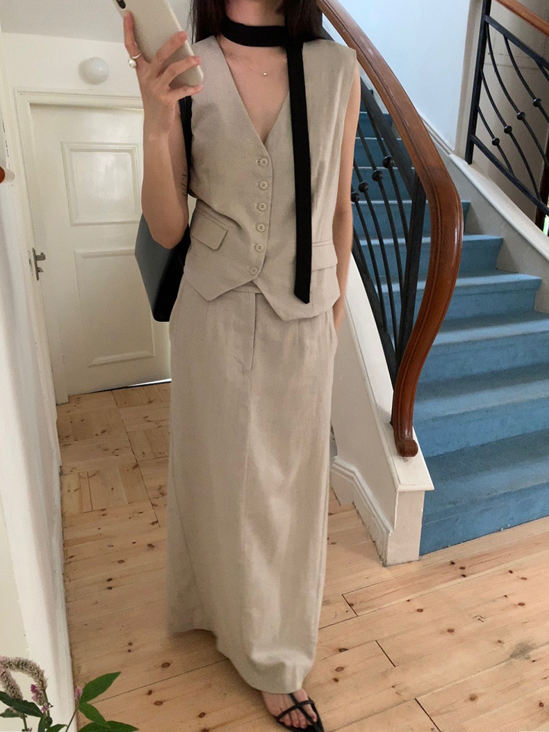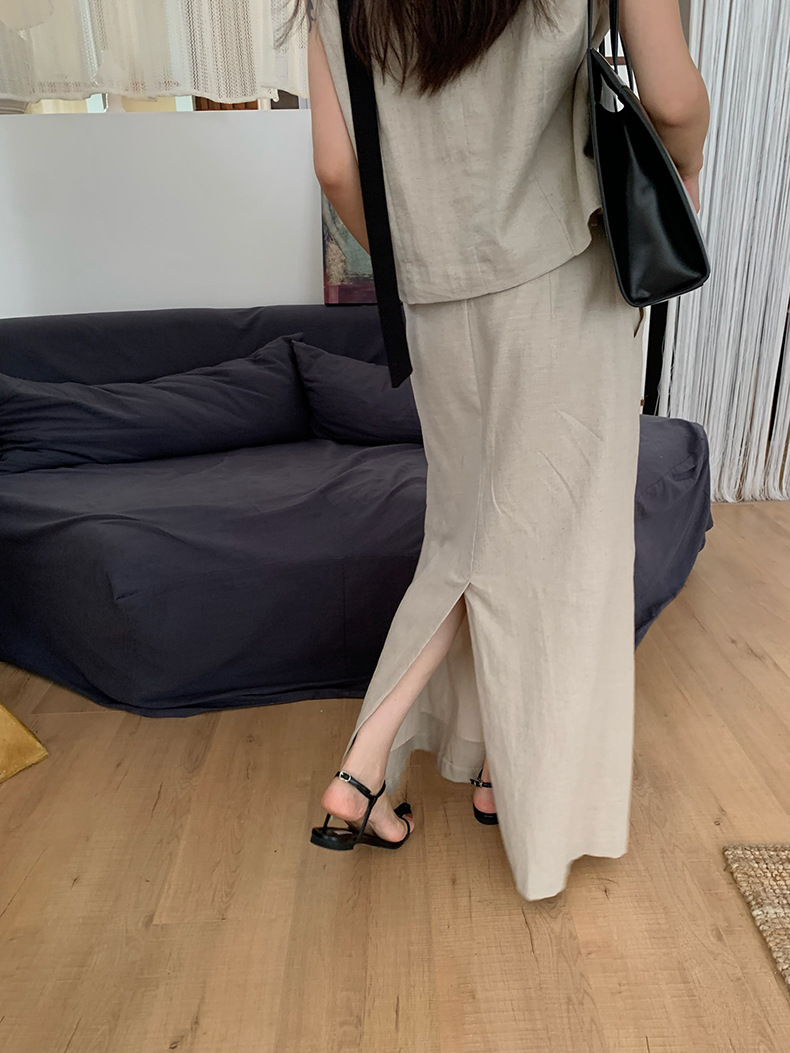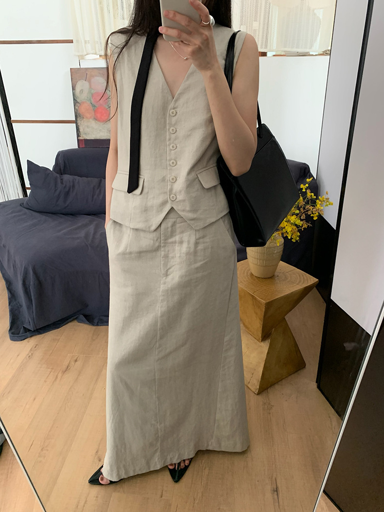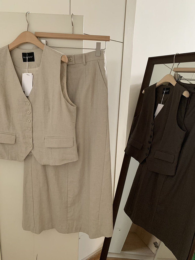 2025夏季新款休闲棉麻套装马甲半身裙女A4208+A4209