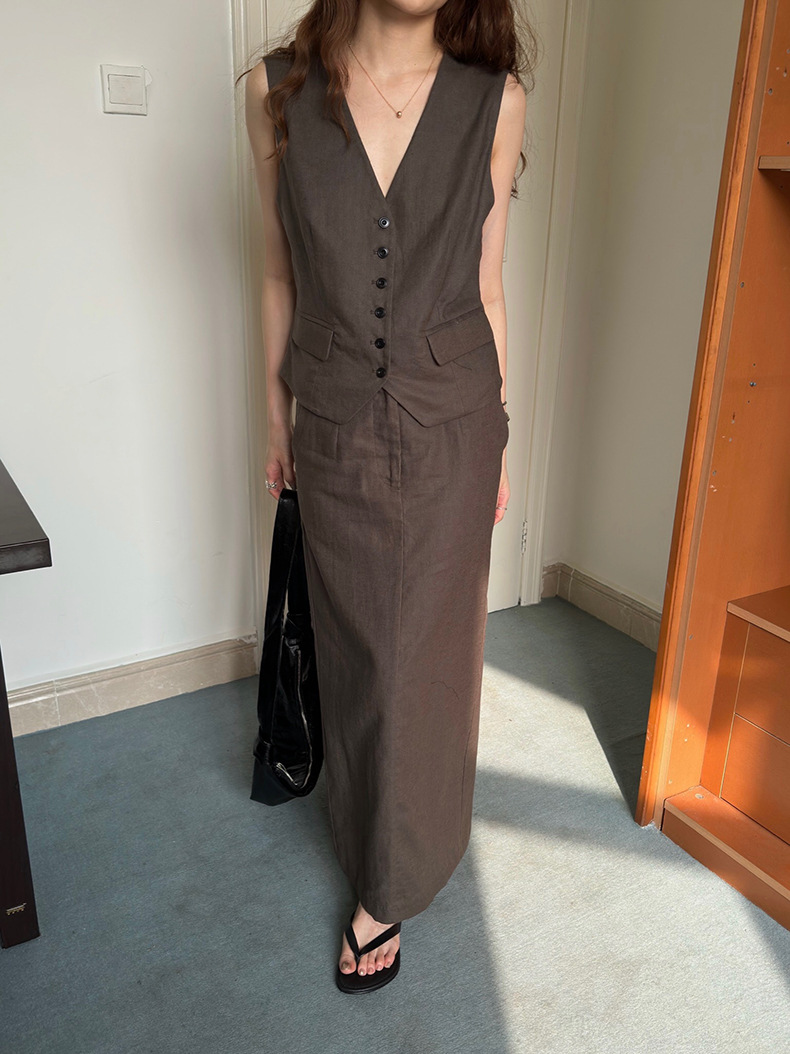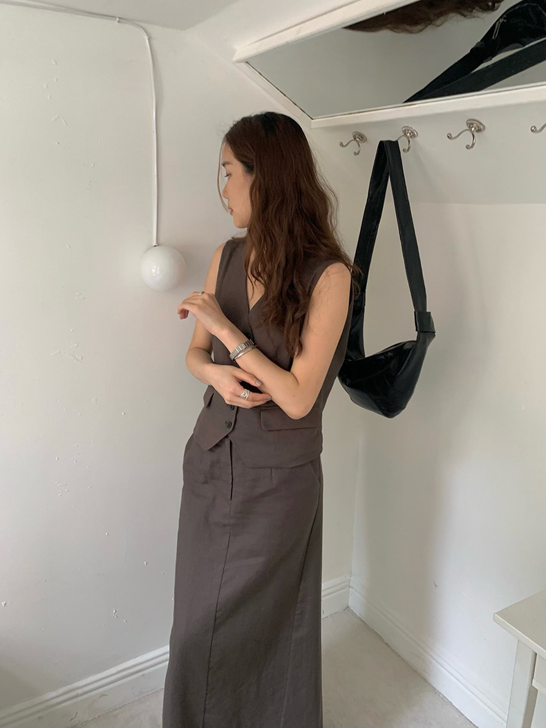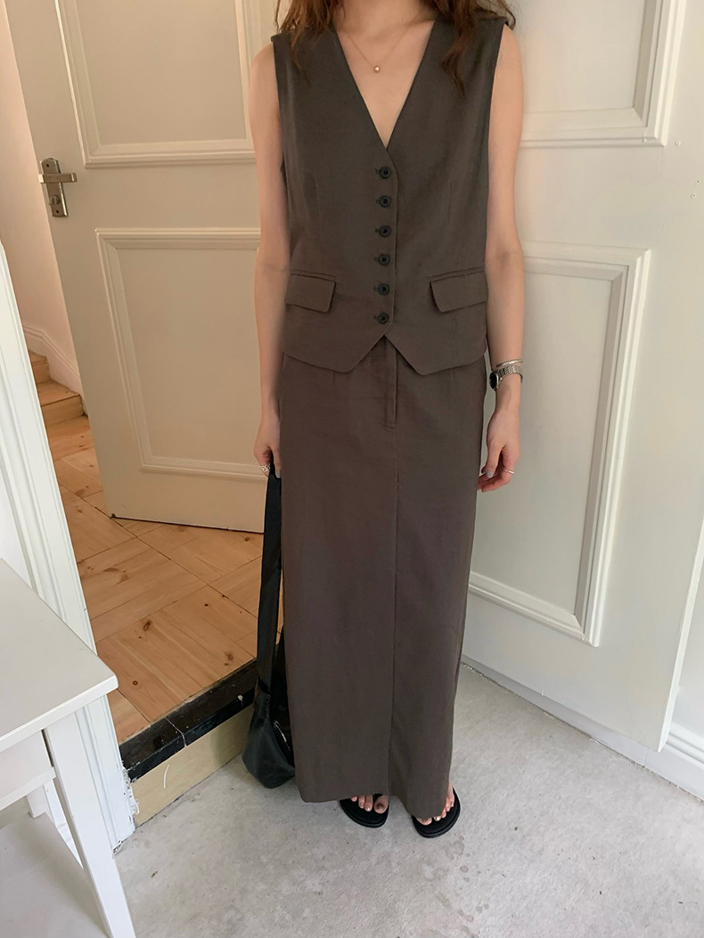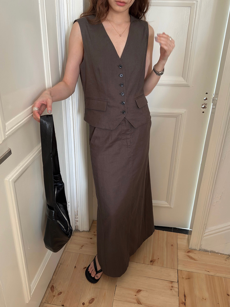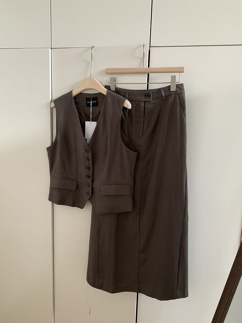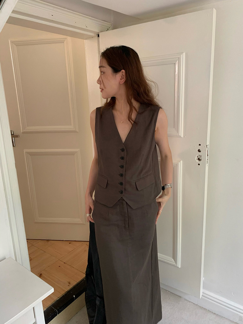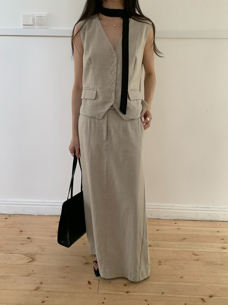 2025夏季新款休闲棉麻套装马甲半身裙女A4208+A4209