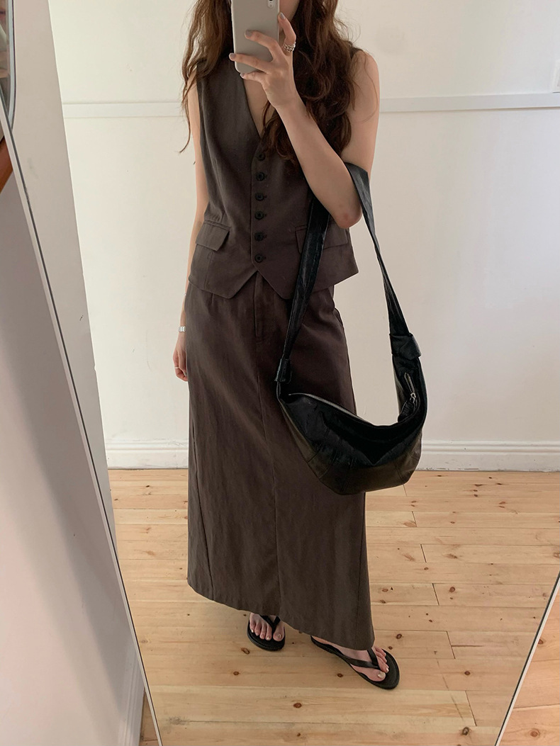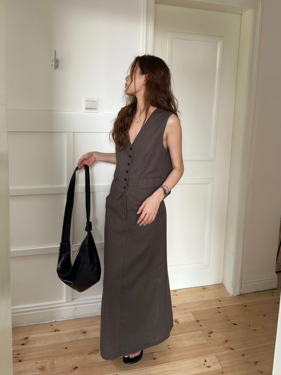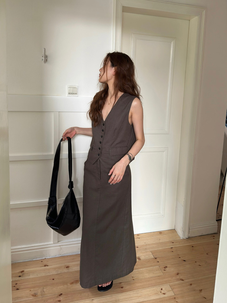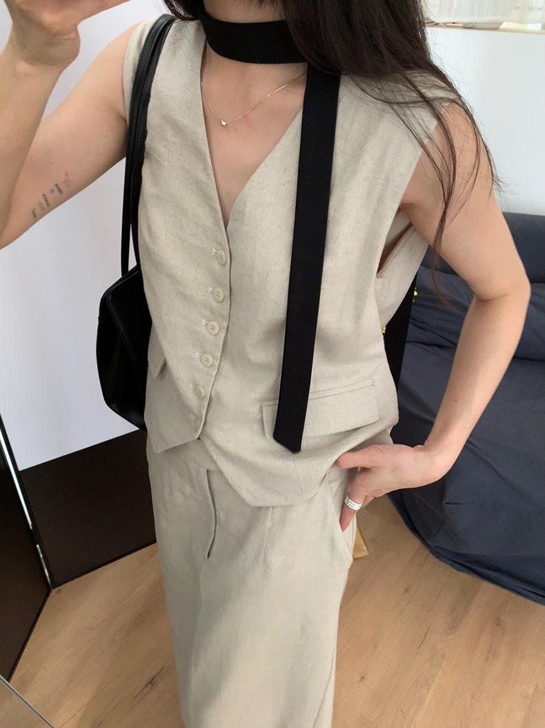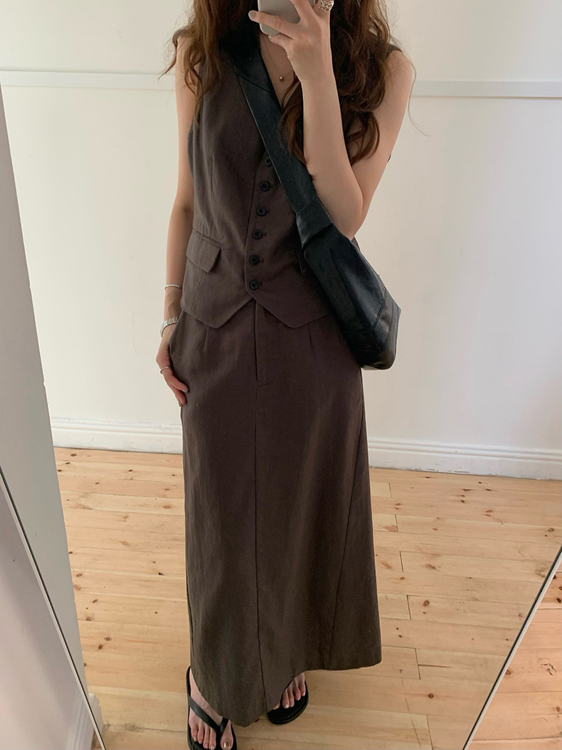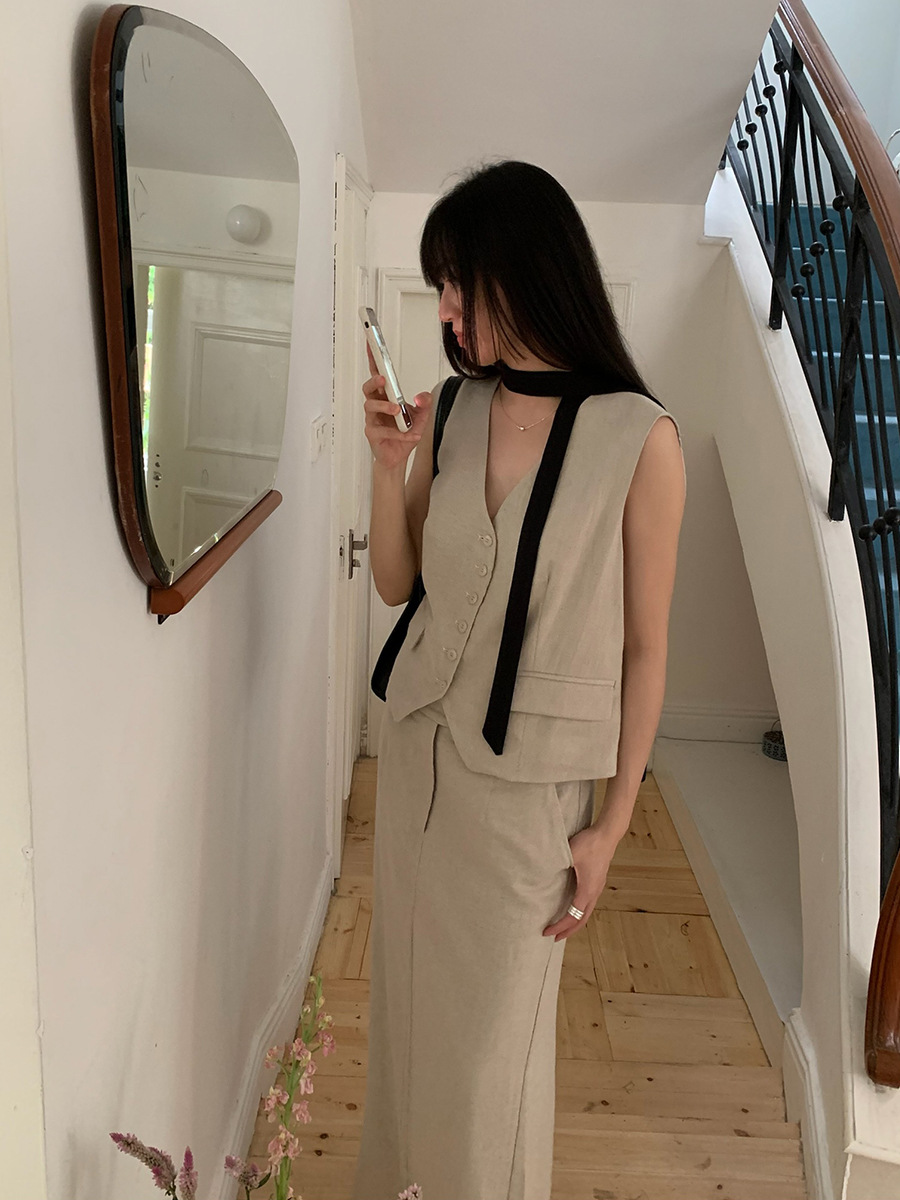 2025夏季新款休闲棉麻套装马甲半身裙女A4208+A4209