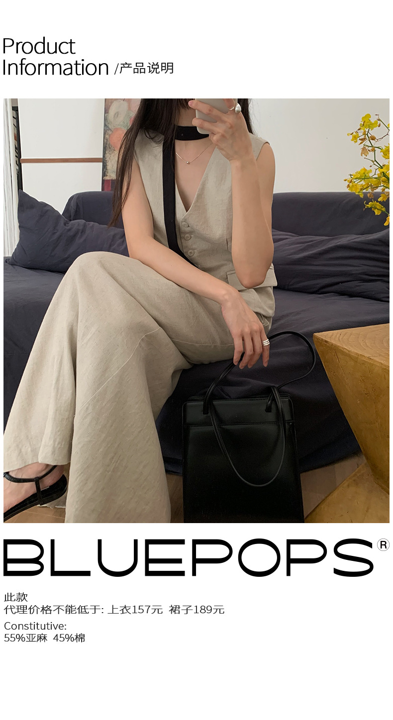 2025夏季新款休闲棉麻套装马甲半身裙女A4208+A4209 投诉