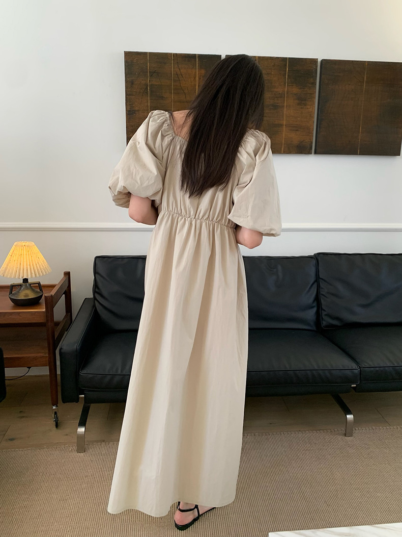 2025夏季新款韩版泡泡袖连衣裙宽松压褶A字长裙W0611 投诉