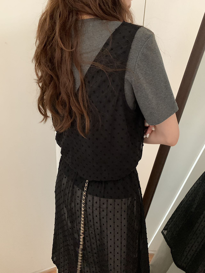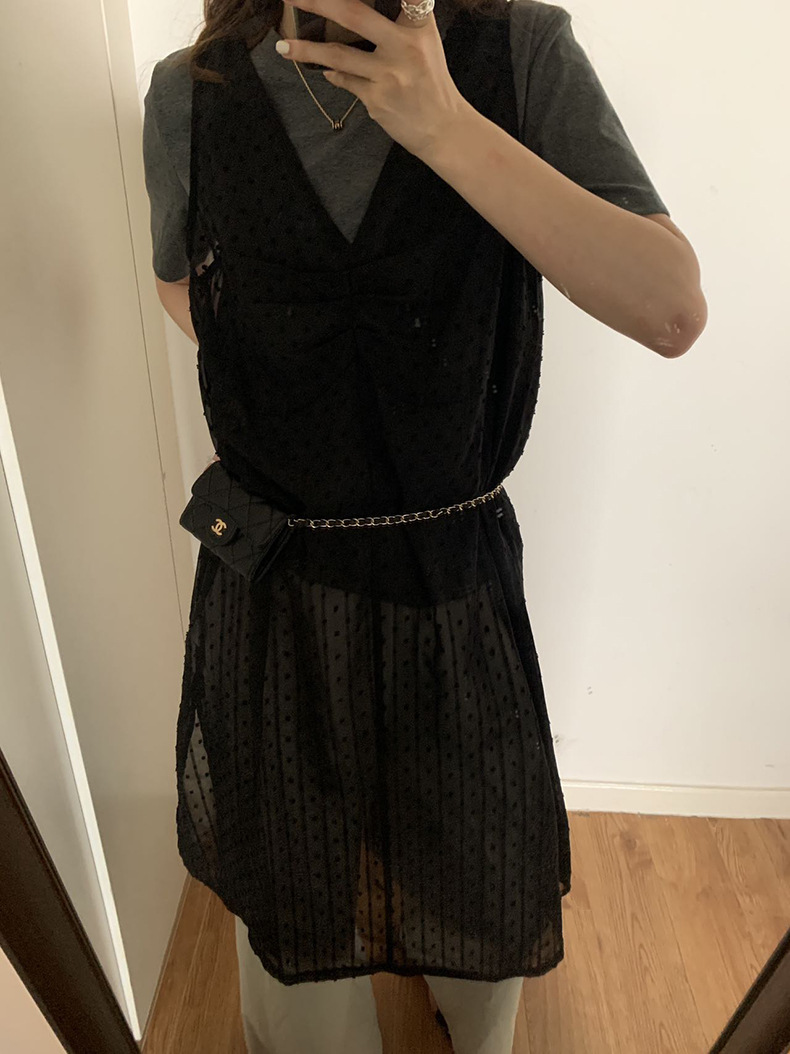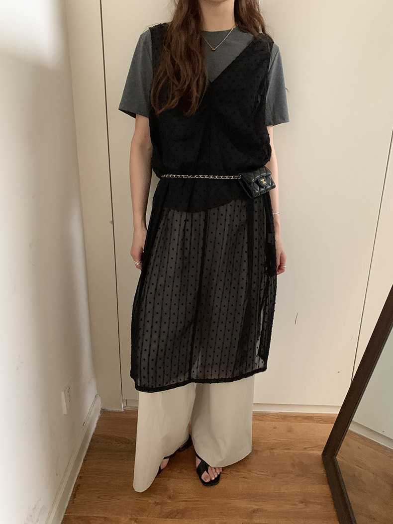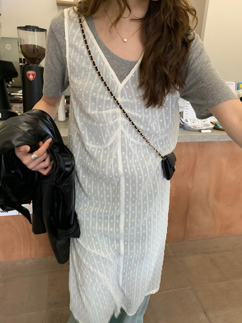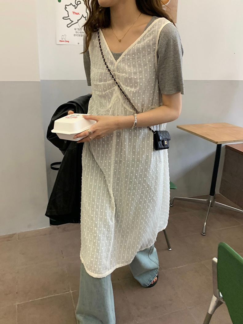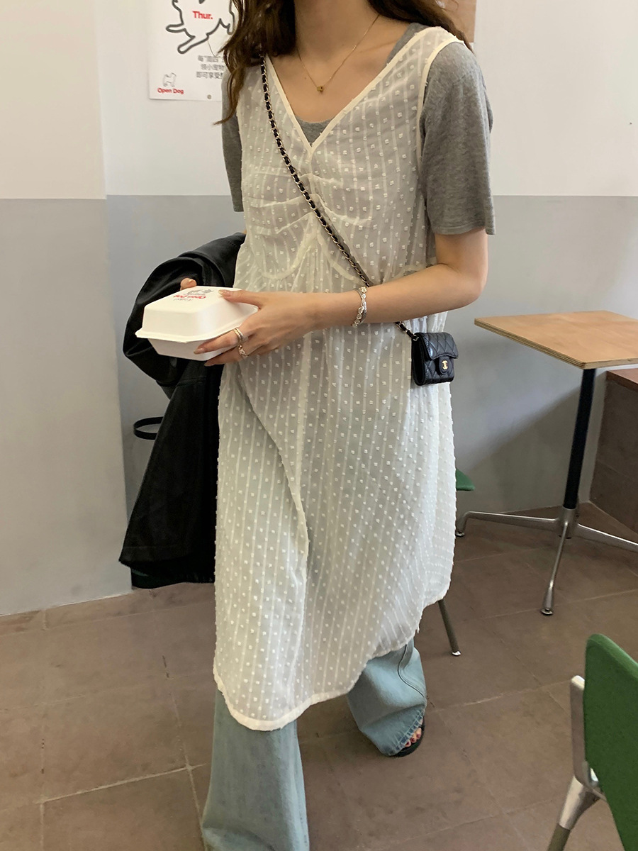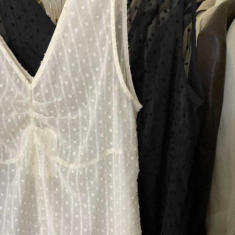 2025夏季新款叠穿罩裙V领微透波点背心连衣裙W0603