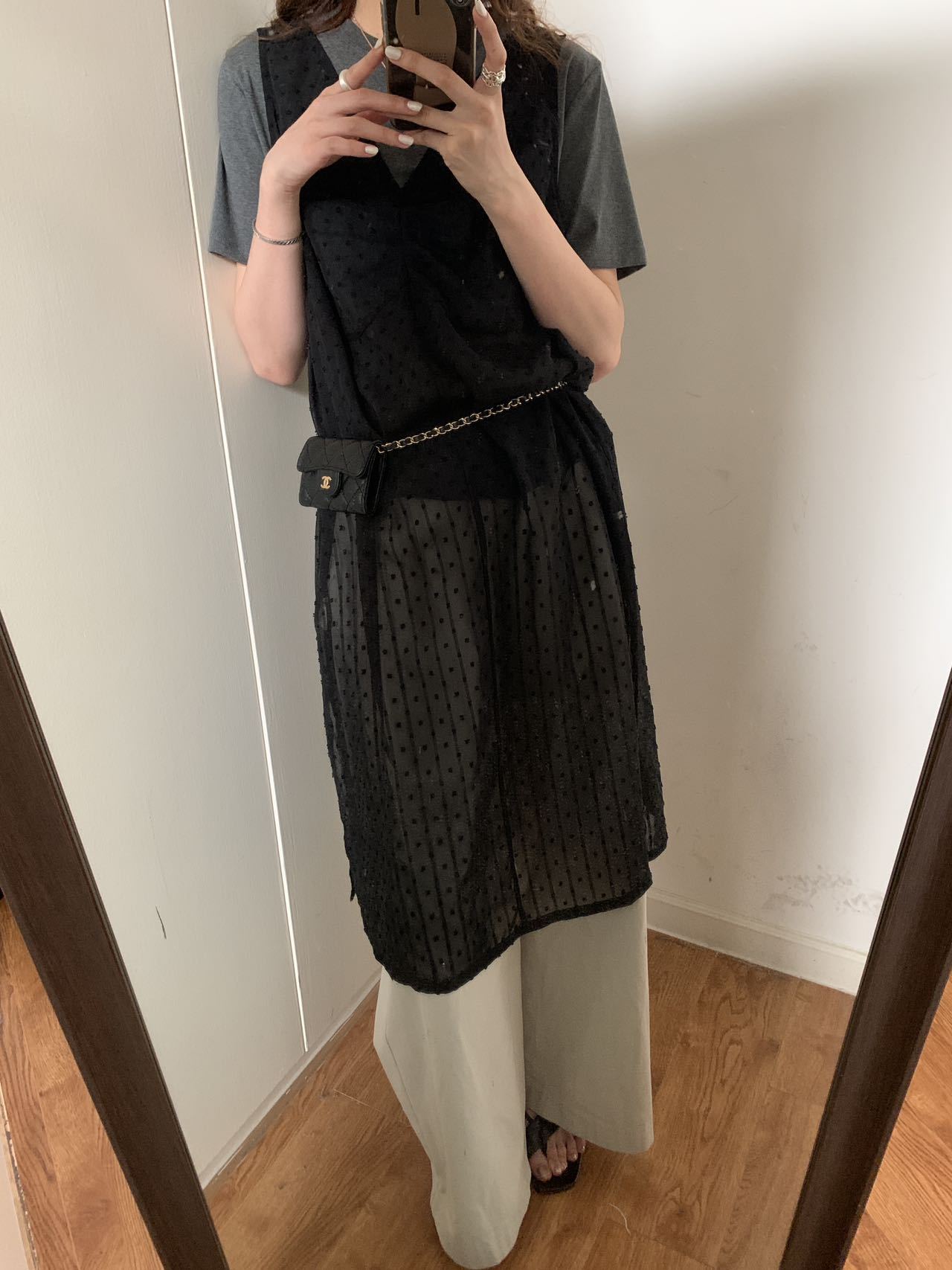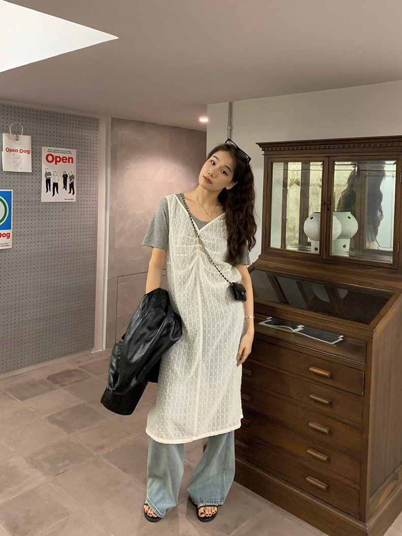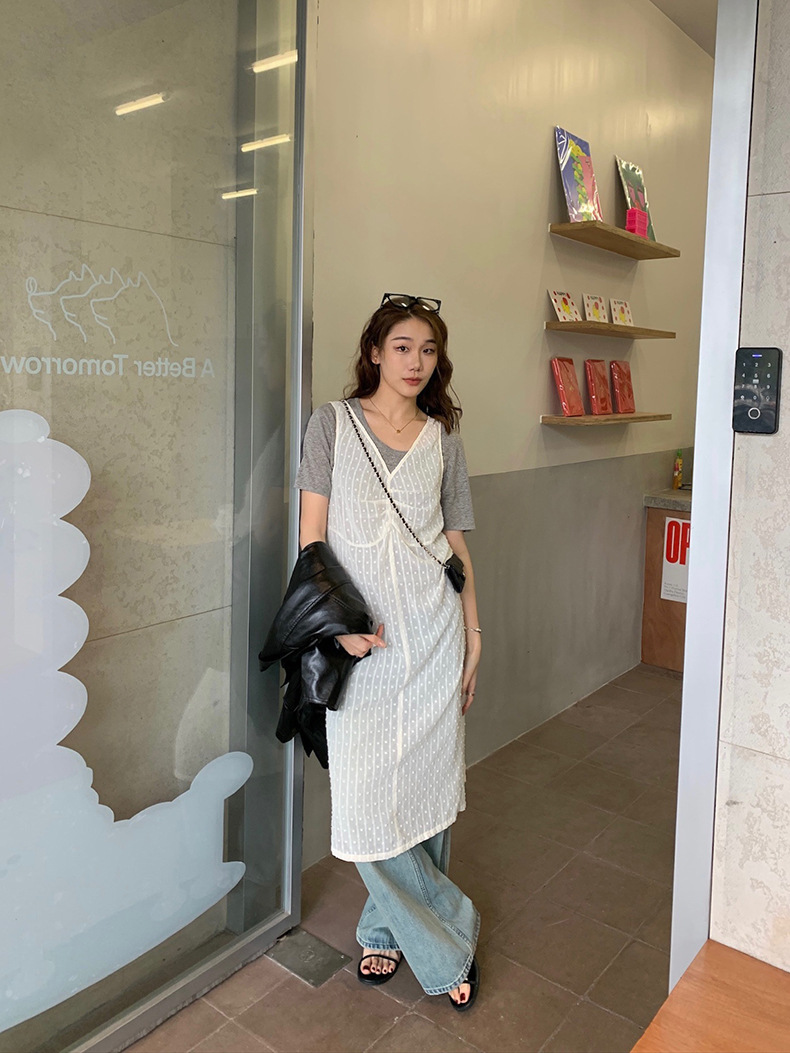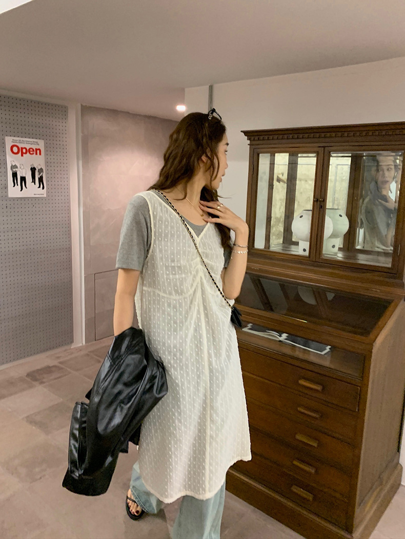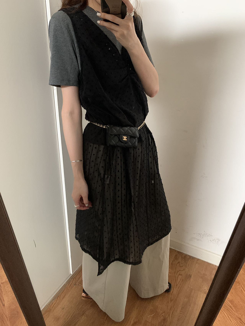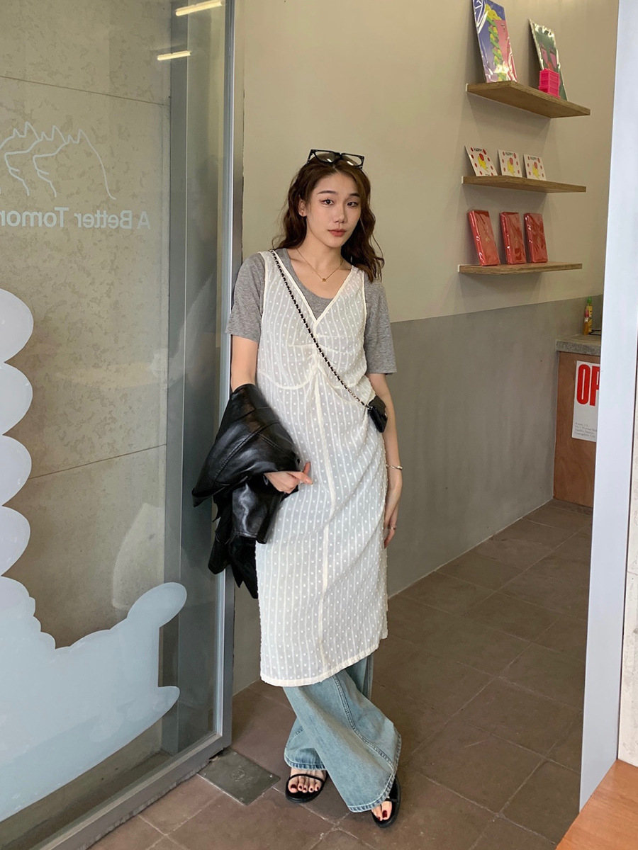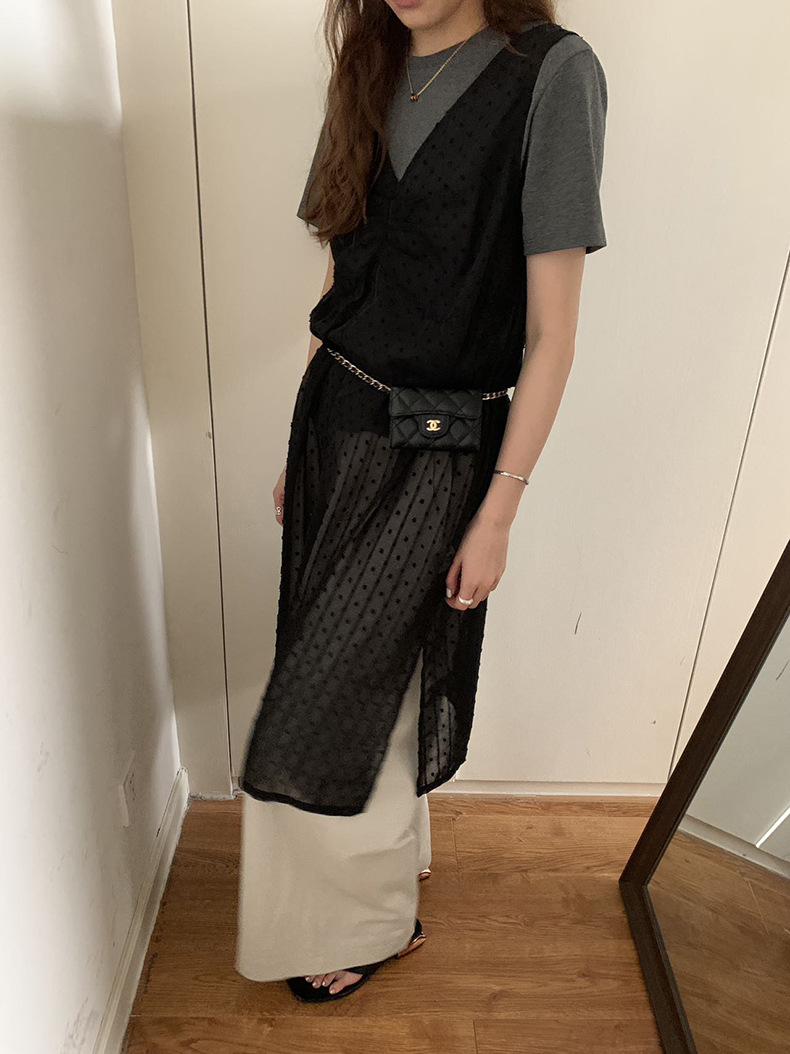 2025夏季新款叠穿罩裙V领微透波点背心连衣裙W0603