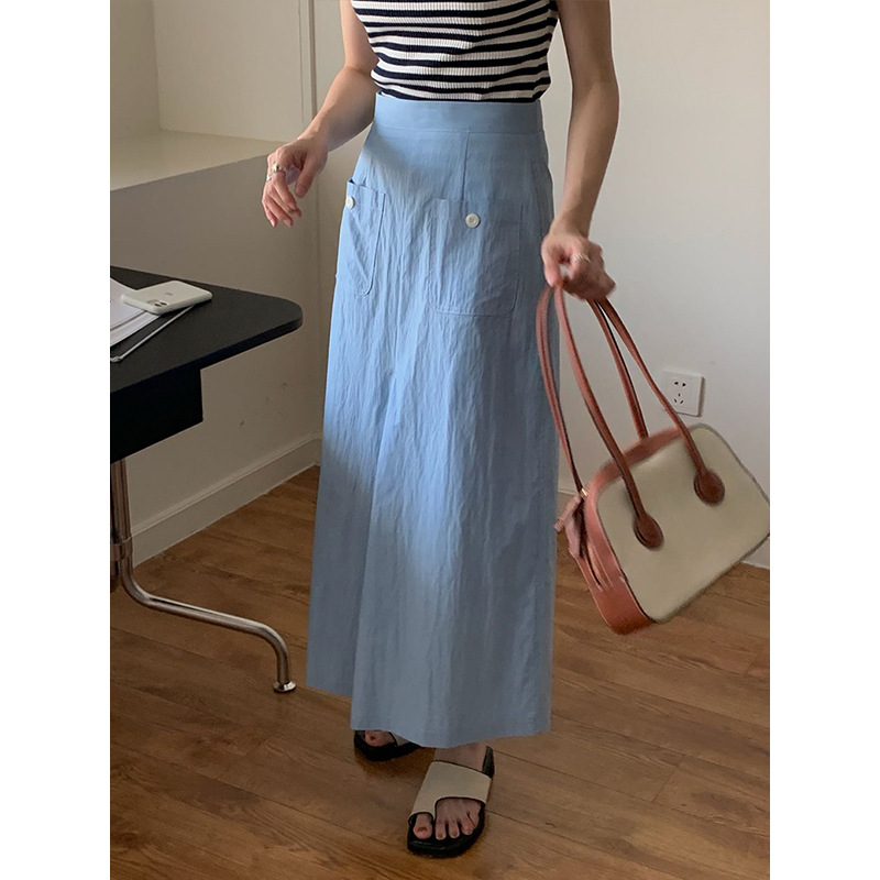 2025夏季新款韩版高腰半身裙女气质通勤A字裙b2299 投诉