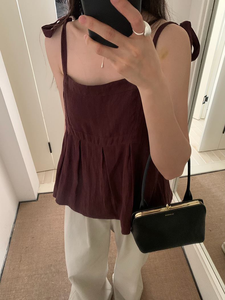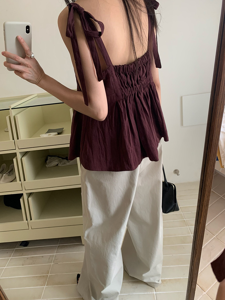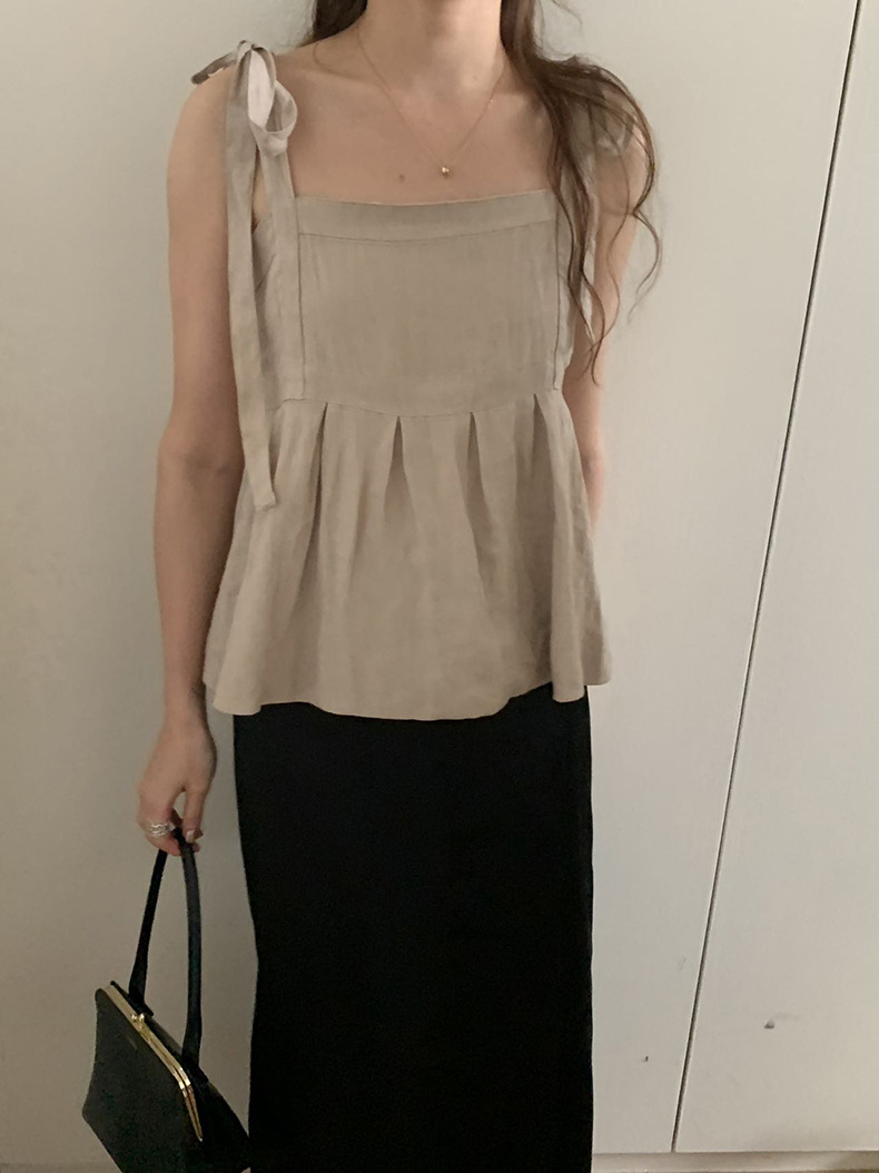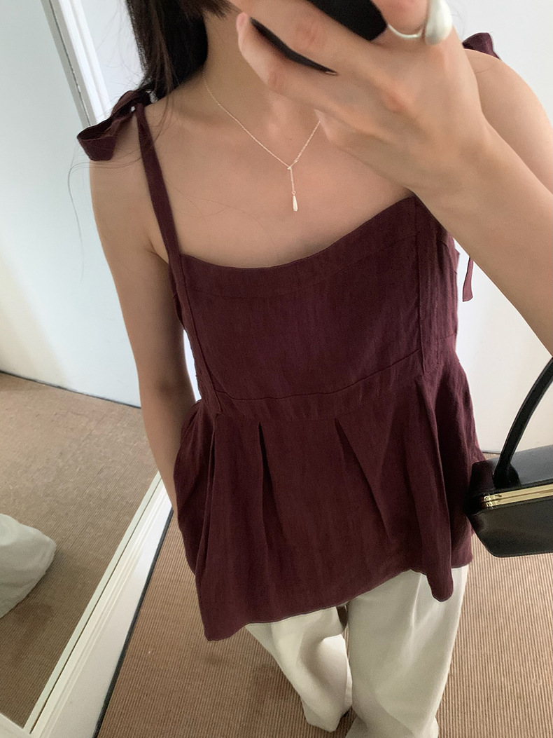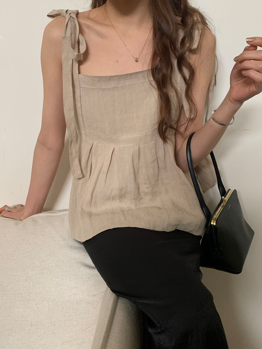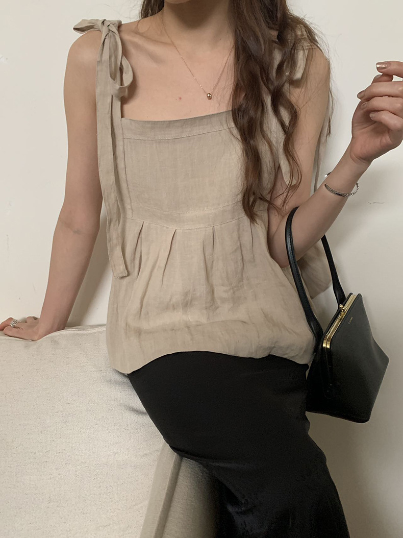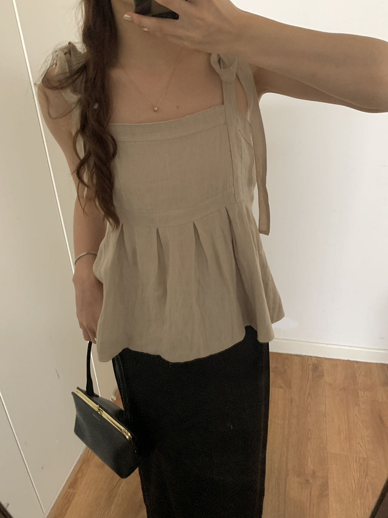 2025夏季新款棉麻绑带背心小衫韩版减龄吊带上衣4261