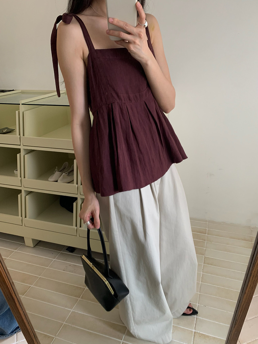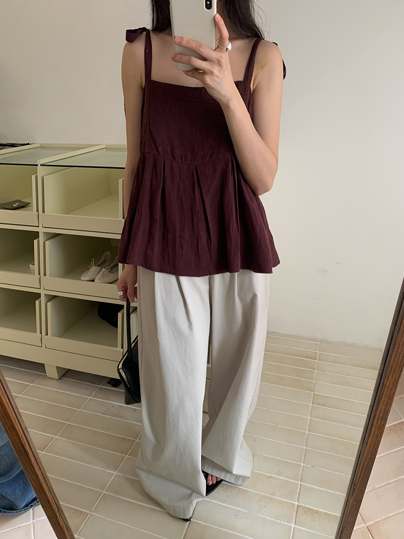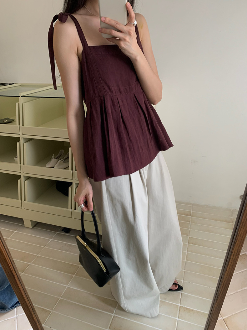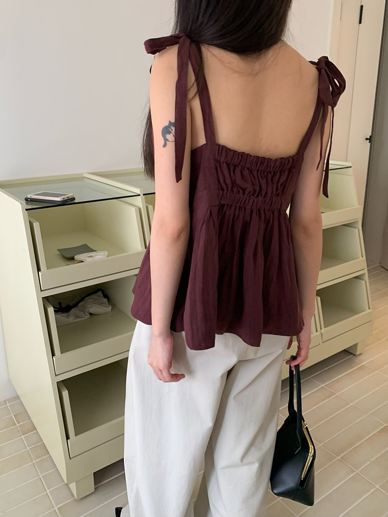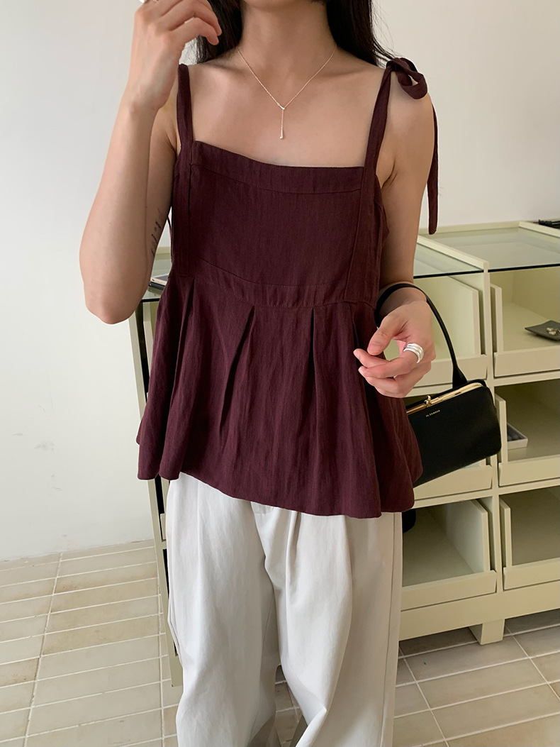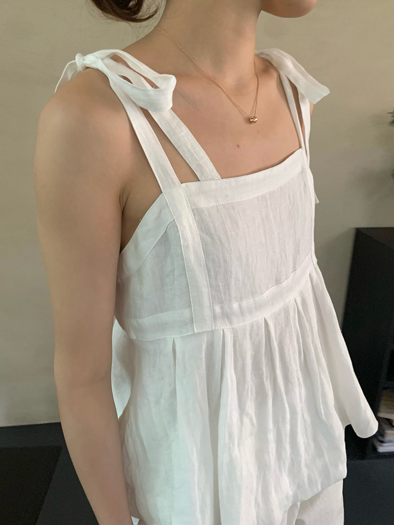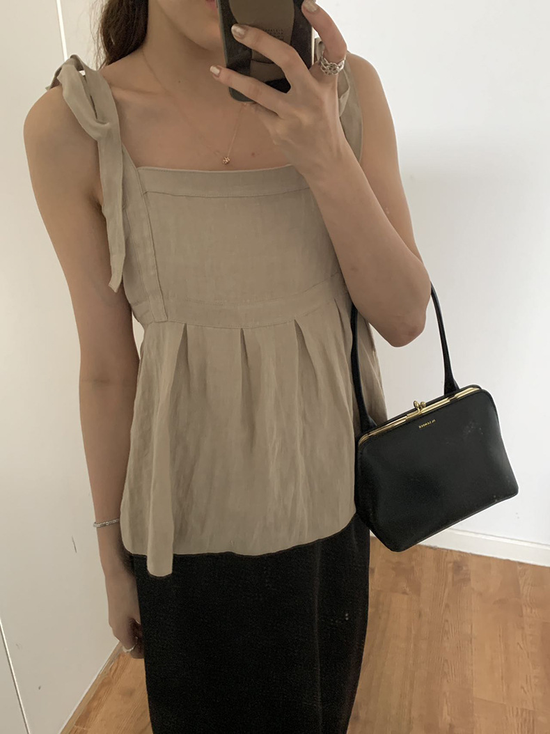 2025夏季新款棉麻绑带背心小衫韩版减龄吊带上衣4261