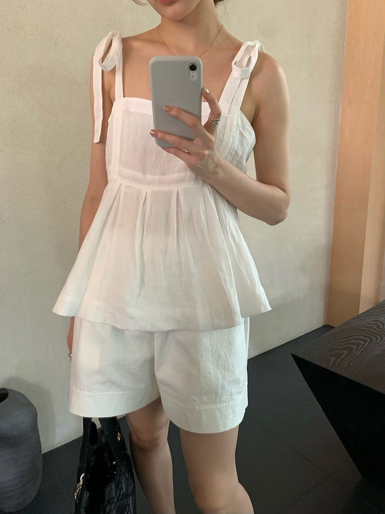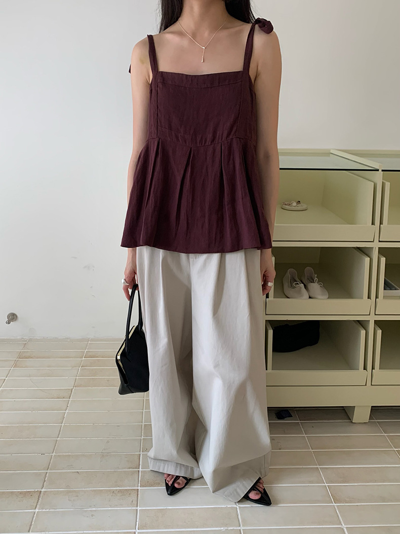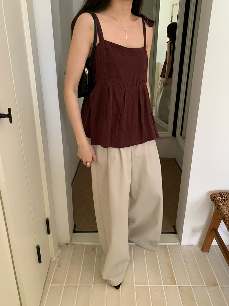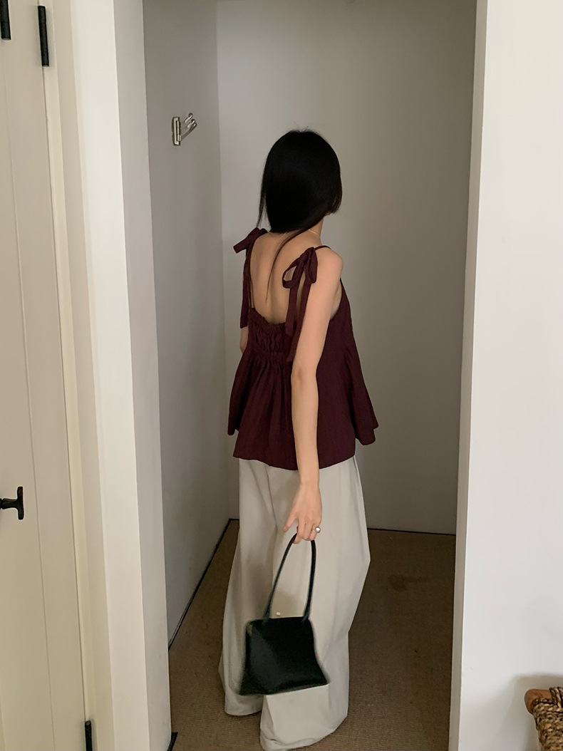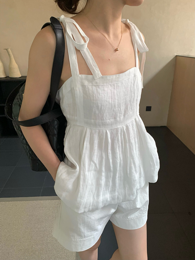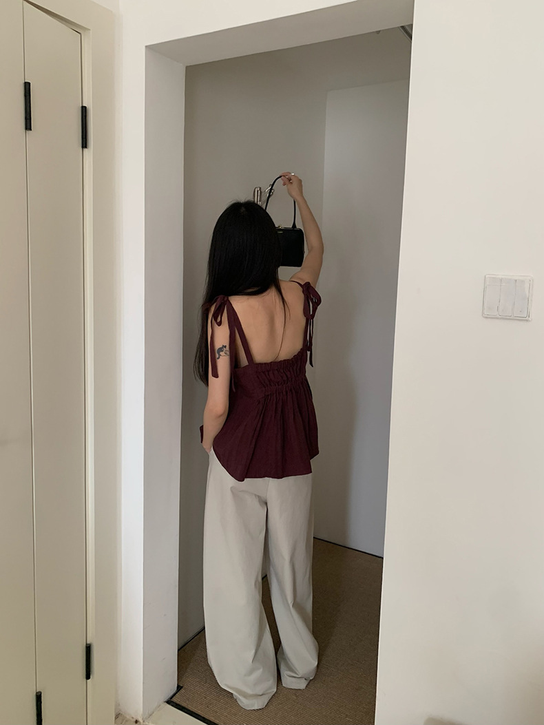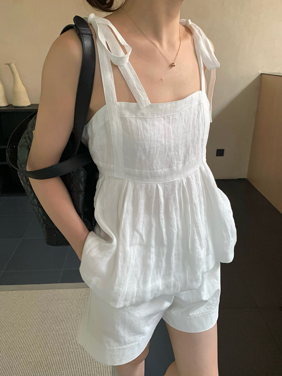 2025夏季新款棉麻绑带背心小衫韩版减龄吊带上衣4261