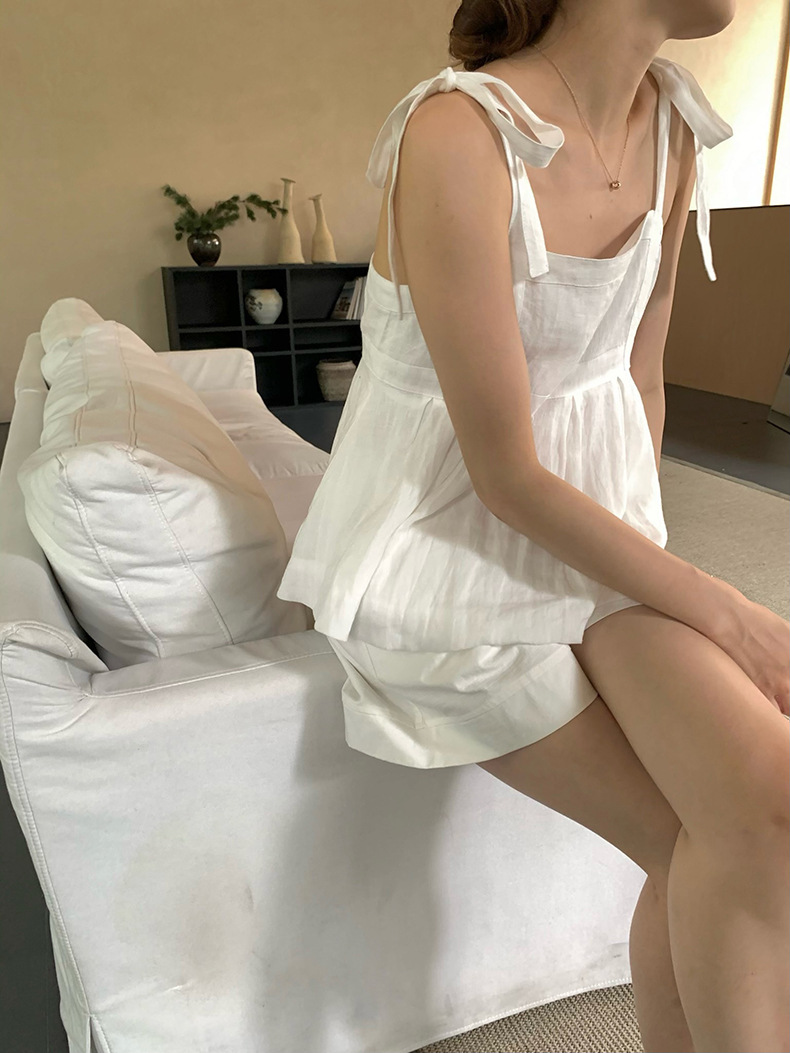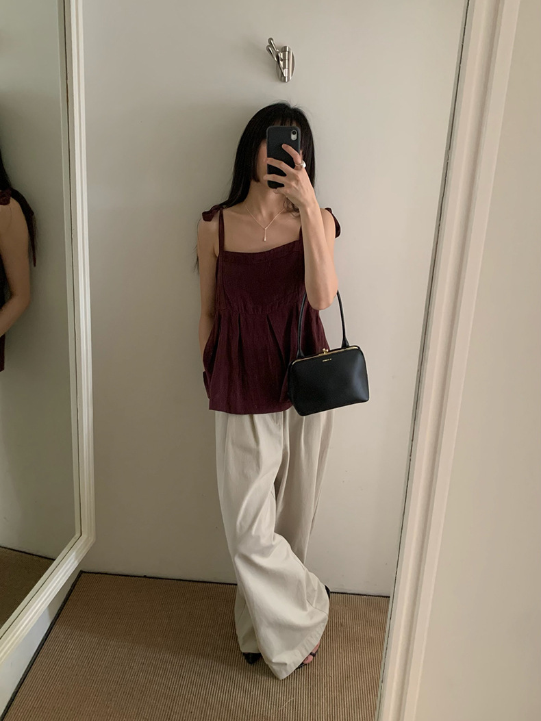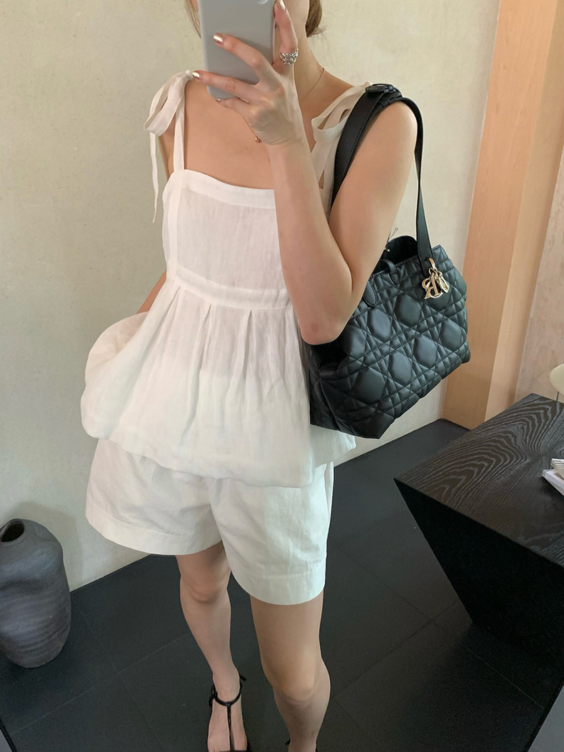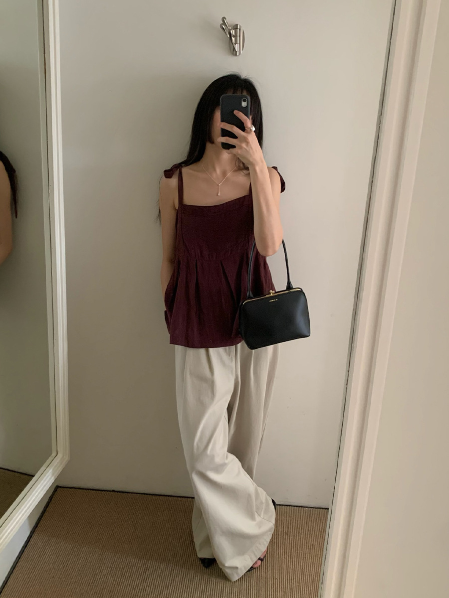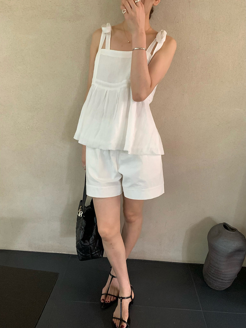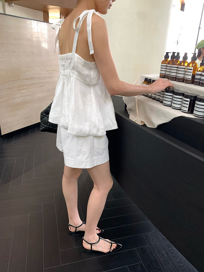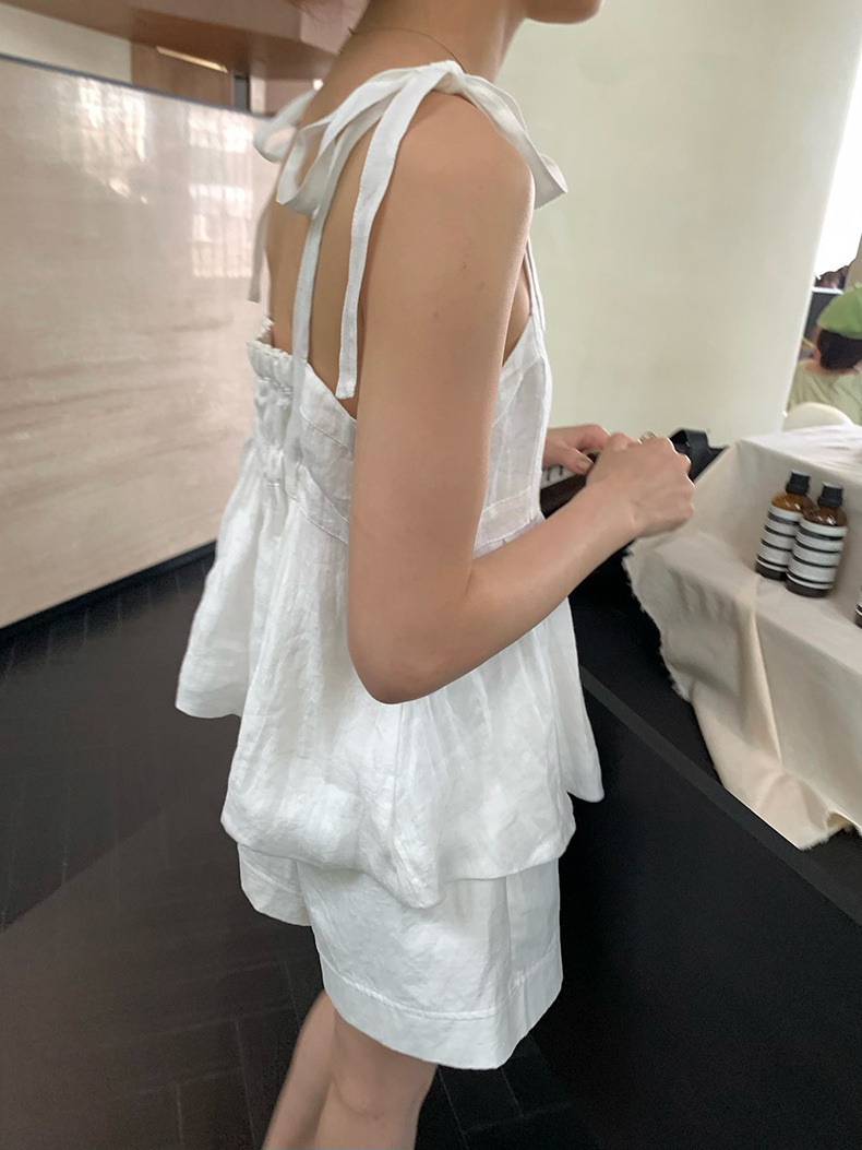 2025夏季新款棉麻绑带背心小衫韩版减龄吊带上衣4261