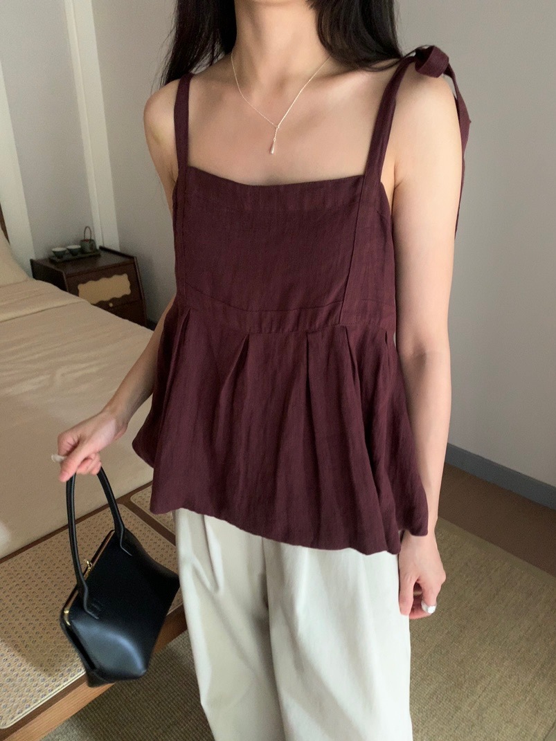 2025夏季新款棉麻绑带背心小衫韩版减龄吊带上衣4261 投诉